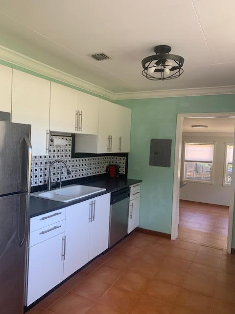 Comfortable and cozy post-war 2/1 with a huge (14x31) family room across the back. Updated kitchen and bath and all windows/doors are hurricane rated. Only a few blocks walk to elementary school in this shady and welcoming neighborhood. There is a large metal 2-car carport in the rear yard that accommodates larger vehicles. Irrigation is on a well (not city water).
