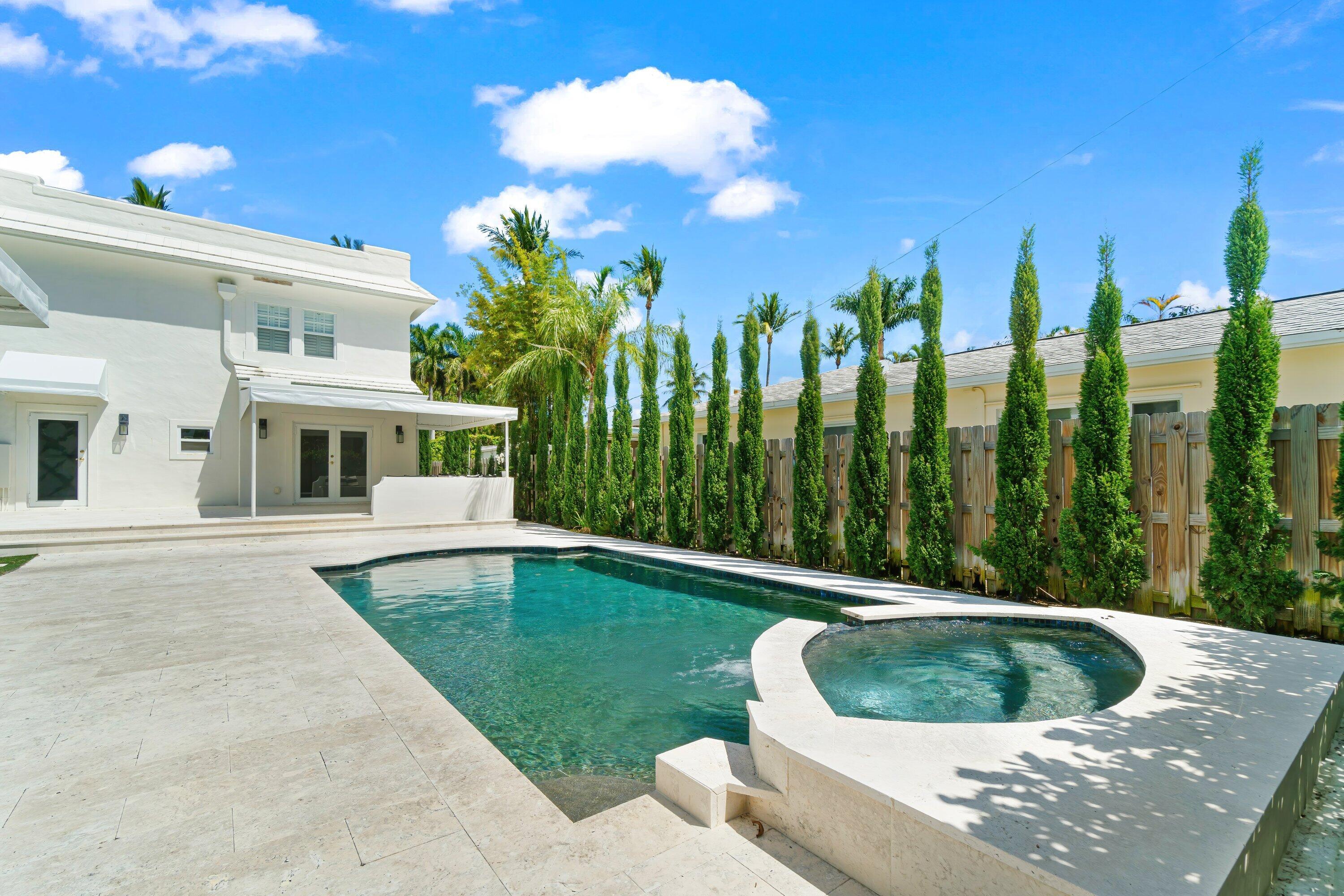 Tastefully renovated five-bedroom property available for annual lease, unfurnished. This gated residence features a beautiful outdoor space with a pool and jacuzzi/fountain. The two-story main house includes three bedrooms and three baths, a bright living room, formal dining room, and an upgraded kitchen. The guest house offers additional flexible living space, including a one-bedroom/bath guest suite with living area and kitchen, plus a separate one-bedroom cabana and bath.