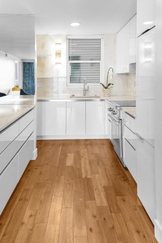 Renovated condo with direct east facing views of the Intracoastal and Palm Beach! Open and airy with a tropical feel, the space is a calm retreat that also exudes classic charm for entertaining. Completely updated kitchen and baths, new flooring, open living area, 2 spacious bedrooms with en suite baths, walk in closets, exclusive parking, pristine swimming pool, open air hallways and stairs as well as lobby and elevator.