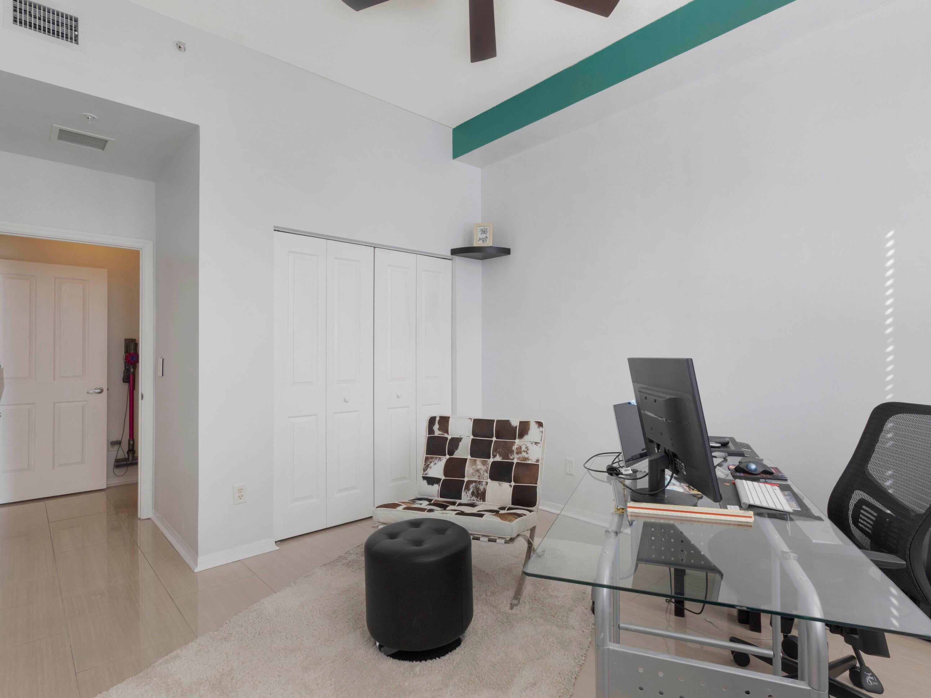 ''Enjoy the high ceiling in this stunning split floor plan, featuring an open-concept layout that's perfect for entertaining or relaxing. The gourmet kitchen boasts European cabinetry and granite countertops, seamlessly connecting to the dining and living areas. The primary suite is a serene retreat with a custom walk-in closet and walking shower. With its convenient location just steps from the elevator and reserved parking just a few doors away,for easy grocery shopping and other essentials are a breeze.The Prado building is one of the finest in town, with no special assessments for over 10 years - aside from a one-time 10% increase a few years ago. Having undergone a complete remodel in recent years, The Prado remains financially strong. Residents can indulge in resort-style amenities including a tropical heated pool and hot tub, a fully equipped fitness center with updated equipment, a renovated club room, business center, bike storage, and 24-hour attended lobby with complimentary Wi-Fi. Garage parking adds ease to city living in this prime Downtown West Palm Beach location, just minutes from Palm Beach, the airport, and world-class shopping, dining, and cultural attractions."