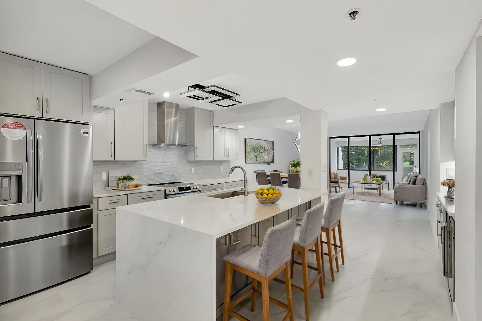 WOW!!!BEAUTIFULLY REMODELED CONDO IN GATED COMMUNITY IN CENTRAL BOCA. Everything is brand new. Split floor plan with spacious bedrooms. Spacious closets and in unit large laundry room. Gorgeous open kitchen with top of the line finishes. Large lanai with views of the garden and golf course beyond.Water/cable/internet/security included in rent. Community clubhouse with heated pool, jacuzzi, sauna and gym.