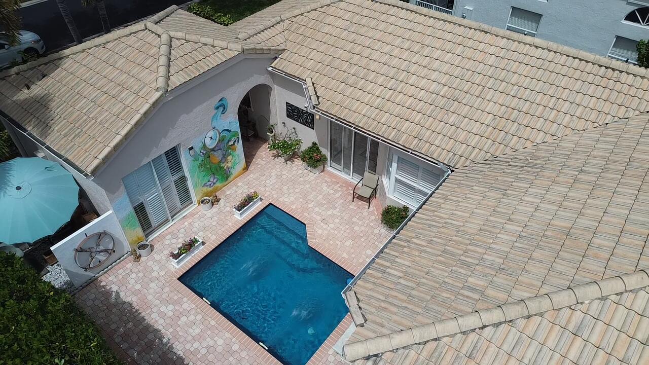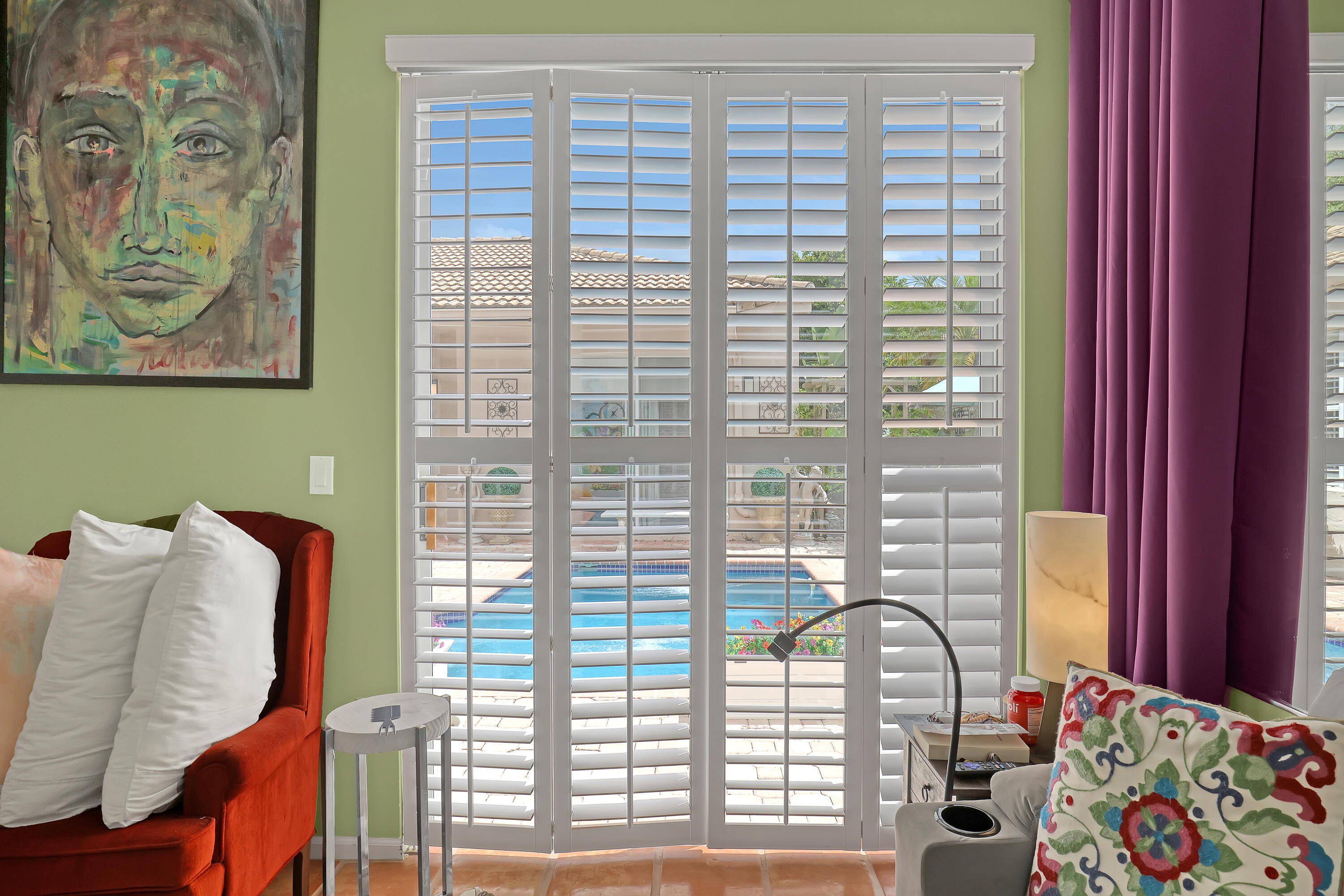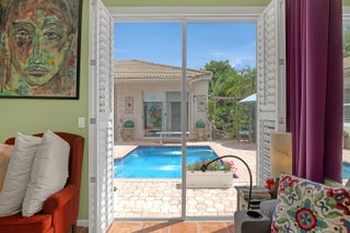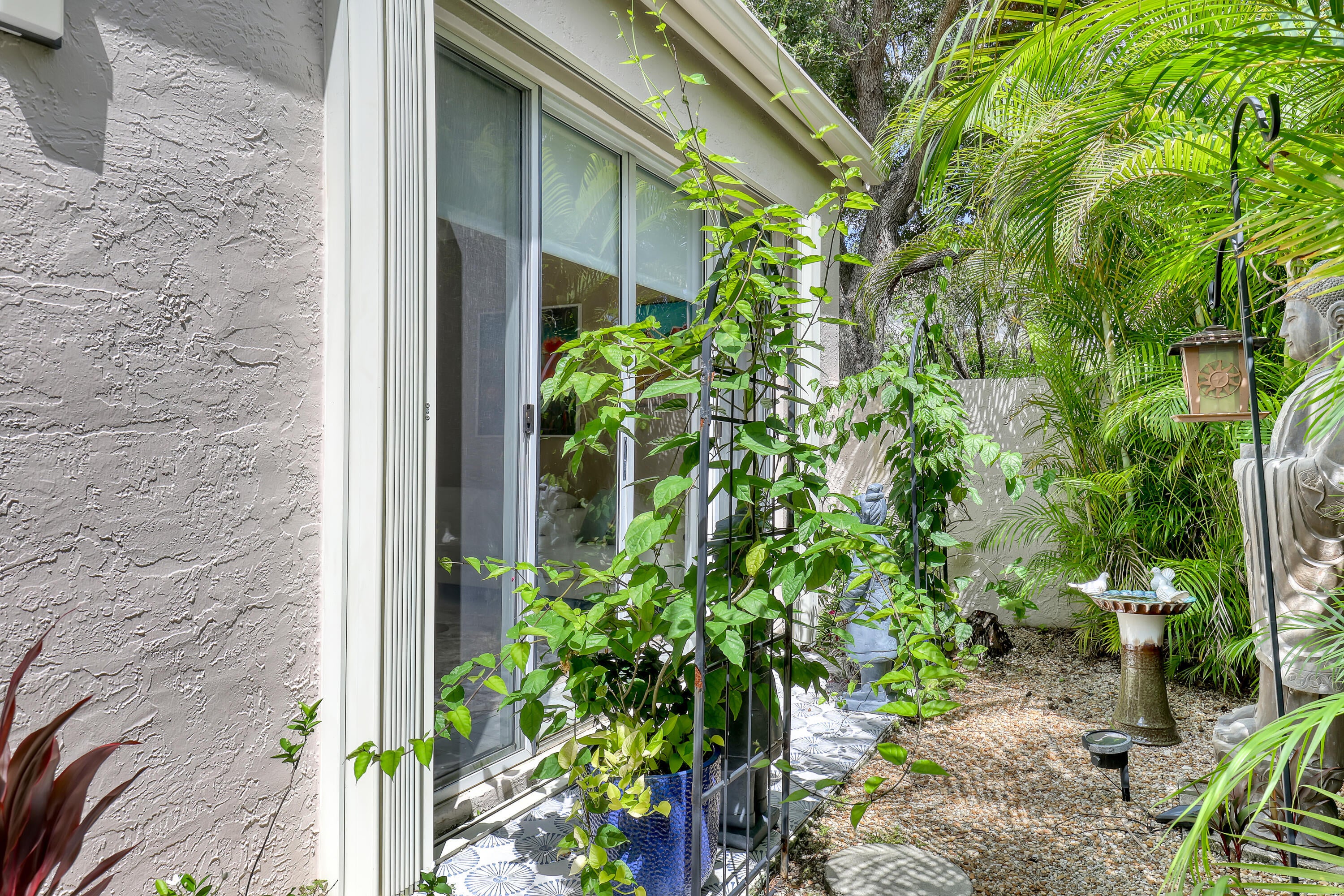 Step into a world of style, comfort and privacy in this beautifully designed 2-bedroom 2- bathroom residence plus 1- bedroom 1- bathroom guest cottage. The home embraces a sun-drenched courtyard pool, bringing the outdoors in, so everyday feels like a resort getaway. The Primary suite is a true retreat, with pool views a generous walk-in closet, a spa inspired bath complete with Roman tub, dual vanities and a separate shower. The second bedroom currently functions as a den with a desk and built in-shelves. Entertain with ease in the formal dining room overlooking a tranquil Zen garden. The guest cottage adds another layer of versatility, complete with a kitchenette, private bedroom, bath and direct pool access ideal for visitors, extended family, or creative studio.Centrally located in a gated community, this is the rare property that blends luxury, function, and lifestyle in one inviting package.