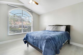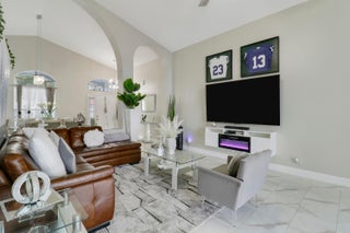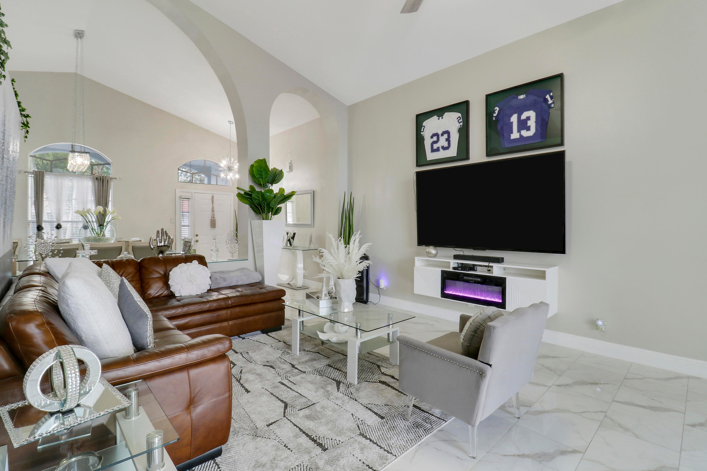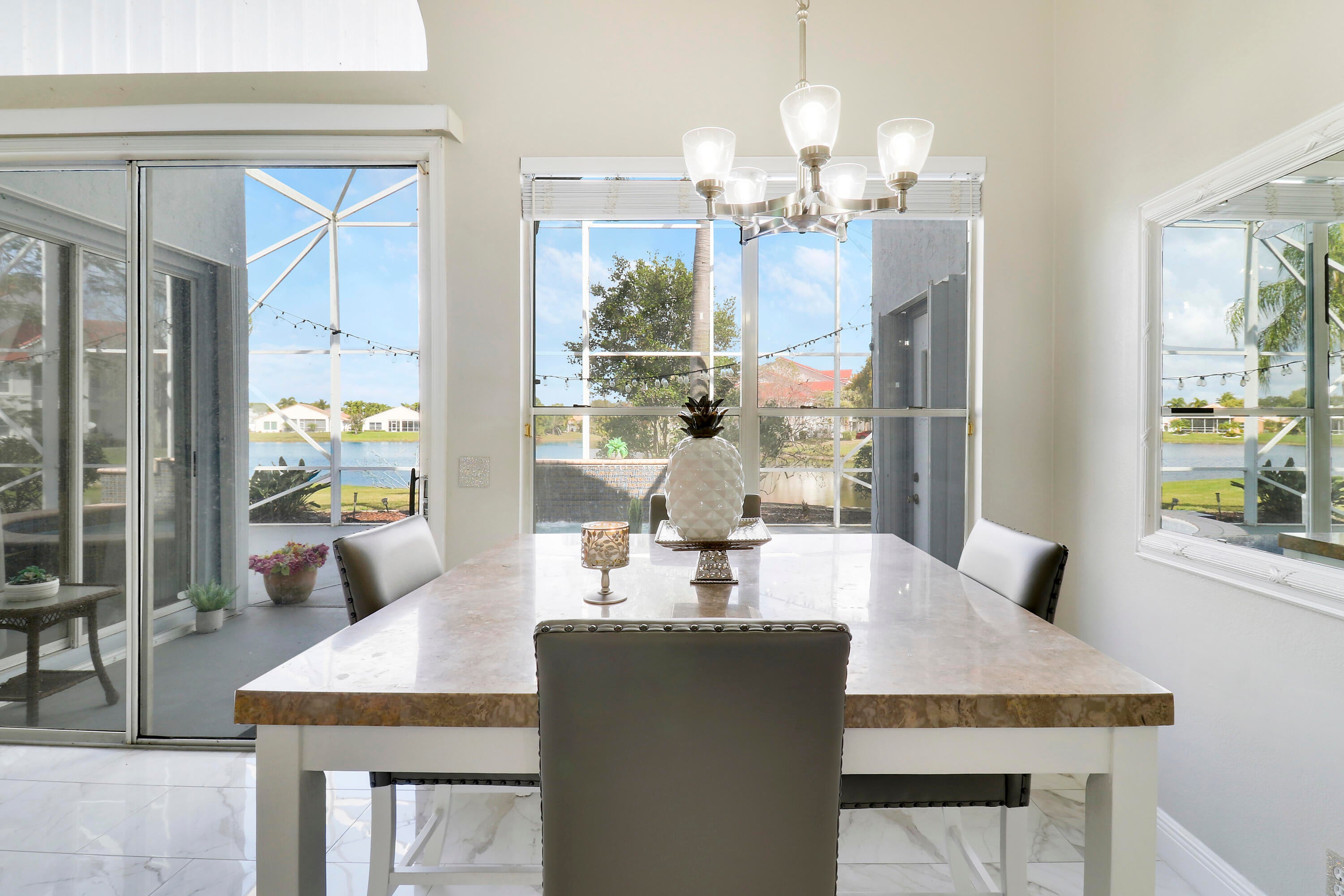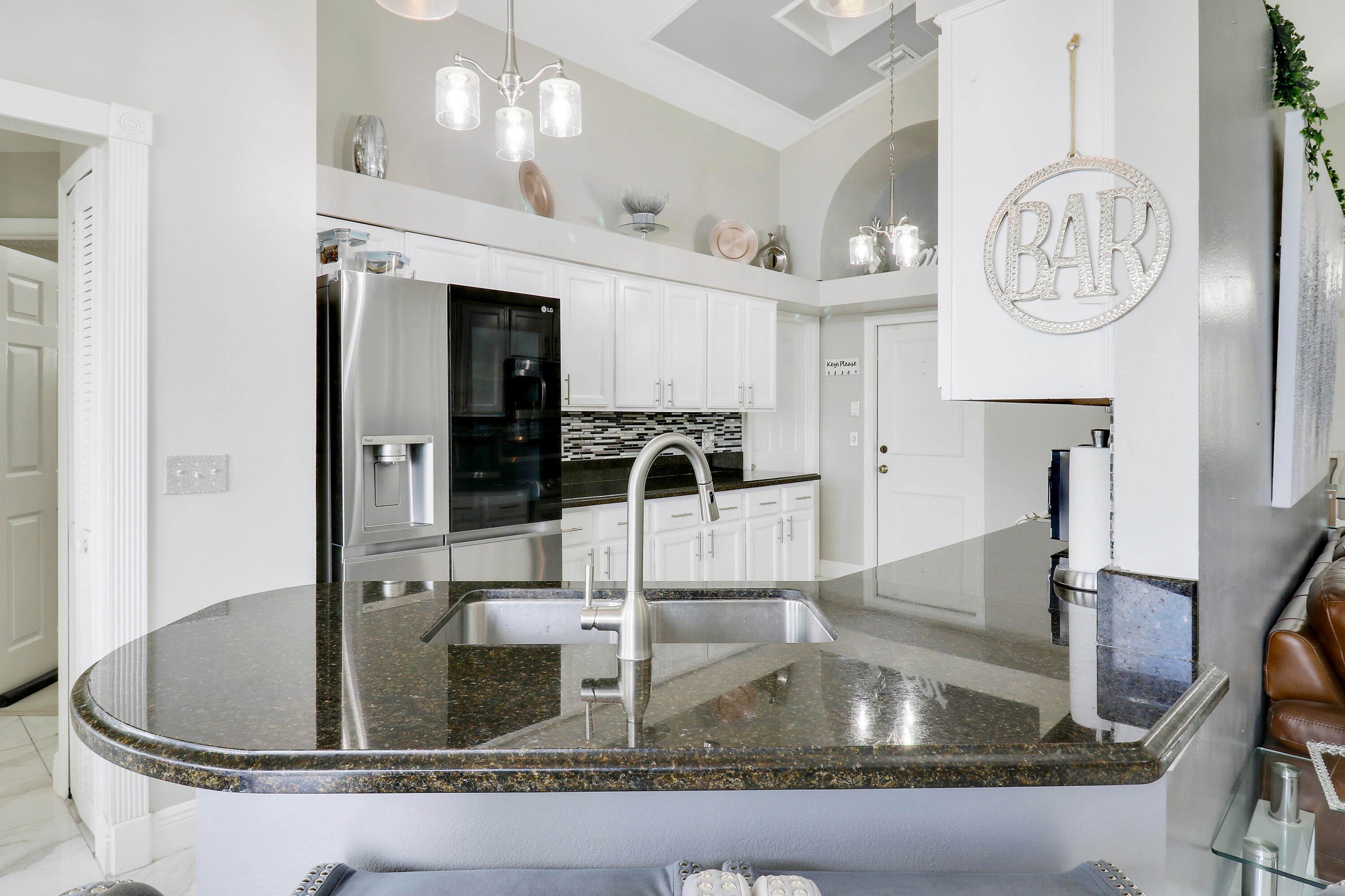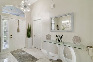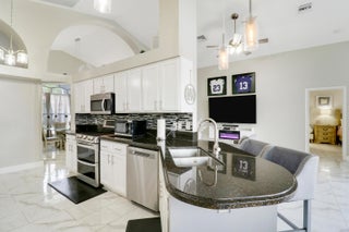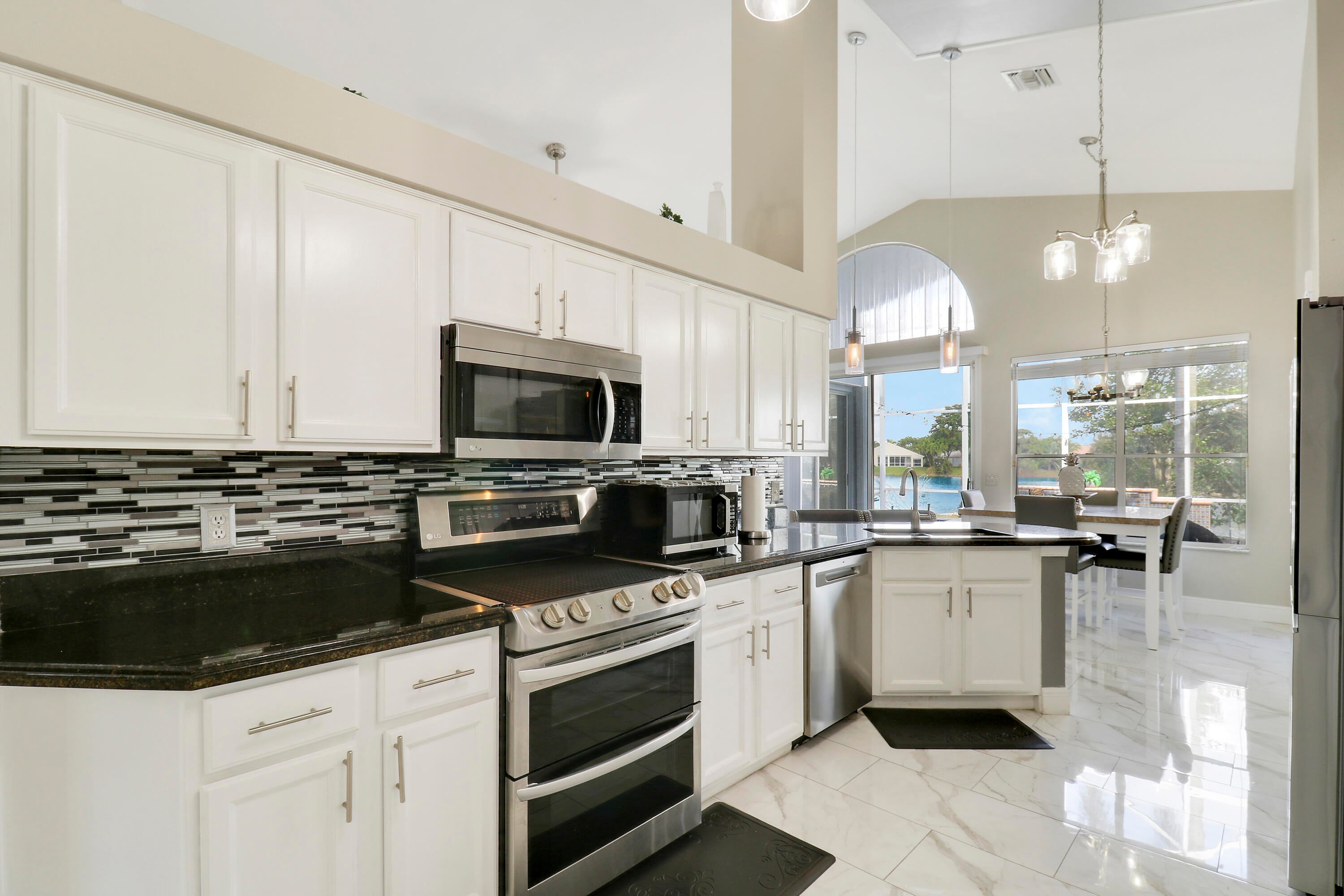 Spectacular lakefront 4-bedroom home in sought after River Bridge. Upgrades include: 2024 ROOF, KITCHEN BACKSPLASH, APPLIANCES, PORCELAIN MARBLE STYLE FLOORS in living areas and laminate wood floors in all bedrooms. The tastefully remodeled second bathroom doubles as a cabana bath. Additional features include high ceilings a spacious SCREENED IN PATIO w/A LARGE INGROUND SPLASH POOL w/WATERFALL OVERLOOKING THE LAKE. Accordion shutters throughout and so much more.