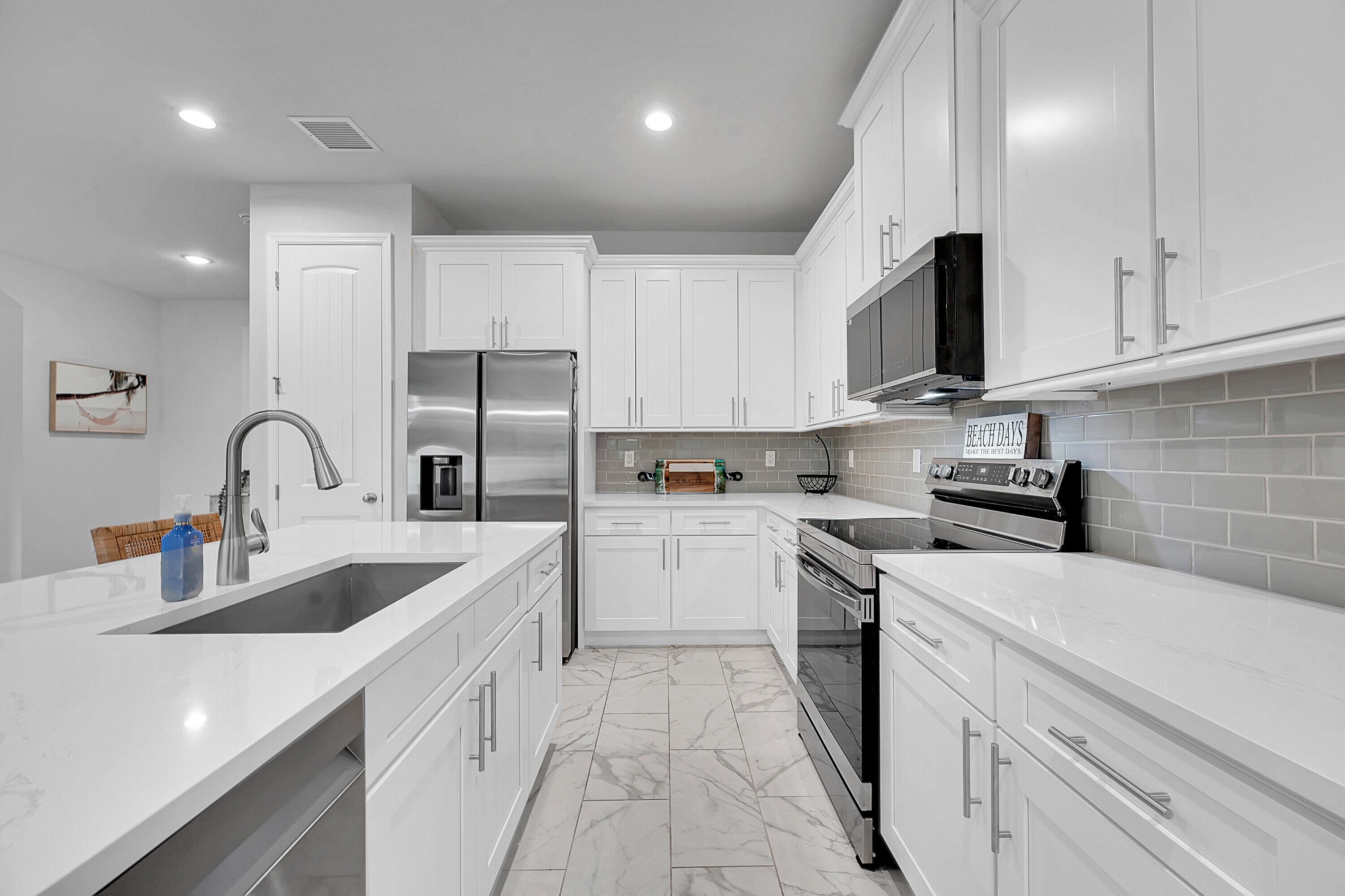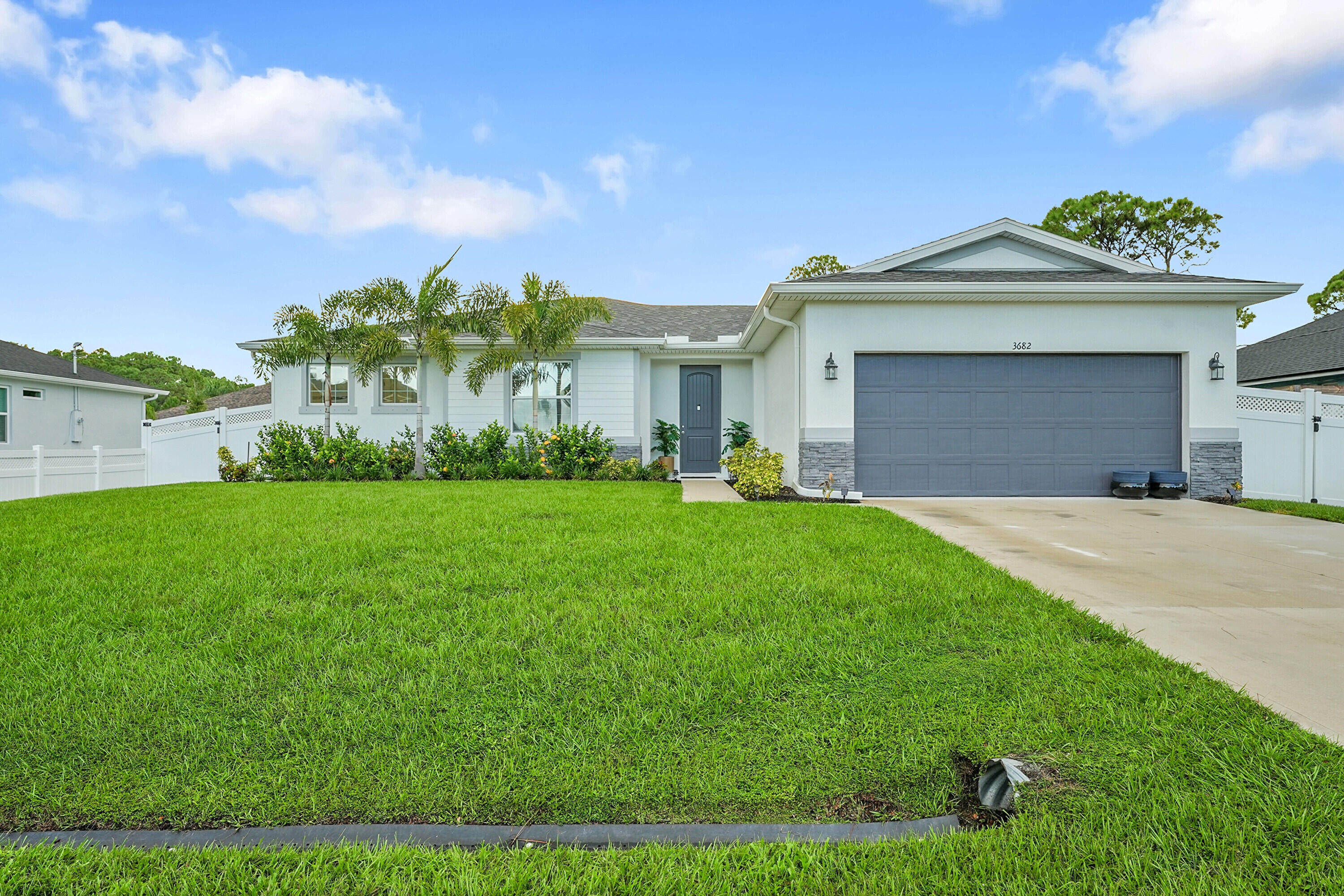 Welcome to your dream home! Built in 2024, this immaculate single-family home combines modern coastal elegance with comfort. Conveniently located near I-95 and the Turnpike, you'll have easy access to everything the Treasure Coast has to offer. 4 spacious bedrooms | 2 full bathrooms, Split bedroom floor plan with 9-foot ceilings & open-concept design. Porcelain tile floors throughout. Gourmet kitchen with 42'' white shaker cabinets (soft-close). Quartz counters throughout! Spa-like primary suite with a luxurious walk-in shower featuring dual shower heads, His and her walk-in closets! Large fenced-in backyard, perfect for pets and entertaining 2-car garage with upgraded polyaspartic flooring (10-year warranty). No HOA - enjoy freedom and flexibility. Minutes from I-95 and the Turnpike, withnearby shopping, dining, schools, and beaches. Don't miss this rare opportunity to own a move-in-ready, upgraded 2024 home in Port St. Lucie.