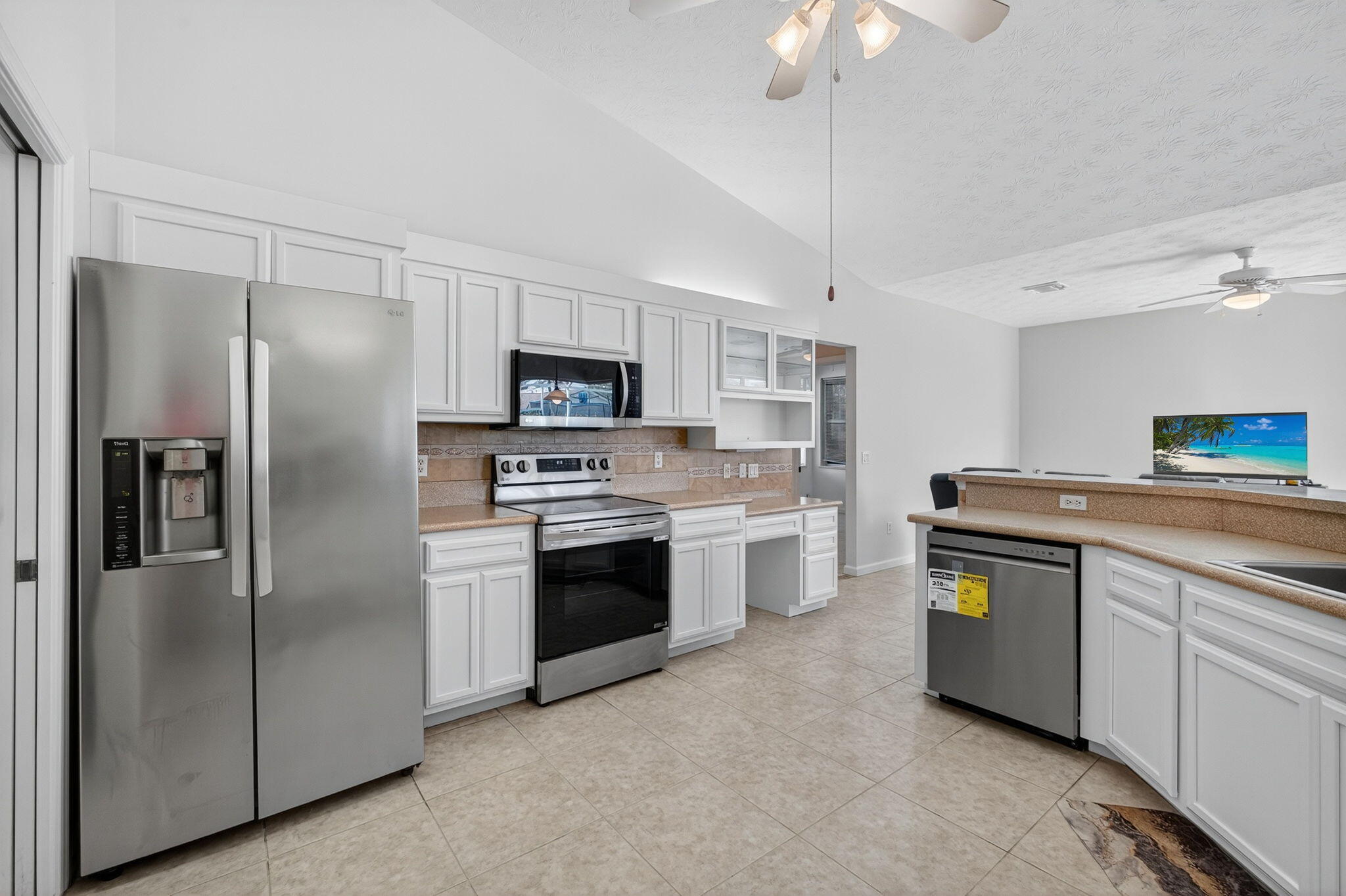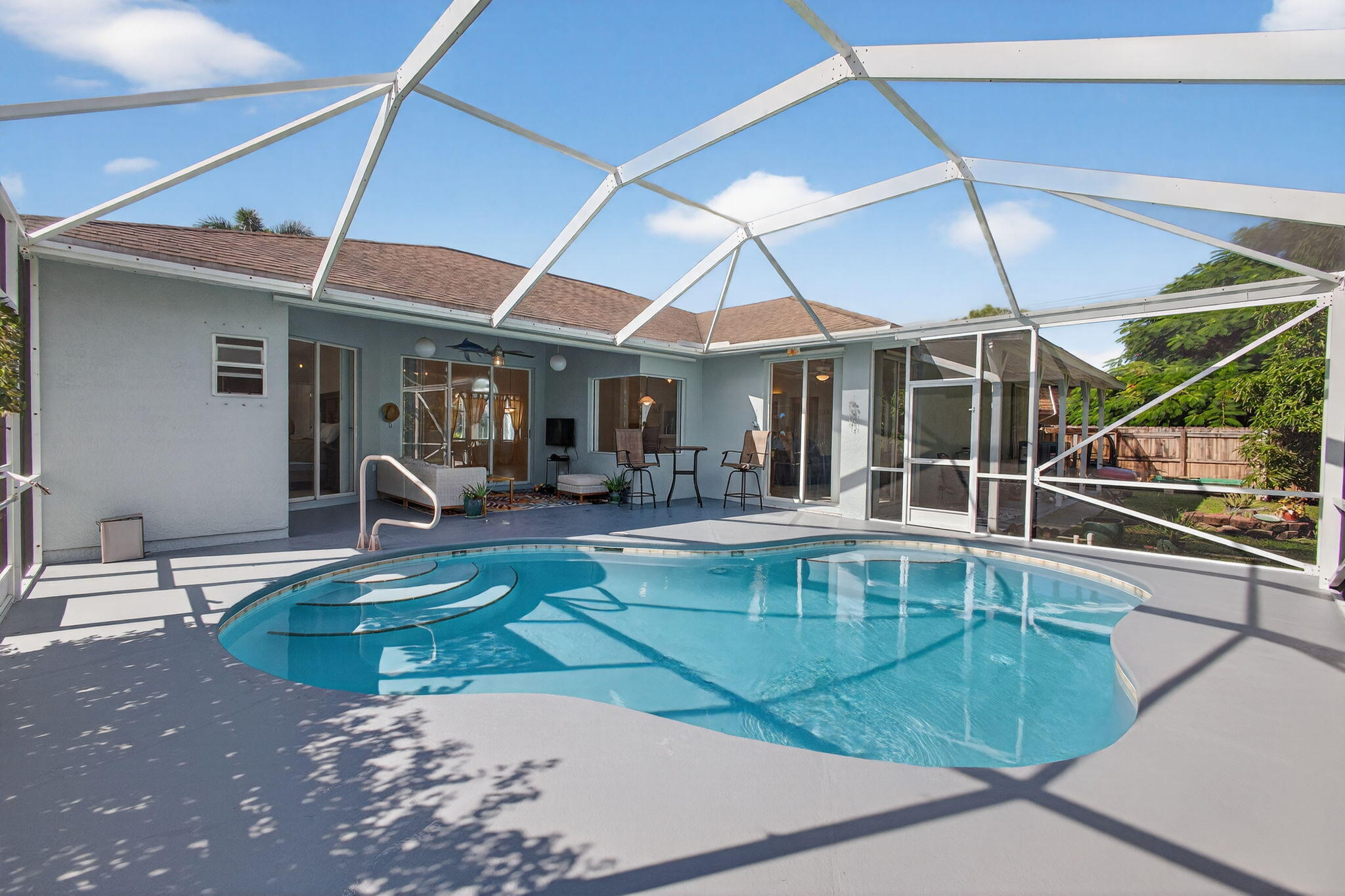 Spacious 3 bed, 3 bath, 2-car garage, pool home. Located in the highly desired neighborhood of Sandpiper Bay. Featuring a fully fenced fenced in backyard, freshly painted interior and exterior, tile flooring throughout, and an open, light-filled floor plan perfect for entertaining. The brand-new 2024 A/C ensures year-round comfort. With no HOA, you'll have the freedom to truly make this home your own. Conveniently located .3 miles from the Port Saint Lucie port district. Future home to 3 restaurants on the river next to Botanical Gardens.
