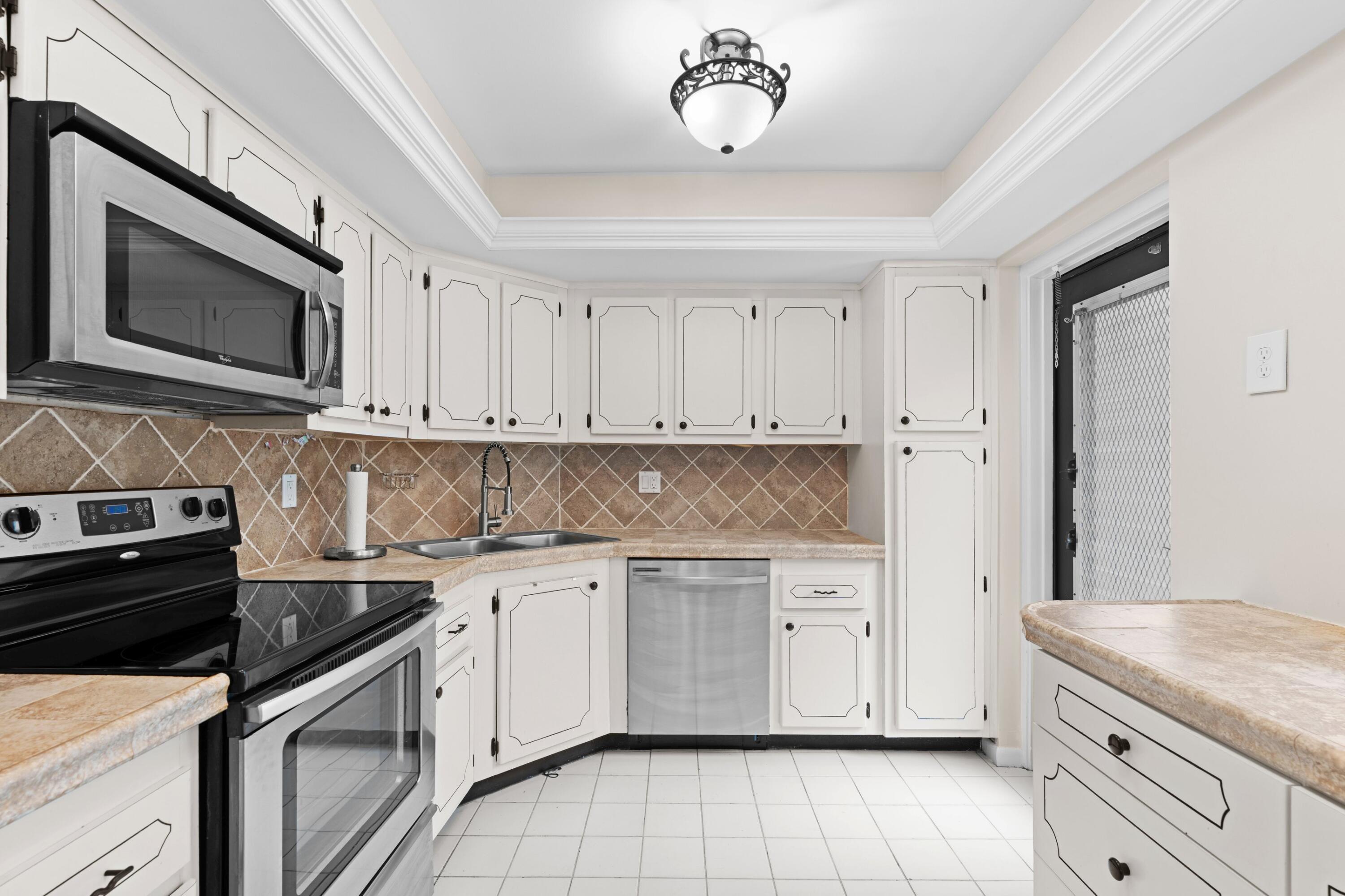 This 2/2 condo on the first floor of a six unit two story building at Lands of the President. The unit features two entrance doors and one directly in the kitchen for easy access. The washer and dryer are directly outside the front door and paid by the association. Cable and wifi are included through Comcast. This community is gates and secure and patrolled with entrances from both north and south. The heated pool is located across the street. It is within walking distance to the Tanger Palm Beach Outlet Mall which features Whole Foods, restaurants, shops and a medical building in the process of being built. It is also close to the airport, Target, Kravis, The Square, Palm Beach, beaches.