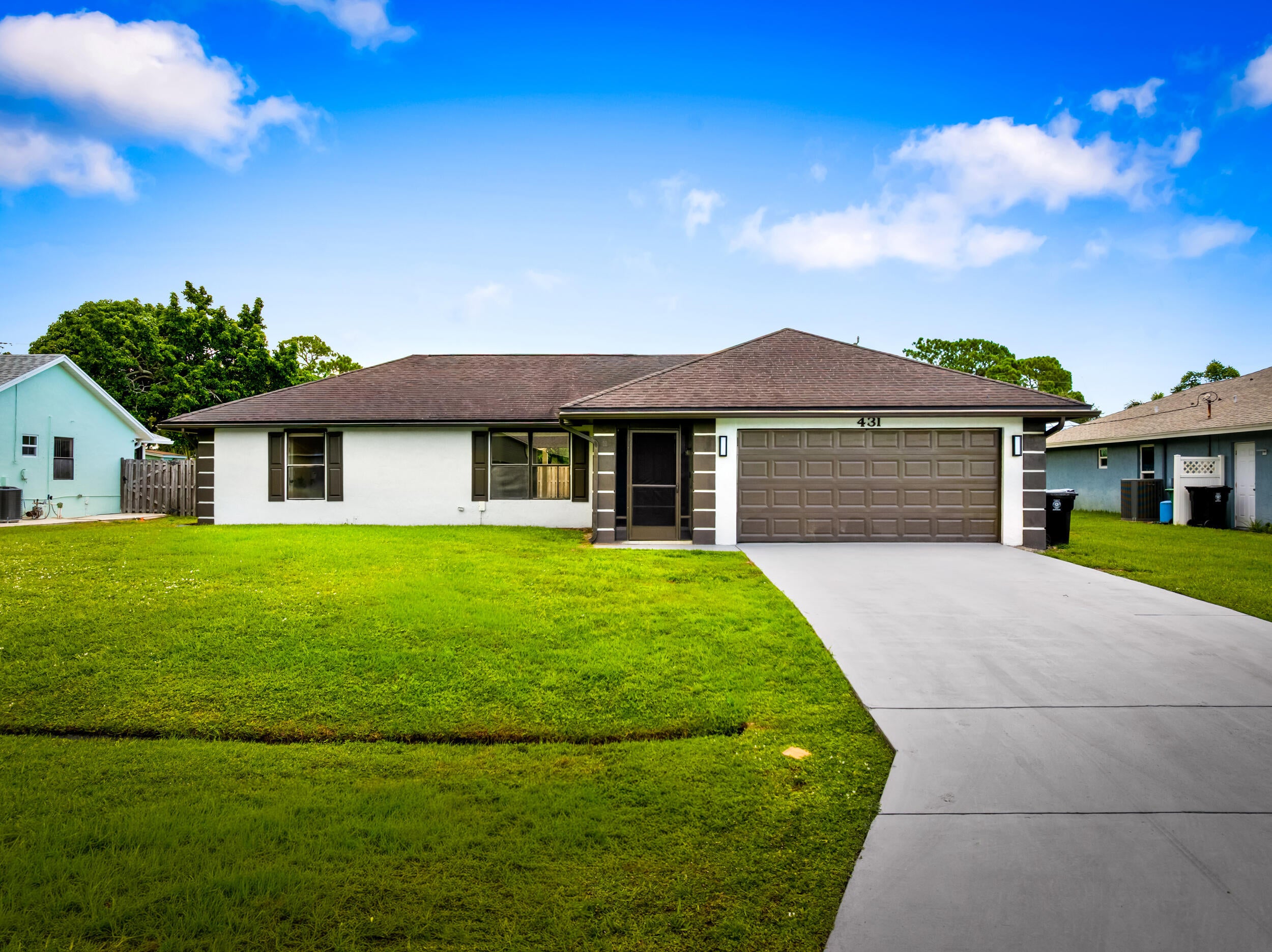 NEW SEAMLESS METAL ROOF IN PERMITTING! TO BE COMPLETED BEFORE CLOSING! Stunningly remodeled 3BR/2BA 2 car garage pool home in Port St. Lucie! This move-in ready property offers fresh interior & exterior paint, brand new tile flooring throughout, and a spacious open-concept kitchen with quartz counters, sleek cabinetry, and new stainless-steel appliances. Both bathrooms have been stylishly remodeled with modern finishes and quartz countertops. Major upgrades include a new A/C with handler & ductwork, new hot water heater, and epoxied garage floor. The backyard is a true retreat with a sparkling, clean pool, freshly painted deck & patio, and a brand-new outdoor kitchen- perfect for entertaining year-round! Schedule your showing today!