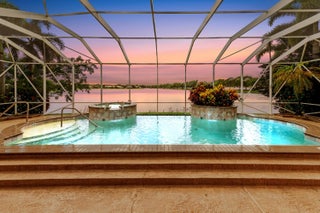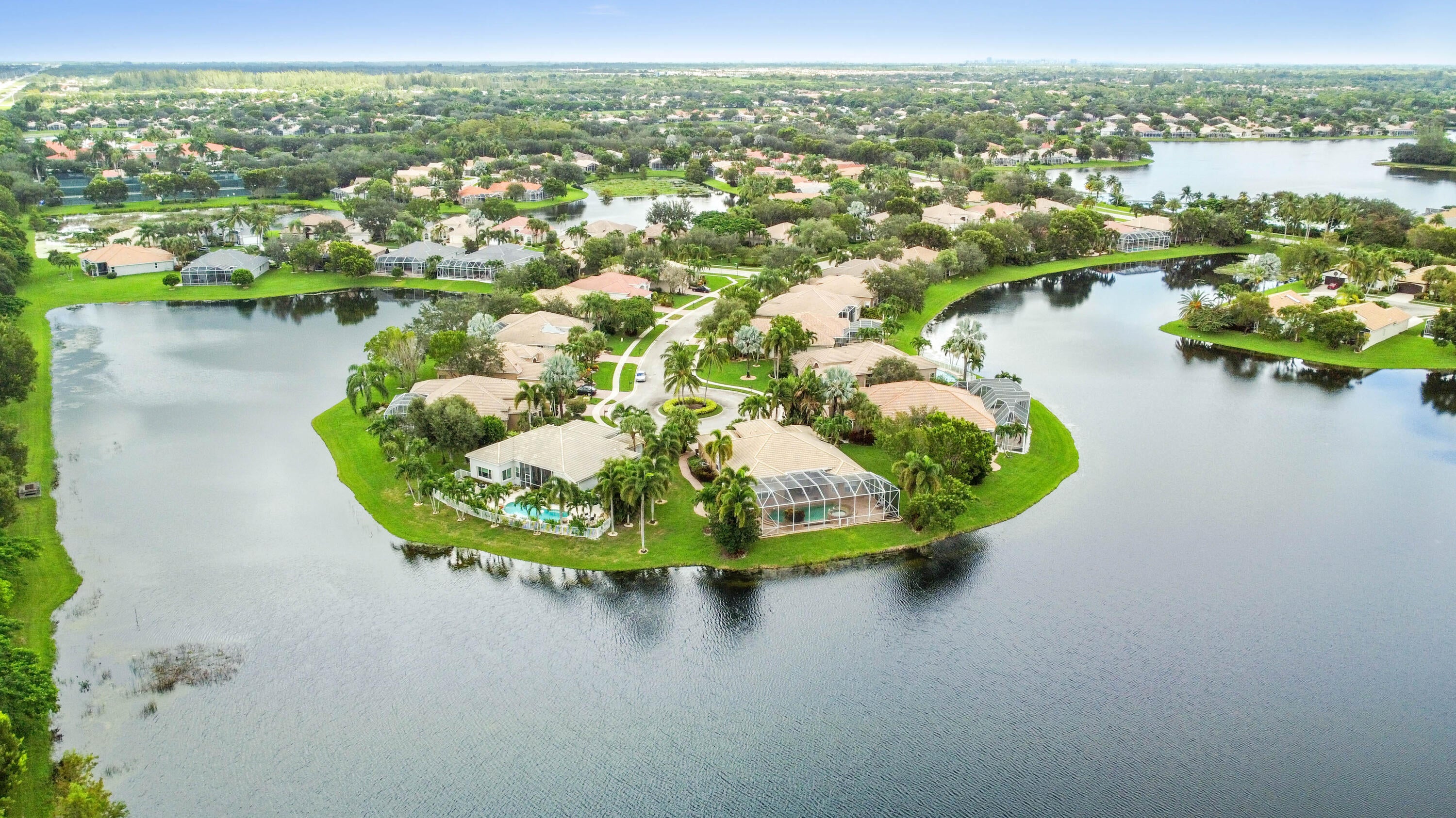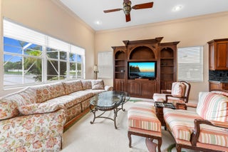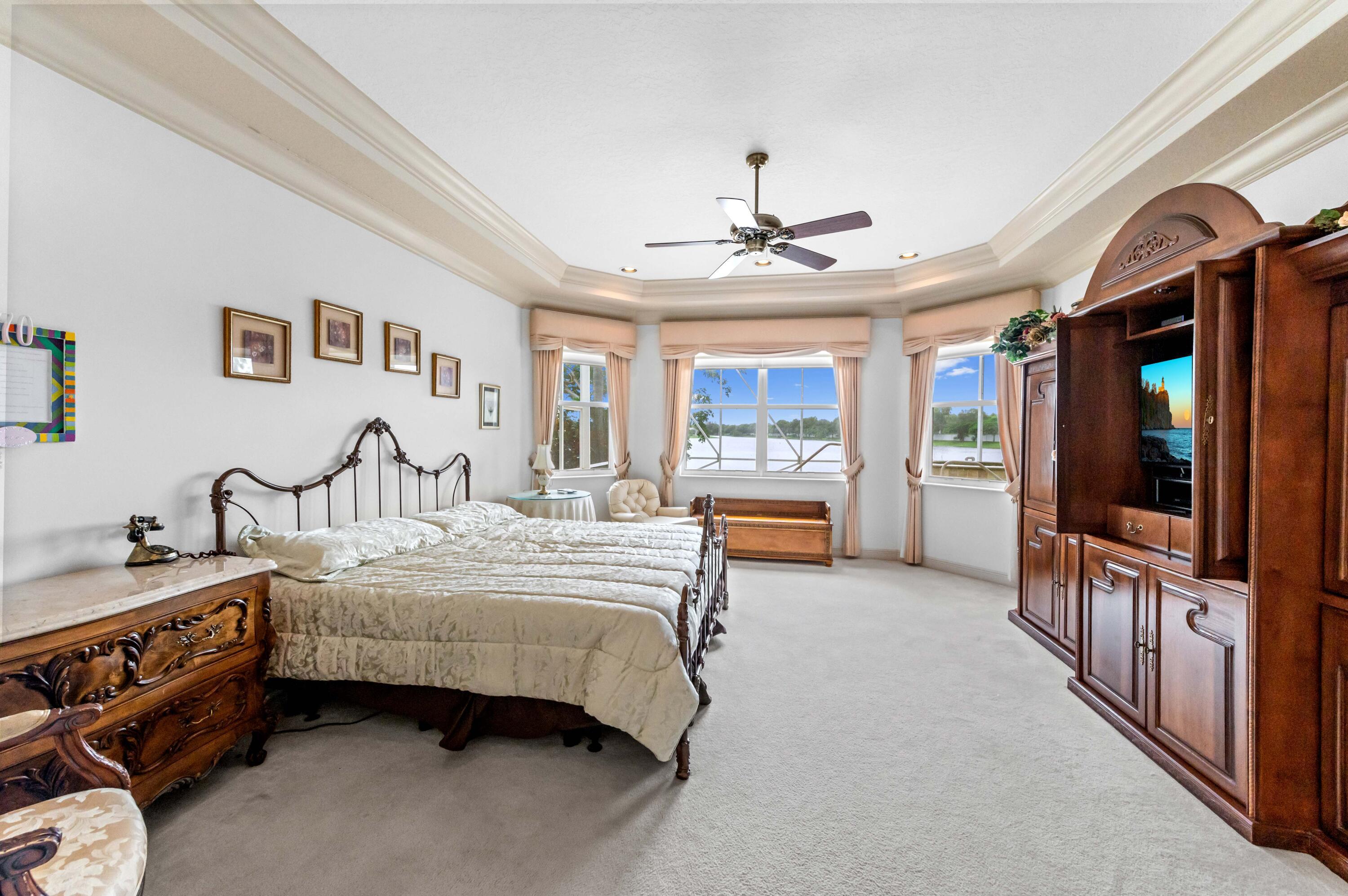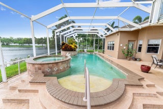 Discover your private oasis in the exclusive, resort-style community of Bellaggio. This stunning one-story lakefront home is perfectly situated on the best lot in the community, offering complete privacy on a quiet cul-de-sac and boasting panoramic, unbelievable lake views from almost every room.Offering 2,831 sq. ft. of living space, this residence features 4 bedrooms and 2.5 bathrooms, providing plenty of room for both relaxation and entertaining. Step through impressive double entry doors into a welcoming foyer that sets the tone for the home's elegant design. The chef-inspired kitchen is both stylish and functional, boasting a cooktop, wall oven, microwave, refrigerator, granite countertops, a spacious island with bar seating, and abundant cabinetry.The open-concept living and dining areas flow seamlessly, enhanced by sliding glass doors leading to the sparkling pool and expansive patio, the perfect setting to relax or entertain while taking in the serene views and gorgeous sunsets. The master suite is a private retreat with a luxurious bathroom featuring dual vanities, a soaking tub, and a crucial detail for comfort and convenience: a separate water closet. Enjoy the world-class amenities within Bellaggio, a vibrant adult community known for its social activities. The grand clubhouse offers a ballroom, media room, card and billiard rooms, fitness center, indoor and outdoor heated pools and spas, the Bistro Bellaggio, and courts for tennis, pickleball, bocce, and shuffleboard. This exceptional home, located in the best spot in Bellaggio, offers luxury, privacy, and an unparalleled resort lifestyle. Don't miss the opportunity to live in this exclusive haven!