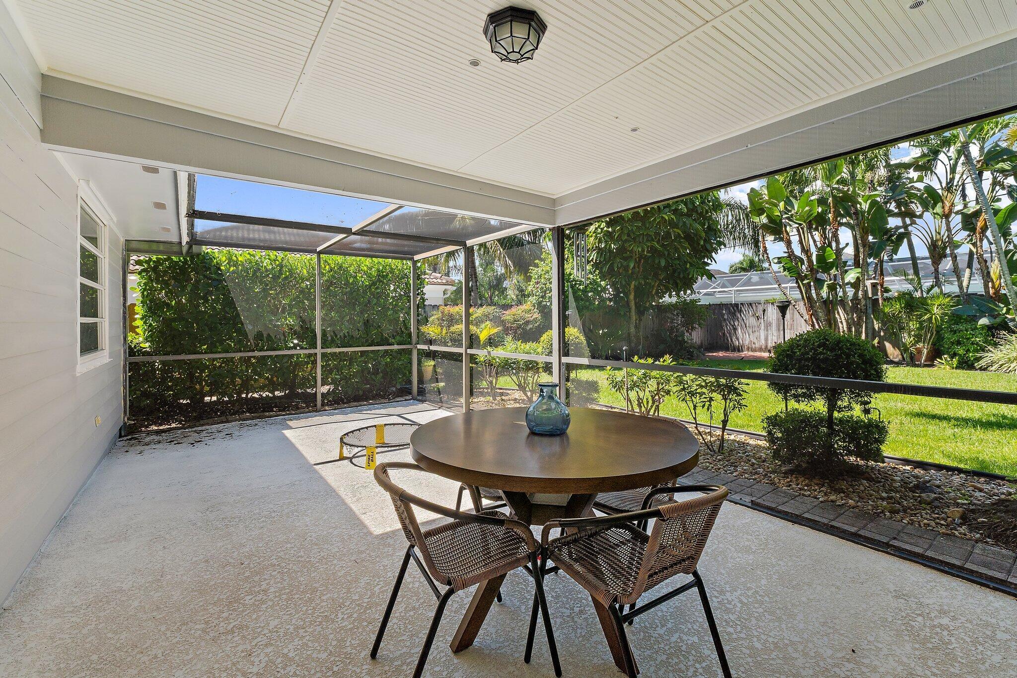 Located in the gated and prestigious Turtle Creek Club community of Tequesta, this updated 3BR/2BA Key West-style home offers vaulted ceilings, split floor plan, and multiple living spaces. The remodeled kitchen (2022) features quartz counters, large island, custom bar w/ mini fridges, and coffee station. Updates include new A/C & ductwork, roof (2023), fresh paint, new gutters, extended driveway, and full fencing. Nearly all openings are impact glass. Enjoy a tropical backyard, screened patio, and ample parking w/ room for boat or RV. Pets considered.
