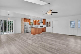 Renovated 3 bedroom, 2 bathroom home with 2-car garage and private backyard with lush landscaping. The kitchen features cherry cabinets, granite countertops, and stainless steel appliances. Enjoy new luxury vinyl flooring throughout, abundant natural light, and an open floor plan perfect for entertaining. Metal roof 2019, new AC.