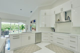 New 2025 Lennox system! Renovated with the highest level of amenities. If you thought of an upgrade, it has been done here. Outdoor patio area with bar b que and gas burners is private and quiet. chef's dream Kitchen, featuring Zeus White Quartz 5 centimeter thick counters, self-closing cabinets with pull out drawers, and additional upper storage. 32'' sink and luxury Thermador appliances, including an induction stove top, convection oven w/ warming drawer, and two wine coolers. All doors are 8-foot wood paneled, contemporary baseboards & crown moldings, and elegant glass tile flooring. The ceilings and walls have been smoothed for a polished look. LED recessed lighting throughout. Remote control privacy window treatments. Communoty pool and cabana, plus walking distance to the club!The primary suite is a private retreat with a large walk-in closet featuring built-in cabinetry and BR privacy electric blinds. The spa-inspired primary bathroom features separated sinks with floating, raised cabinets, a Kohler soaking tub, and a frameless glass shower with stone tile flooring, two shower heads, and body sprays. The bathroom is accented by framless back light mirrors, and a river stone wall with tiled wainscotting for a touch of elegance in the water closet. The second bedroom also offers a walk-in closet with built-ins, while the second bathroom features a floating vanity with framless back lite mirror and a frameless glass walk-in shower. The laundry area is conveniently updated with a stackable washer and dryer and a laundry sink. An instant hot water heater and a raised A/C unit maximize space in the garage, providing functionality without compromise. Wait until you step outside to the backyard which has been designed for entertaining. The covered patio is equipped with electric screens, and the area is fully paved with AstroTurf for low-maintenance luxury. The summer kitchen on the side of the home is perfect for grilling and outdoor gatherings or set up your hammock in the back and lay in the shade. Wycliffe Golf & Country Club Is a mandatory membership community, with the best lifestyle In South Florida. Showcasing two challenging recently renovated 18-hole championship golf courses, with contrasting styles. There are 14 Har-Tru tennis courts, with center court Stadium seating. The sports court features 8 pickle ball courts, basketball hoop, and hitting wall. Recently opened private dining room "Flavours" surpasses the highest expectation. The "Watermark", dining room continues to have great parties and entertainment, and who doesn't love our "Grill" for breakfast, lunch and dinner "The Cliff" is our lobby bar and lounge State of the art fitness center, with Pilates studio and classes, aerobics, yoga, spin, water aerobics, personal trainers and more fitness classes than a person could take in a day. "Thryve" our full-service spa, sauna, steam, and Olympic Size Swimming. Snacks can always be found at the Ladies and Men's card rooms. Clubs, Charities and organizations for every interest. Fabulous programs and special events, lots of dinner dances, trivia nights, shows and activities. Best of all we are located just minutes from the International Polo and Dressage and Jumping events, at the Wellington Equestrian Center. Centrally located, Wycliffe has easy access to Boca Raton, Delray Beach, Palm Beach, City Place and the West Palm Beach airport. Wycliffe homeowners association provides Comcast high speed internet, telephone and cable TV to contain the X1 platform with whole-house DVR, High Definition and 3 additional HD boxes which cover up to 4 TVs with voice activated remotes, including HBO and Showtime. The high speed internet service of 150 mbps speed and telephone service, local and long distance calling, included in the HOA. All landscaping maintenance, sprinkler systems, exterior painting, pressure cleaning the roofs, and security is included in the quarterly HOA maintenance fee. Wycliffe has roving guards, paramedics on campus, monitored alarm systems, and manned gates. Yes You Deserve It!