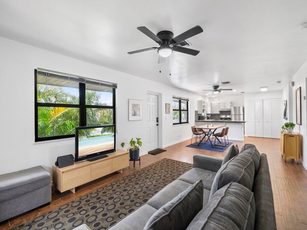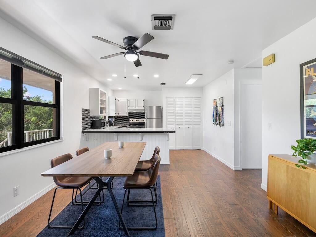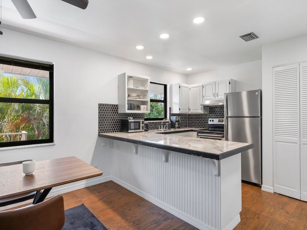 It's more than a condo, it's the Florida Beach lifestyle!!! Just Two Blocks from the BEACH! PRIME Location on Hutchinson Island on North Beach, where A1A ends in a community that directly borders the Fort Pierce Inlet State Park--340 acres of protected land and pristine coastline--this beautifully renovated 2-BR, 2-bath condo w/ new hurricane windows and sliding door, offers the ultimate coastal lifestyle. Only a 4-unit complex, walking distance to a secluded beach, was built with CBS construction and topped with a 2023 roof. The community is just moments from boat ramp, fishing piers, kayak launches, and local favorite, Little Jim's, setting the tone for a laid-back, island rhythm. Step onto your private balcony to take in lush, tropical views from this elevated second-floor condo.With desirable south and east exposures, the living space is bright and breezy, comfortably cool and shaded throughout the day. Upgrades include impact windows and sliders (2024), elegant ceramic tile flooring, and a newer washer, dryer, and refrigerator - making this home move-in ready. Seller is open to including furnishings (negotiable). With shops, restaurants, and the beach right around the corner, this condo places the best of Hutchinson Island at your doorstep. Seller's Top 10 Reasons They Love Living Here (and why you will love it too!): Best Location for Recreation - Step outside to endless options: the beach, A1A cycling routes, and the Fort Pierce Inlet State Park just across the street. Short Walk to a Secluded Beach - Enjoy sunrises, shelling, and peaceful shoreline strolls away from the crowds. Bright & Breezy Condo - South-facing windows bring in natural light all day, without ever having direct sunlight keeping it cool and bright with natural light. Open-Plan Layout - Perfect for easy living and entertaining with seamless flow between spaces. Two Private Bathrooms - Ideal for comfort, convenience, and privacy whether for family or guests. Plenty of Storage - Space to tuck away your beach gear, bikes, and more. Two Parking Spaces - Rare island bonusroom for your cars, golf cart, or visitors. Hurricane/Impact Windows/Sliding doors & Soundproofing - Peace of mind with storm protection plus a quieter, more serene home. Easy to Maintain - Spend less time on upkeep and more time soaking in the coastal lifestyle and outdoor activities you love. Move-In Ready - No projects, no stressjust bring your flip-flops and start living the beach life! Features and Improvement List: Hurricane windows and sliders installed June 13, 2024 New roof installed Feb. 2 2023 HVAC change out permit pulled 2/23/2013 Ceramic Tile flooring Complex is concrete block construction Low HOA fees - $333.34 per month; charged at $1000 per quarter Two parking spots per unit 2 blocks away to nearest beach access; no parking in or around beach = less crowded beaches 4 minutes to nearest public boat ramp (North Causeway Island Boat Ramp) 4 minutes to Little Jims Bait and Tackle 2 mins from Fort Pierce Inlet State Park .2 minutes north to the Navy Seal Muse Please note: Property is subject to a Right of First refusal in favor of the HOA. Buyer acknowledges that any executed purchase agreement will be contingent upon a waiver or expiration of such right in accordance w/ governing documents.