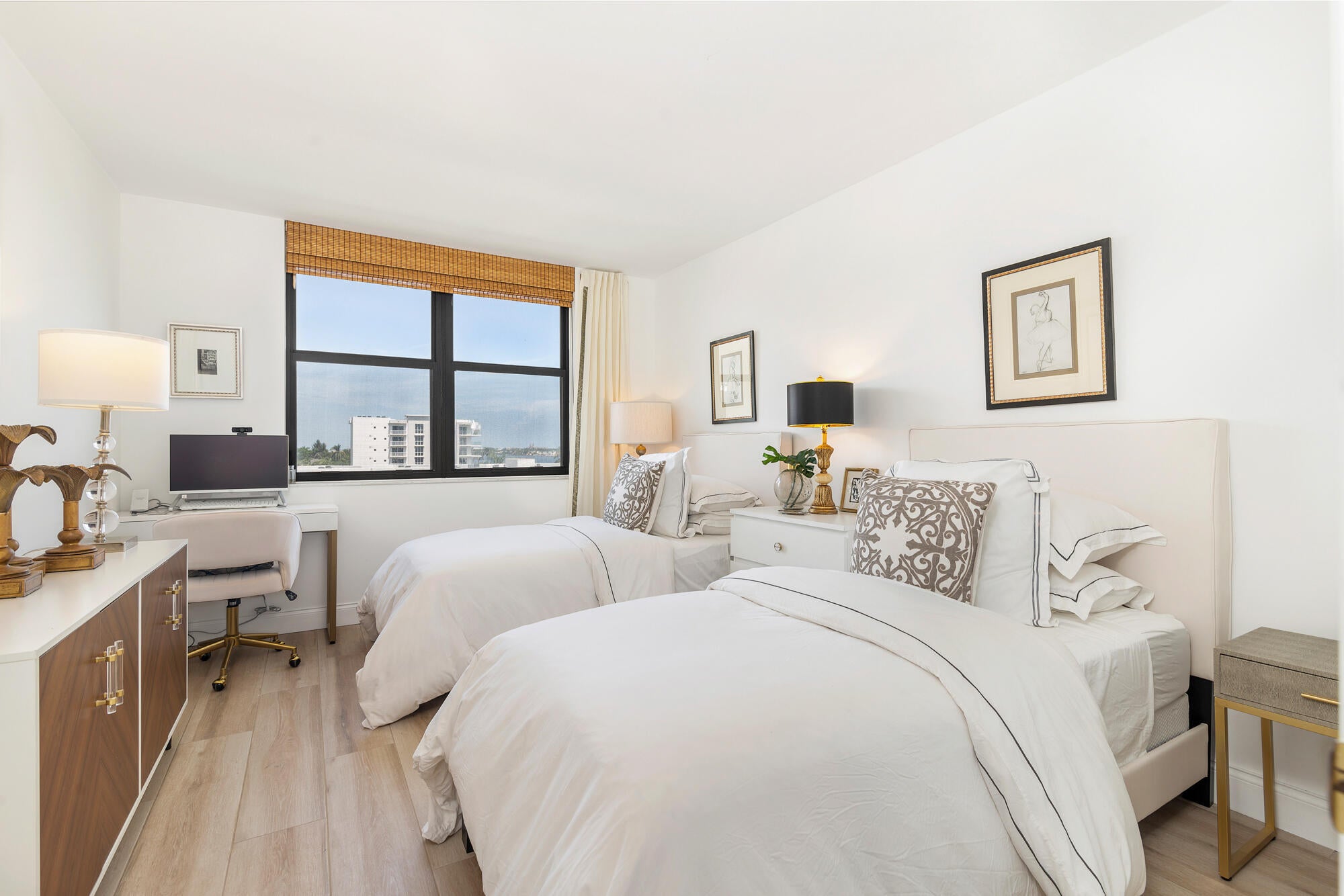 Immaculate 2 bedroom 2 bath apartment with an abundance of natural light and expansive water views. Desirable split floor plan, walk-in closet, impact windows and remodeled kitchen and baths. Located in Portofino South, a full service pet friendly building, offering 24 hr. doorman, on-site manager, oversized heated pool, community room, library, sauna, bike room, storage and a day dock! Ideally situated on the Intracoastal Waterway with easy access to Palm Beach.