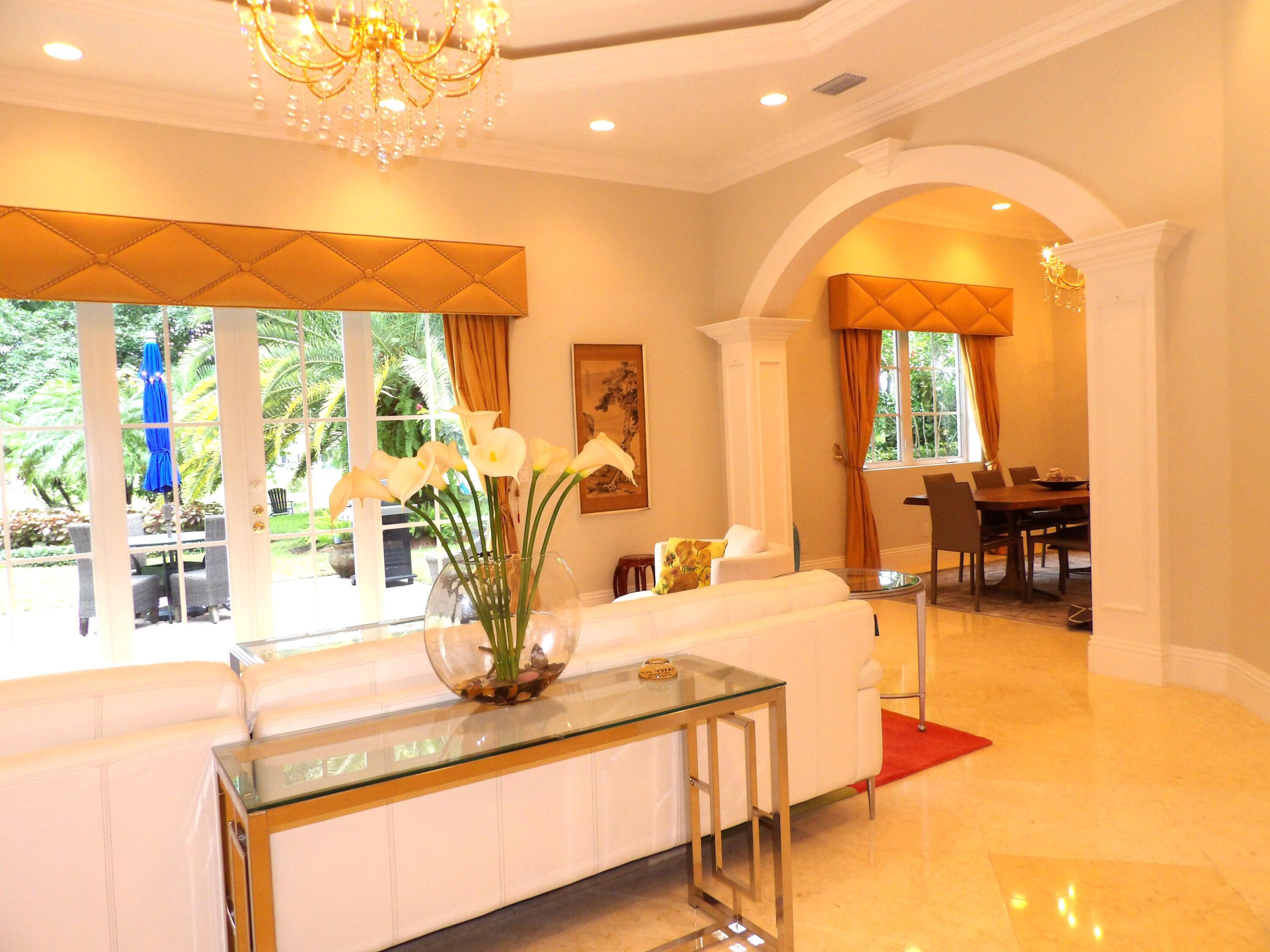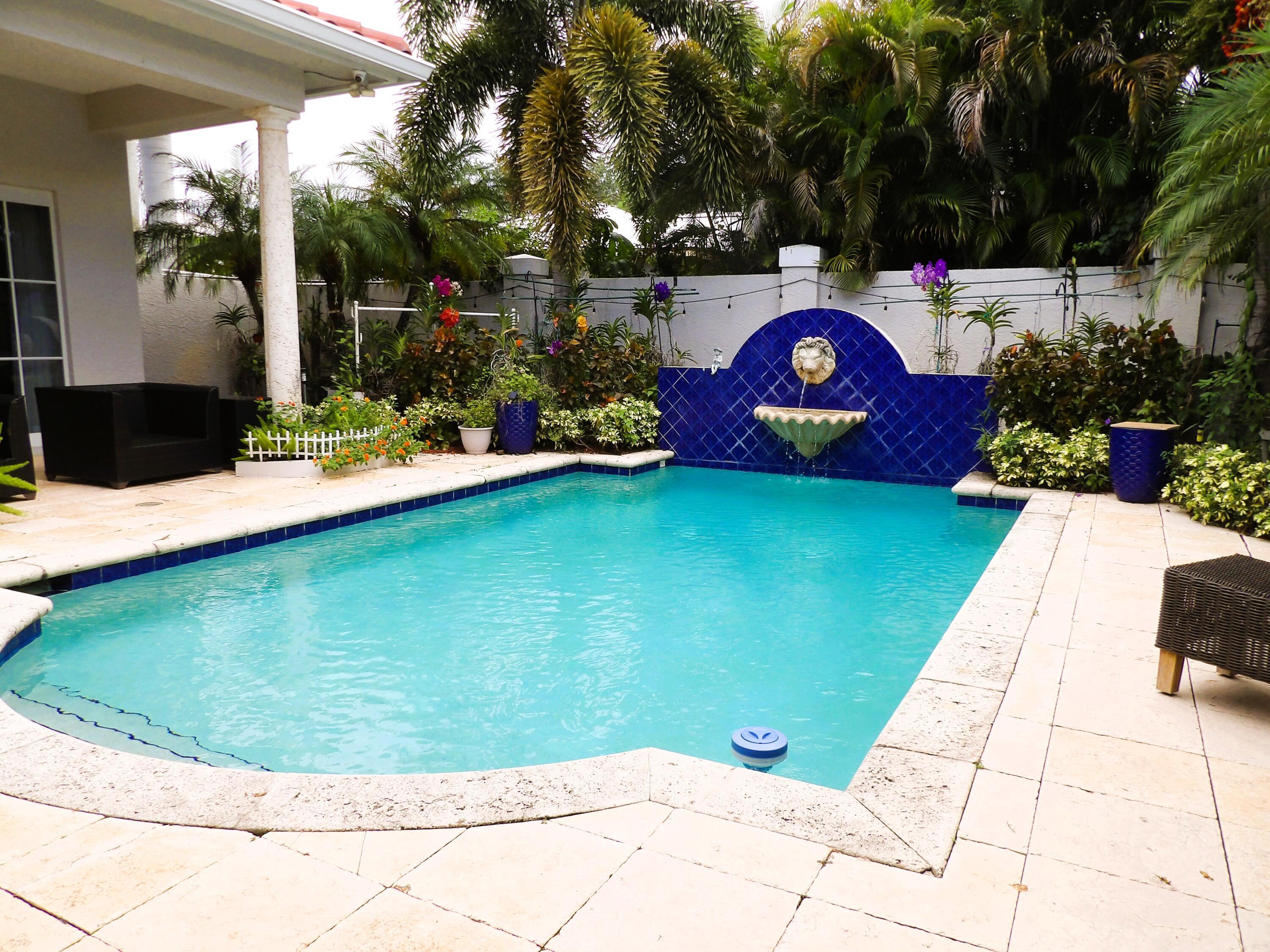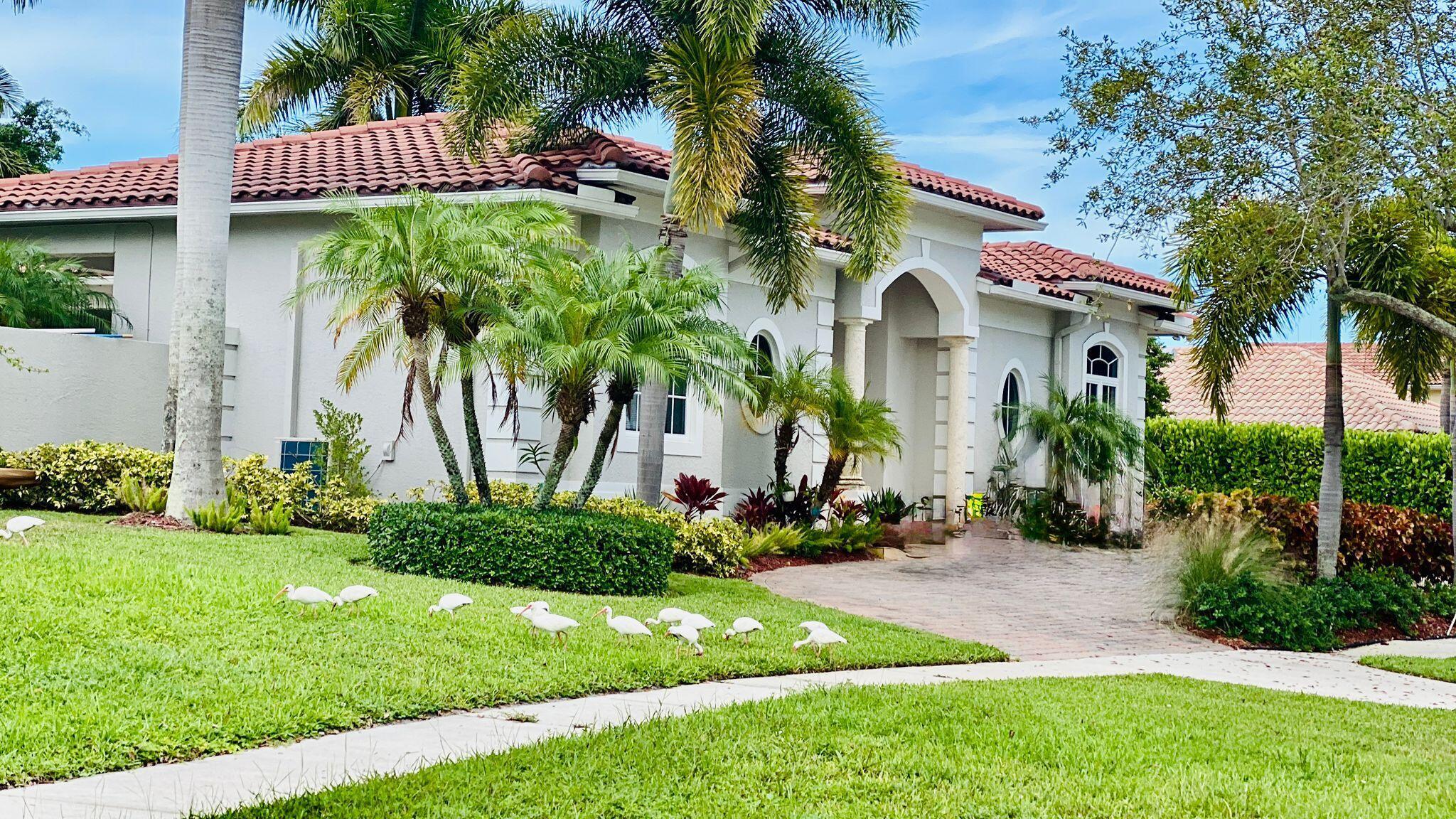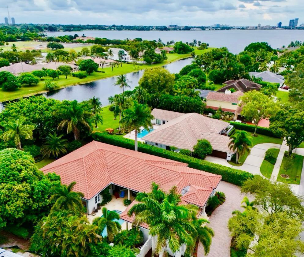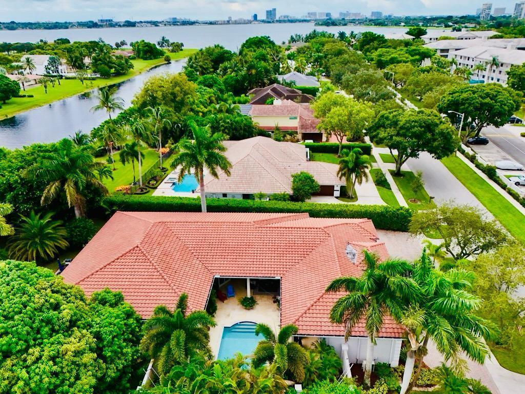 Elegant custom estate in prestigious Presidential Estates, built in 2008 with hurricane-safe construction rated to 240 mph. This home offers 4 spacious bedrooms, an office, and 3.5 baths. The classically center courtyard true private retreat features a private guest quarters, pool, fountain, and summer kitchen--perfect for entertaining or relaxing. Inside, a brand-new quartzite gourmet kitchen pairs with solid wood cabinetry, seemles tile flooring. Elegant details include Egypcian marble thougout, Swarovski crystal chandeliers, and gold accents for timeless sophistication. Set on a 110x137 lot plus a 1/4-acre canal easement with direct access to Lake Mangonia, two kayaks included. Just minutes to downtown, beaches, airport, and premier shopping. This home offers both luxury and convenience.