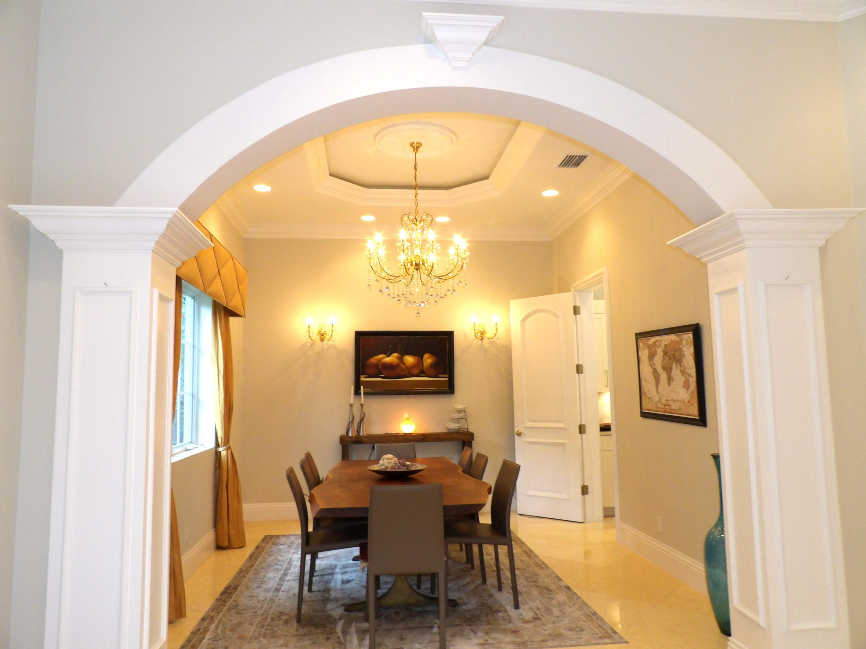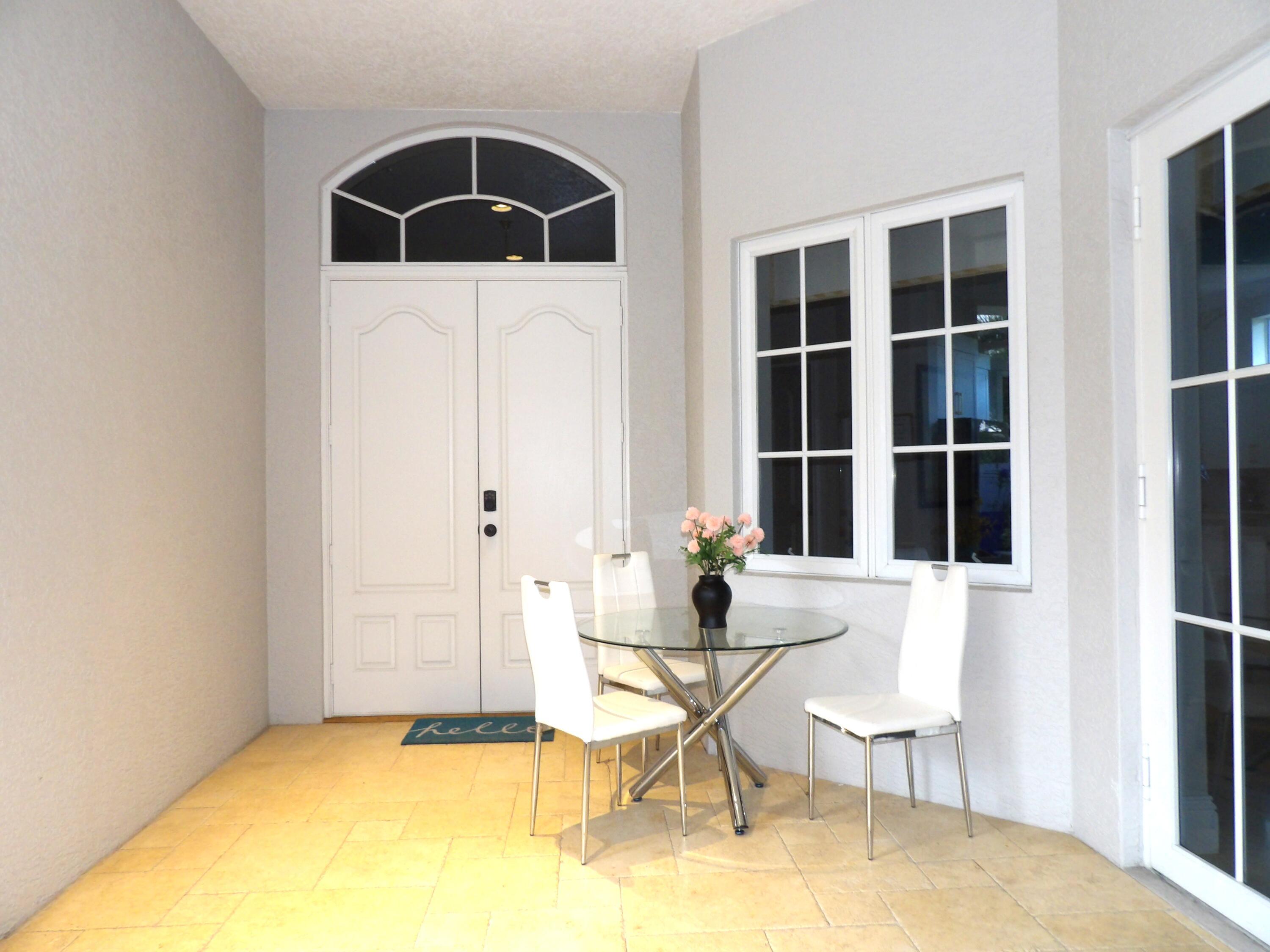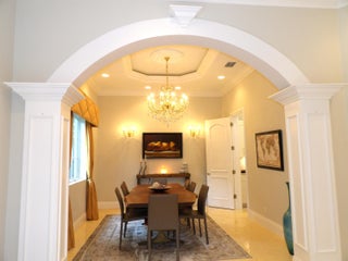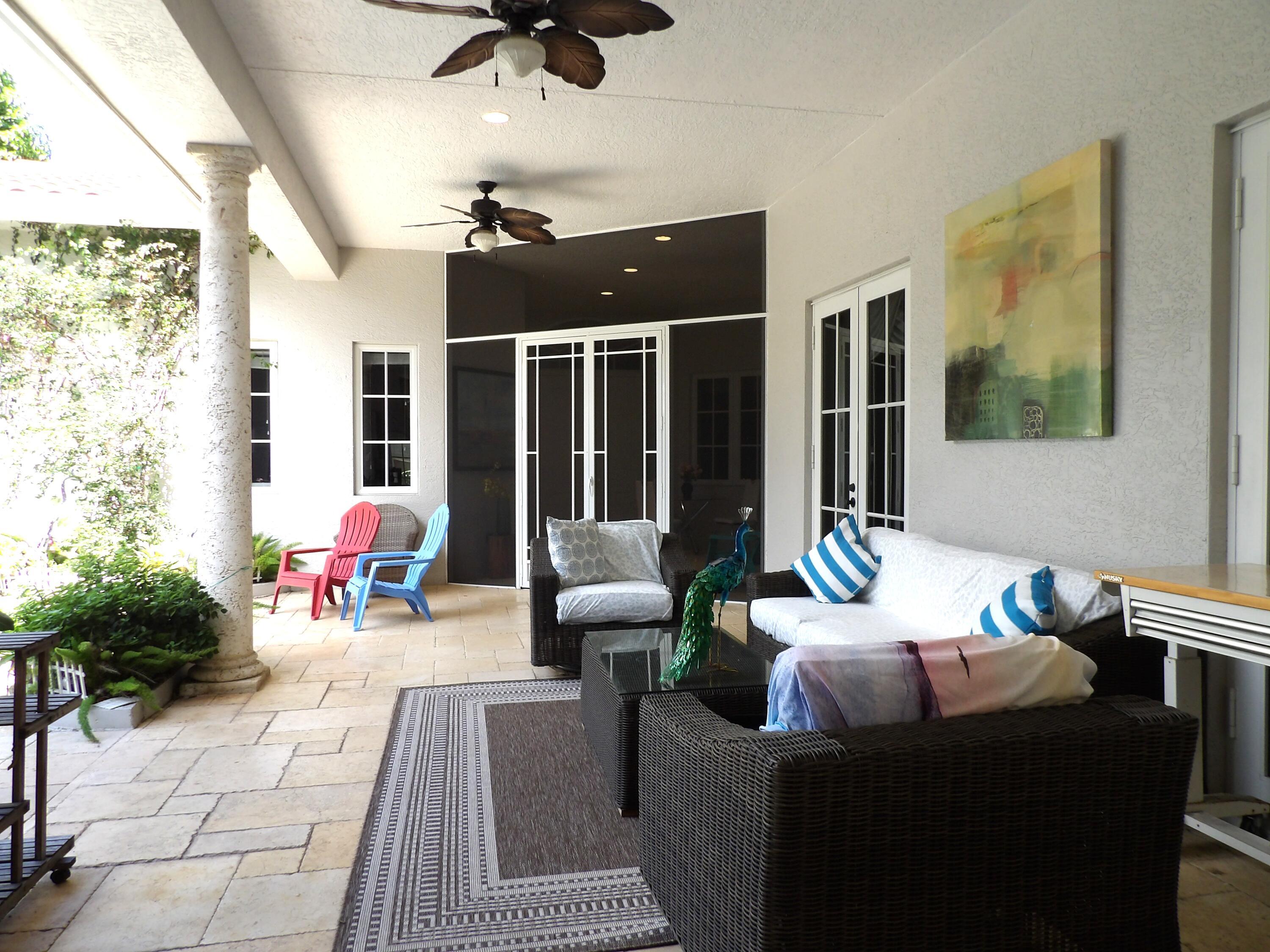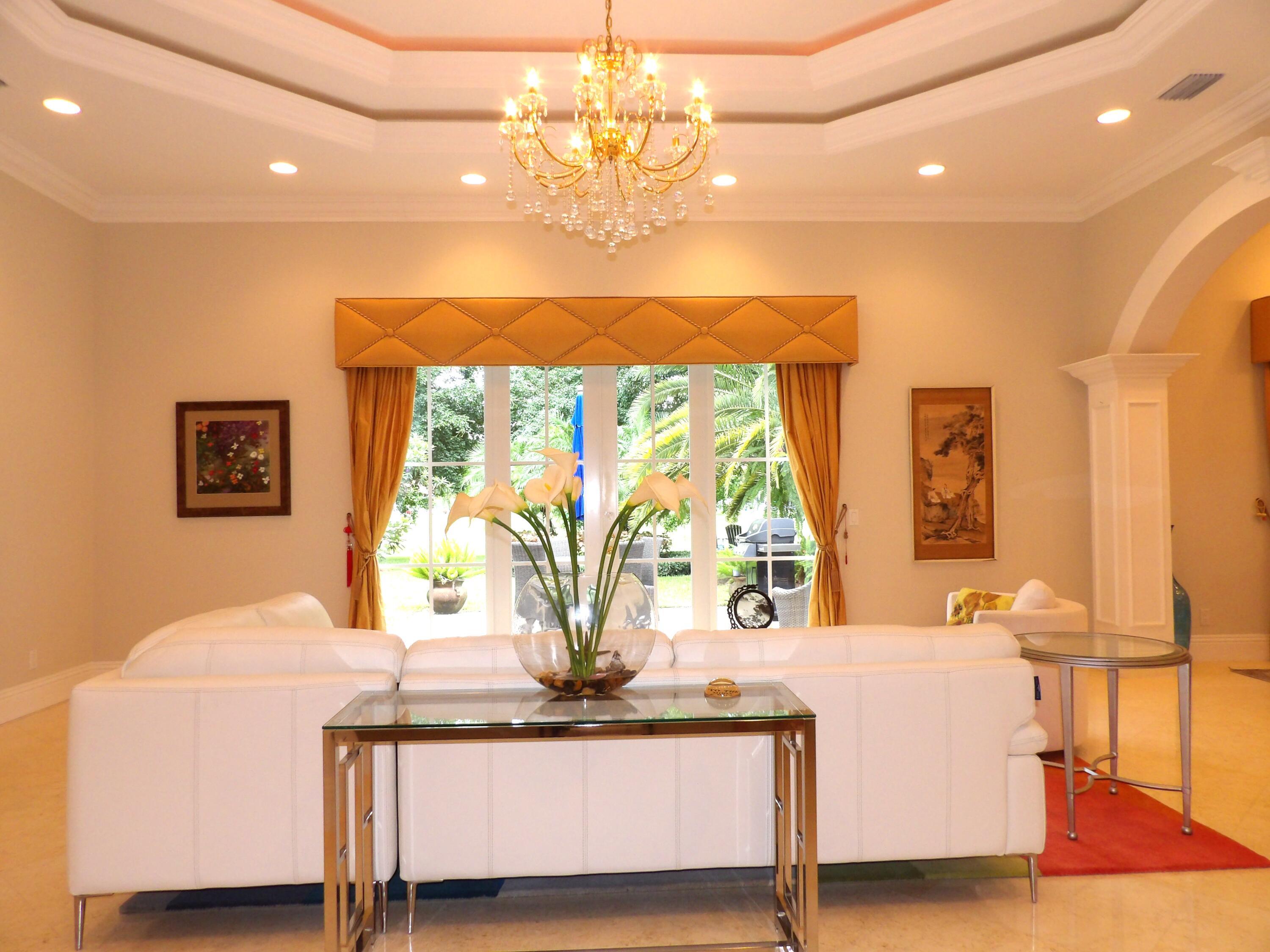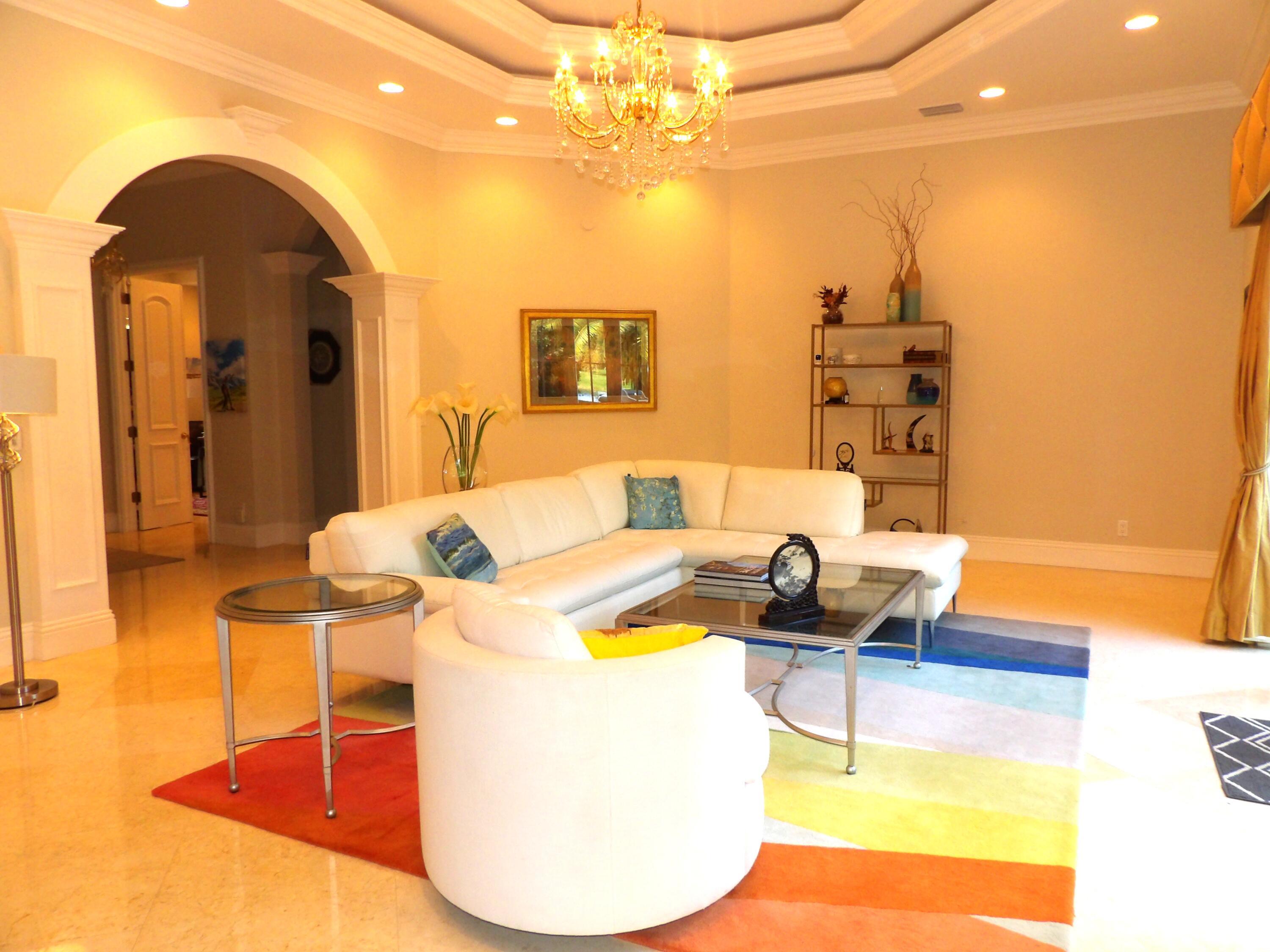 Elegant custom estate in prestigious Presidential Estates, built in 2008 with hurricane-safe construction rated to 240 mph. This home offers 4 spacious bedrooms, an office, and 3.5 baths. The classically center courtyard true private retreat features a private guest quarters, pool, fountain, and summer kitchen--perfect for entertaining or relaxing. Inside, a brand-new quartzite gourmet kitchen pairs with solid wood cabinetry, seemles tile flooring. Elegant details include Egypcian marble thougout, Swarovski crystal chandeliers, and gold accents for timeless sophistication. Set on a 110x137 lot plus a 1/4-acre canal easement with direct access to Lake Mangonia, two kayaks included. Just minutes to downtown, beaches, airport, and premier shopping. This home offers both luxury and convenience.