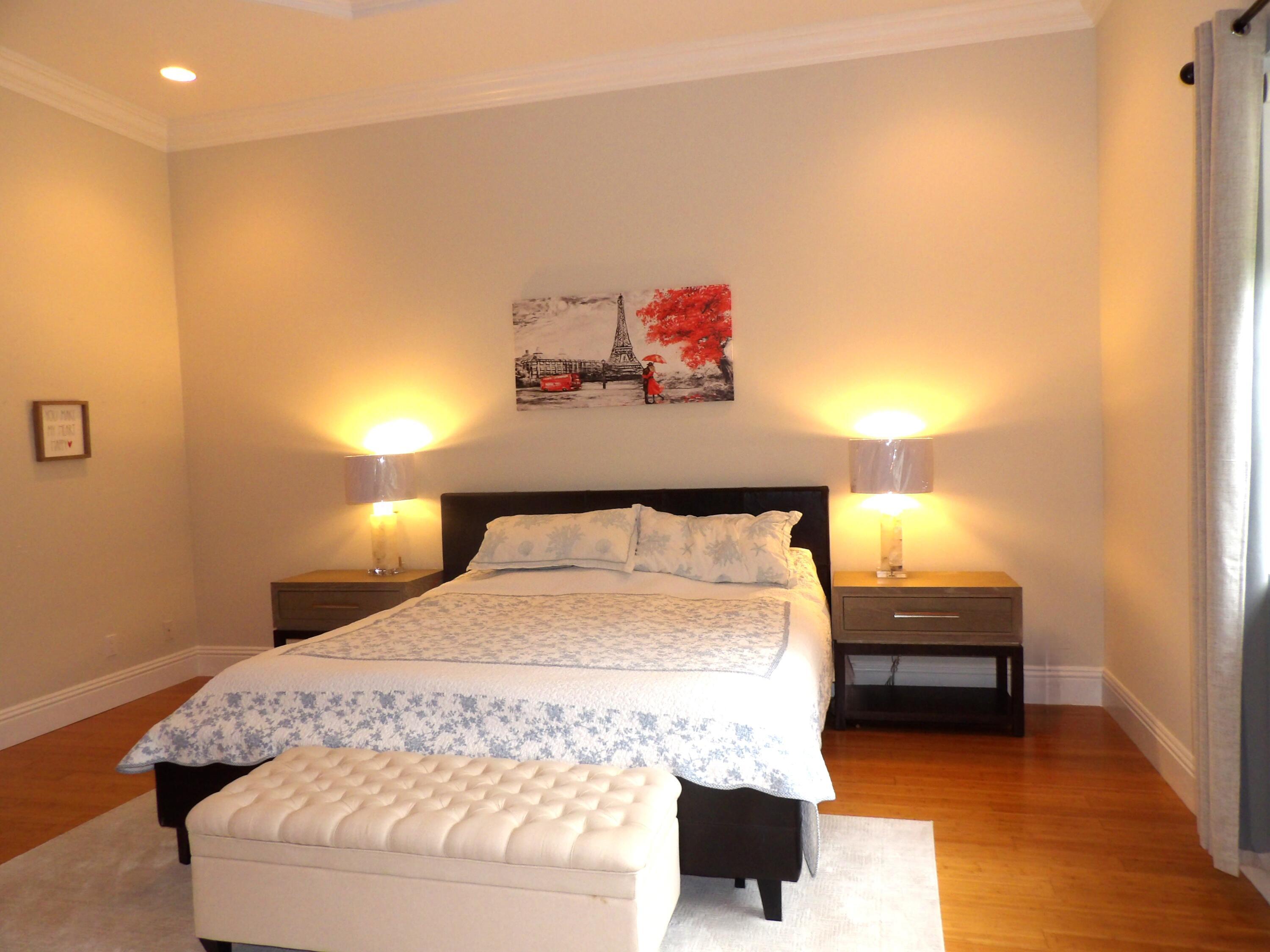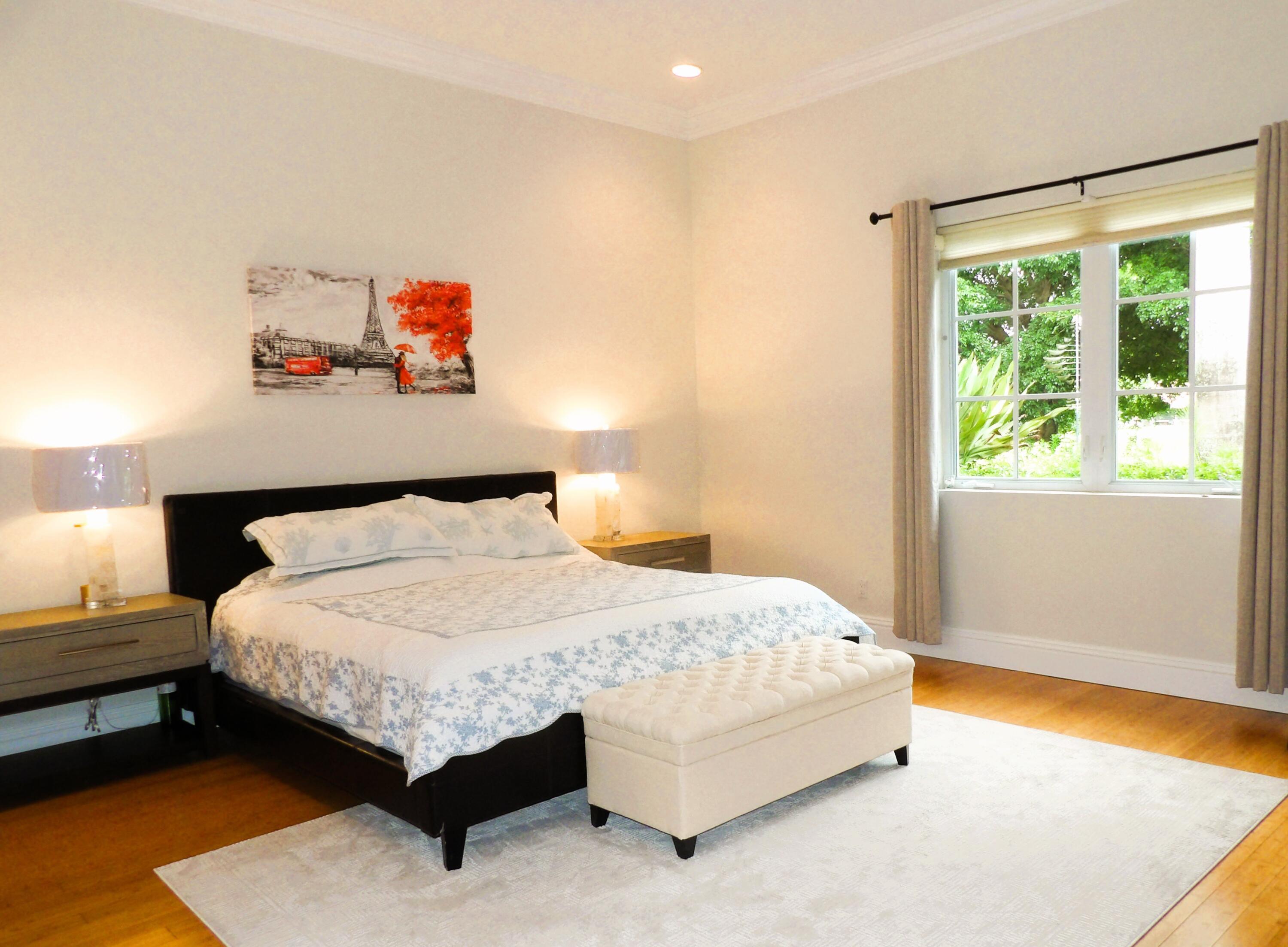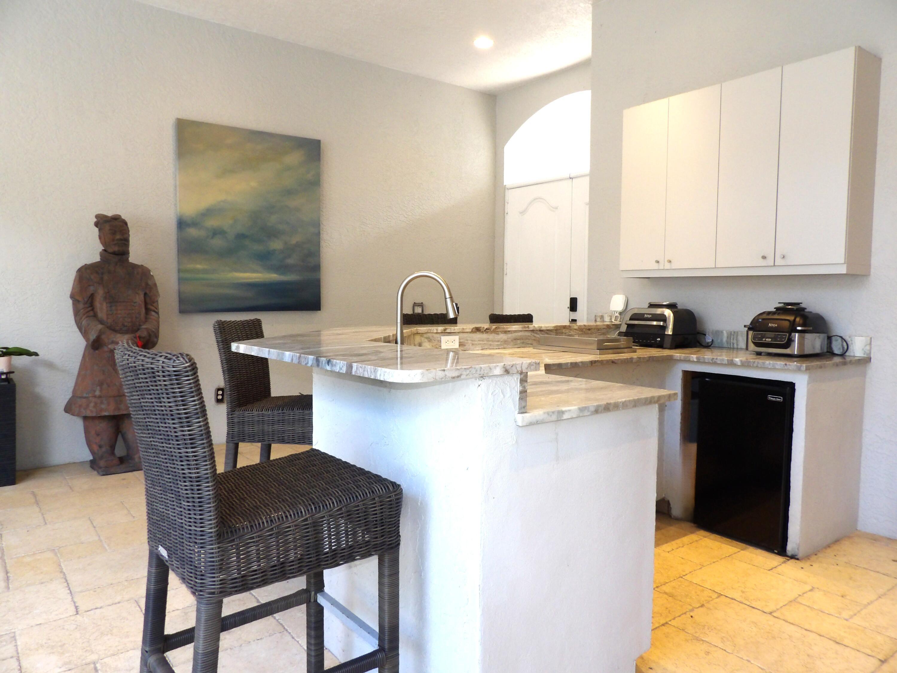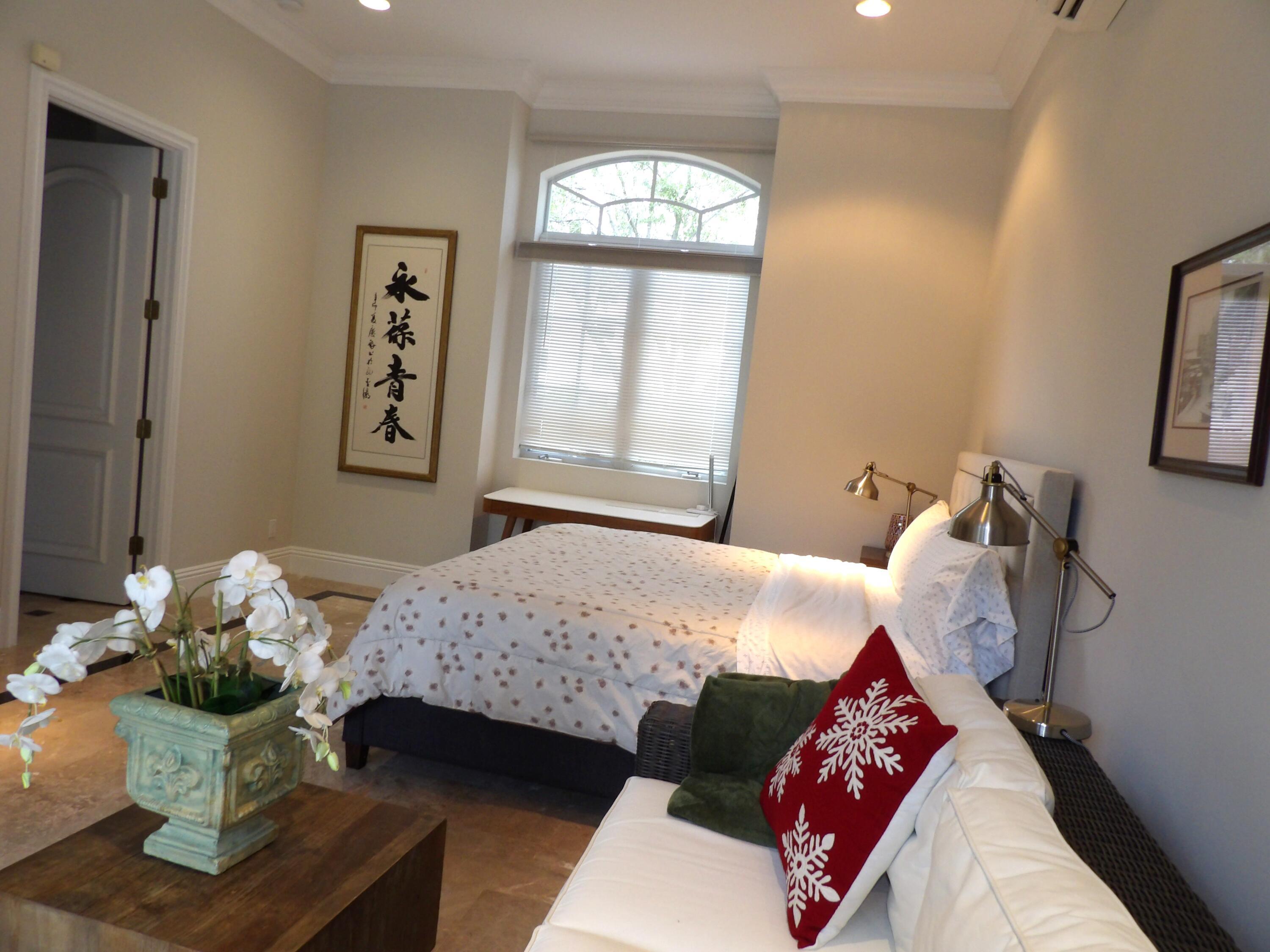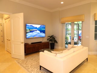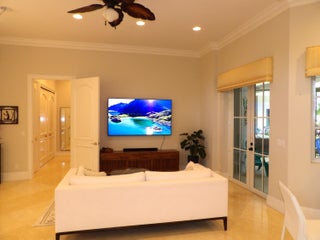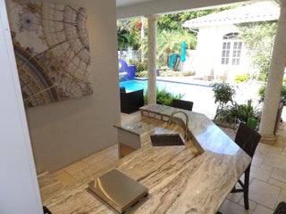 Elegant custom estate in prestigious Presidential Estates, built in 2008 with hurricane-safe construction rated to 240 mph. This home offers 4 spacious bedrooms, an office, and 3.5 baths. The classically center courtyard true private retreat features a private guest quarters, pool, fountain, and summer kitchen--perfect for entertaining or relaxing. Inside, a brand-new quartzite gourmet kitchen pairs with solid wood cabinetry, seemles tile flooring. Elegant details include Egypcian marble thougout, Swarovski crystal chandeliers, and gold accents for timeless sophistication. Set on a 110x137 lot plus a 1/4-acre canal easement with direct access to Lake Mangonia, two kayaks included. Just minutes to downtown, beaches, airport, and premier shopping. This home offers both luxury and convenience.