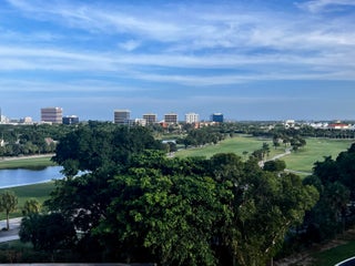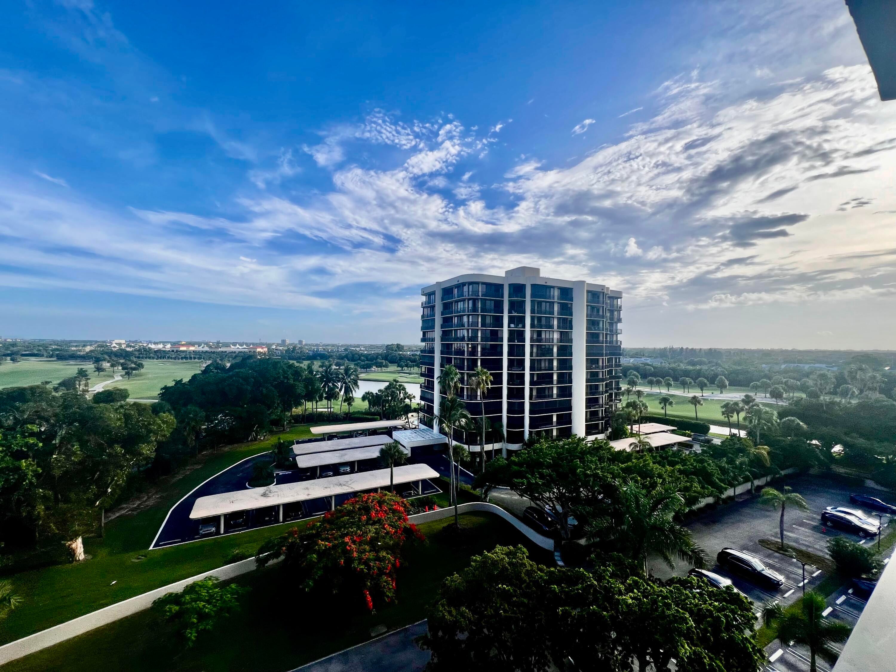 Recently updated bright corner unit in the Lands of the Presidents. Come live in this beautiful unit sheltered by the golf course and lakes! Features modern new bathrooms, natural wood floors in living area, new appliances, backsplash, large pantry, large walk in closets, modern light fixtures and pocket doors that allow you to open the floor plan or keep your privacy. Enjoy the sunrise or sunset from your 8th floor balconies admiring the natural light as it fills the rooms showcasing spectacular blues and greens from the lakes and golf course. Indulge in your spacious kitchen, living room and bedrooms. Jefferson tower's prime location is situated only steps from the Dutchman's Pipe Golf Club & within walking distance to the PB Outlets. INTERNET & WATER inHOA fees include internet, cable, water, building insurance, exterior maintenance, pool service, concierge and many other services..washer and dryer only steps away (locked room and always kept clean)