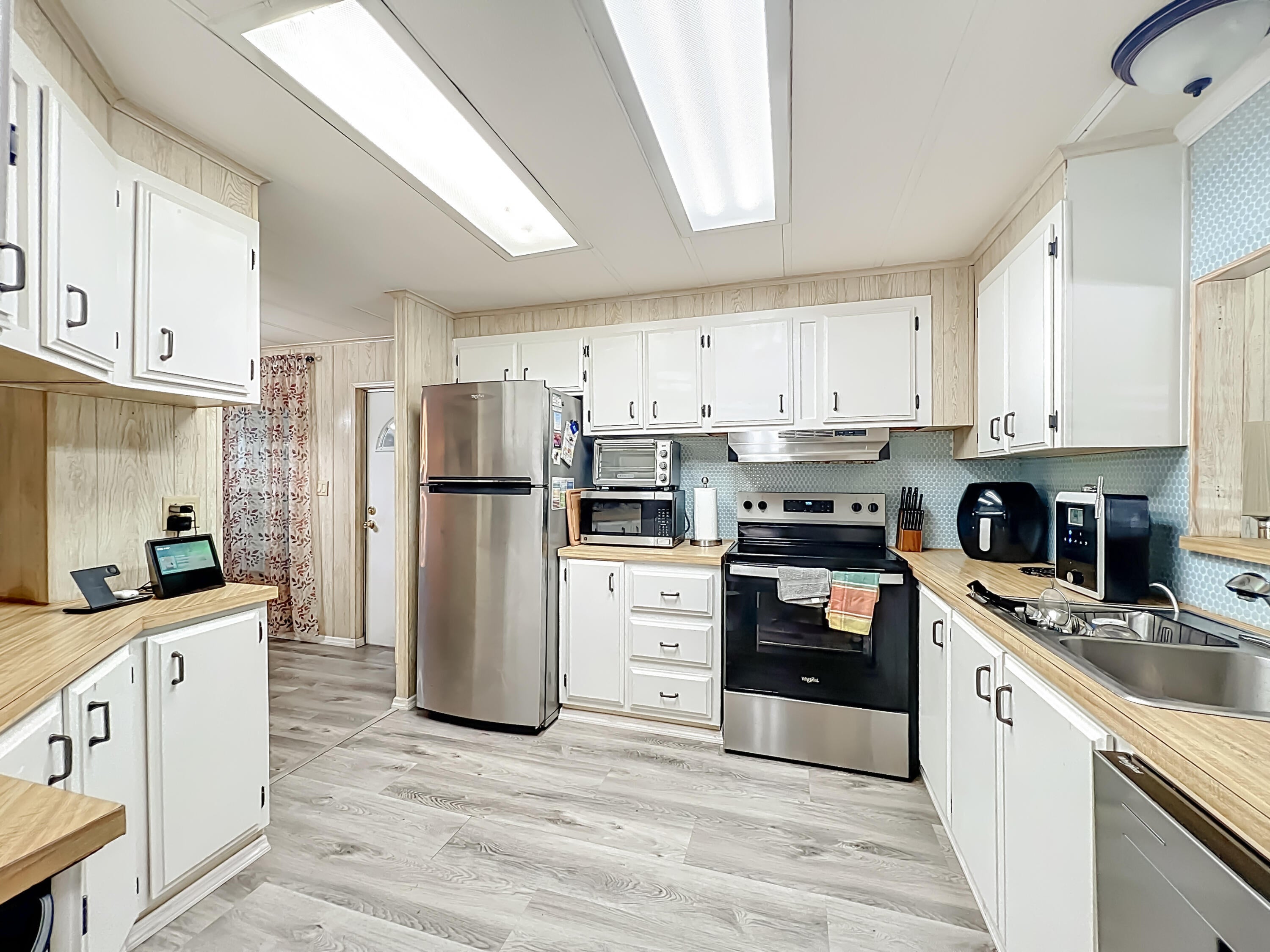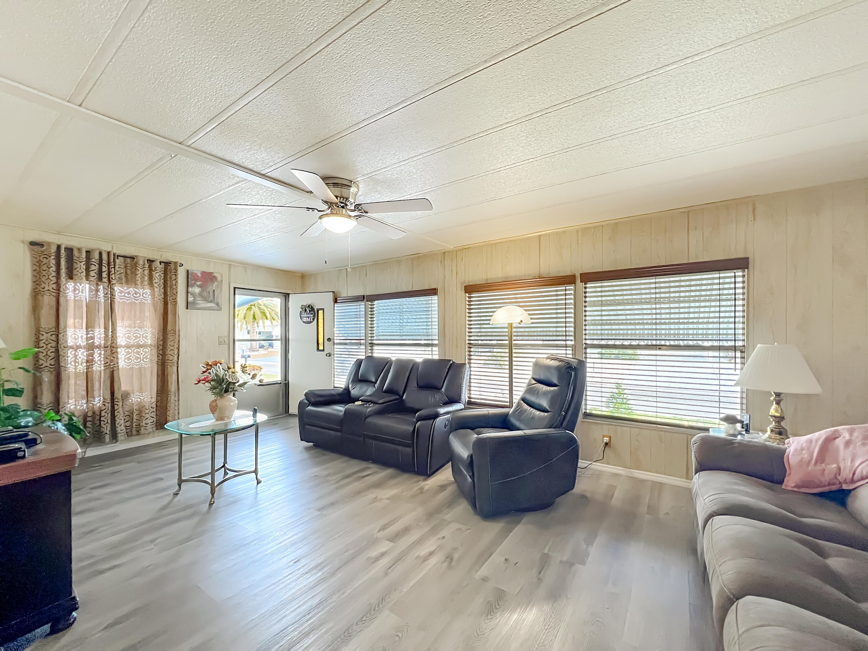 Discover comfortable living in this charming 2-bedroom, 2-bath manufactured home located in a welcoming 55+ community. Low HOA. Situated in a no-flood zone, this property is ideal for downsizing or first-time homebuyers seeking affordability and peace of mind. The open floor plan creates a warm, inviting atmosphere that's perfect for entertaining or relaxing with family. Both bedrooms are spacious, complemented by two full bathrooms for added convenience. To maximize comfort and efficiency, the home includes three brand-new A/C units strategically placed throughout--helping you save on electricity by reducing the need for central HVAC use. With low-maintenance living in a desirable location, this home is a wonderful opportunity you won't want to miss!