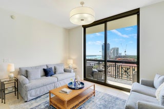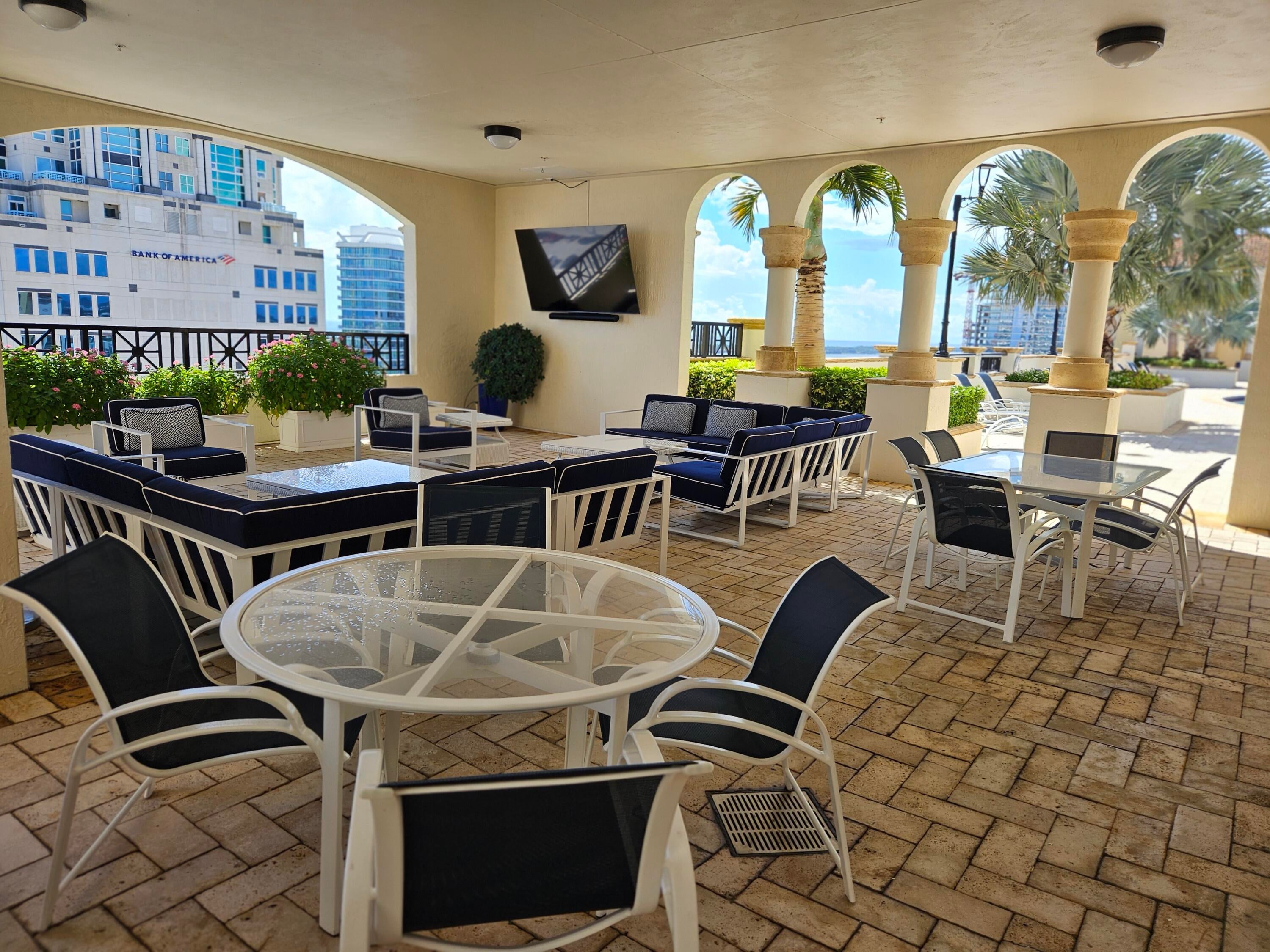 Ocean Views! Intracoastal Views! 2 Bedrooms 2 baths with Den! 2 Parking spots with 1 Premium parking spot next to Lobby. 9th floor with large terrace. Custom Kitchen with solid wood cabinets, quartz countertops, all Applicances, A/C, Water Heater Newer, Storage cage included, Tile in Den/Media Room/Office & living area with new carpet in both bedrooms. Master has double separate vanities, large soaking tub, custom walk in closet, this condo has no buildings in front of it, Must See! One of the BEST buildings in Downtown WPB for sure! No assessments, great reserves, Dog & Cat friendly bldg. Up to 2 dogs total 60lbs. Heated Rooftop Swimming Pool, Gas Grills with Million Dollar views of Palm Beach and more! Sauna, Steam Roof, Gym, Clubroom 24/7 Lobby person andSecurity. The Association is in full compliance with the statutory 'Structural Integrity Reserve Study' (SIRS) requirements. The are no prefunding requirements nor are there any projected increase in reserve funding outside of cost of living. It should also be noted that as part of the SIRS inspection, no structural issues were noted by the engineer performing the inspection. There are NO special assessments being considered. Included water, trash, basic cable, high speed internet.