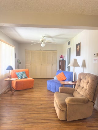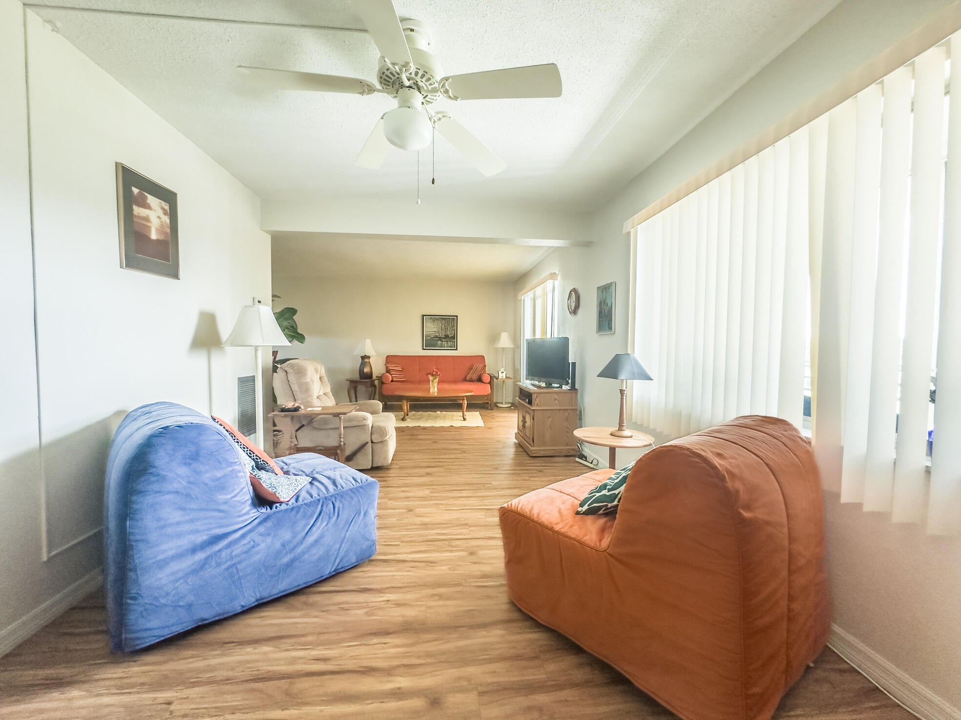 This corner unit on the top third floor waiting for the new owner. Floor plan is convertible and can easily be converted into two bedrooms. This unit is convertible floor plan and can easily modified to meet the needs of the resident. Beautiful laminate flooring throughout the apartment and a stunning open view from the apartment- wide balcony make this apartment desirable. HOA fee includes water, waste, cable, Wi-Fi & Internet. Unit need just a little bit LTC. The vibrant 55+ community has many amenities: two pools, saunas, BBQ areas, gym, library, billiards, ping pong, club house, putting green, shuffleboard and bocce ball courts, woodworking shop, and courtesy bus for weekly trips. Office and manager on site. Very motivated seller came to make an offer.