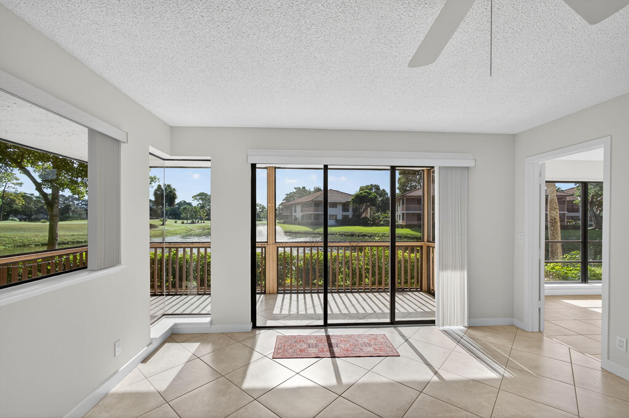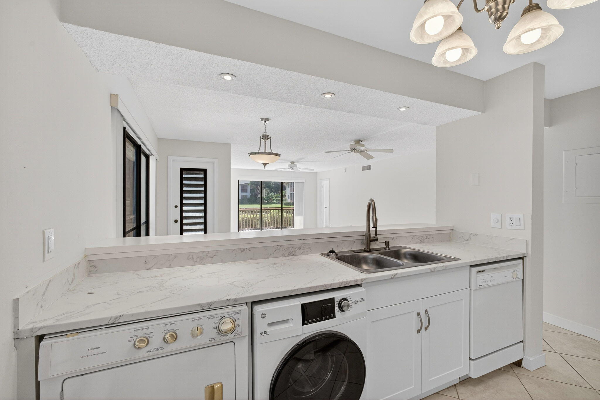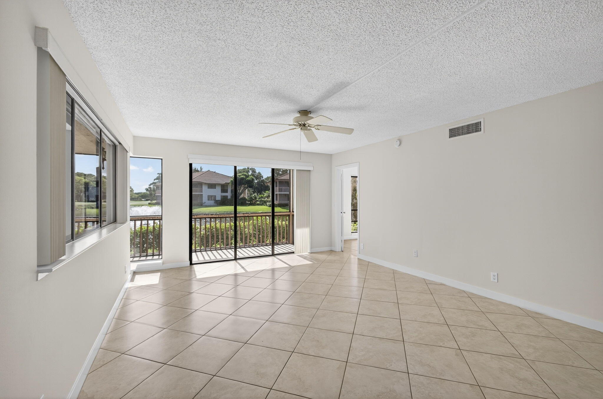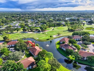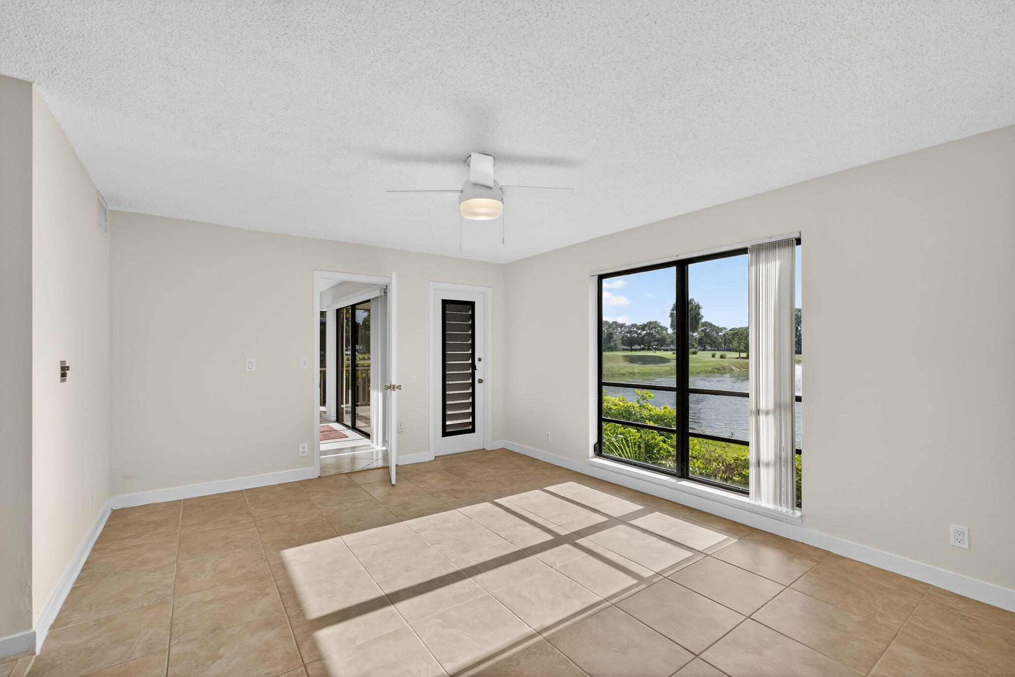 Great water and golf course views are the cherry on top of this annual rental opportunity! Located on the first floor, this two-bedroom, two-bathroom corner unit features a spacious living area, plenty of natural light, an in-unit washer and dryer for convenience, and tile flooring throughout. Golf Villas also offers two community pools for residents to enjoy.