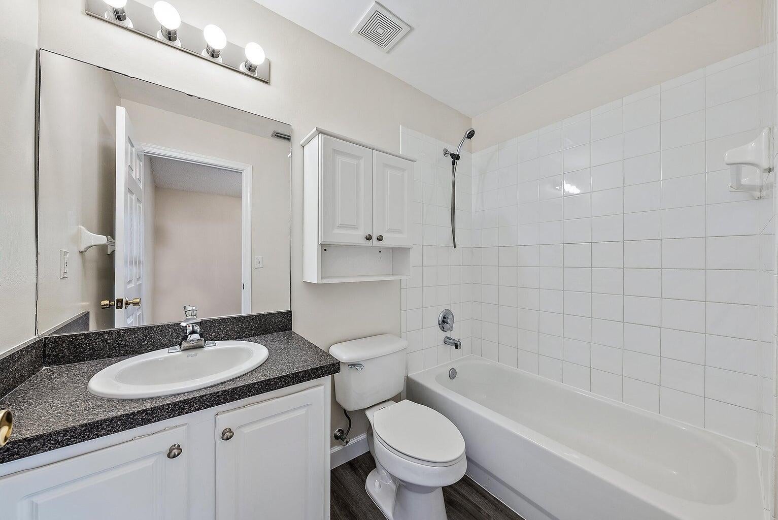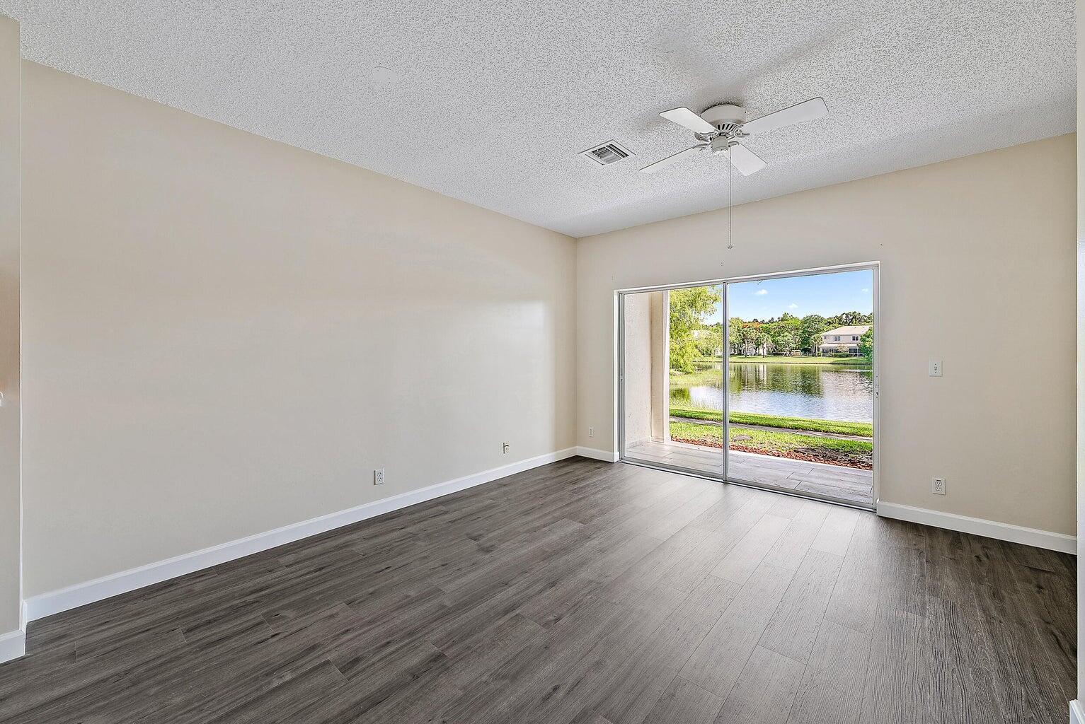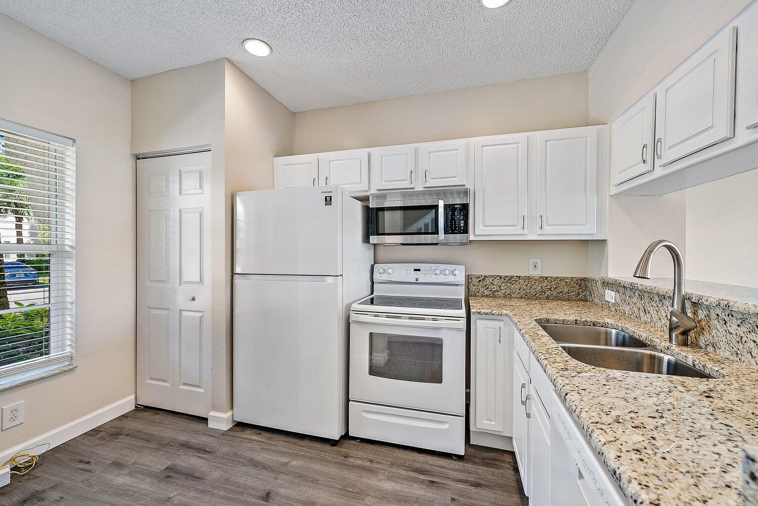 Enjoy pristine lake views from this spacious 2BR/2.5BA townhome. Freshly updated and ready for immediate move-in. The home has been completely refreshed with brand-new vinyl flooring throughout, fresh neutral paint (ceilings, baseboards, doors, and kitchen cabinets), and updated fixtures including new hardware and LED lighting. The kitchen features new granite countertops, sink, garbage disposal, and upgraded appliances: Samsung refrigerator, LG microwave/oven, and KitchenAid dishwasher.Step out from the living room onto your private patio overlooking a serene lake, the patio was finished with new light-grey tile and landscaping accents for a comfortable outdoor retreat.Jonathan's Cove is a gated community offering resort-style amenities including a large pool, clubhouse, fitness center, and sand volleyball courtall within a walkable neighborhood with plenty of sidewalks. The location is ideal for year-round living, just minutes from I-95, Palm Beach International Airport, beaches, equestrian venues, and Downtown West Palm Beach. Sports fans will love being 5 minutes from The Ballpark of the Palm Beaches, spring training home of the Houston Astros and Washington Nationals. This property combines comfort, style, and convenienceperfect for a long-term rental in one of West Palm Beach's most desirable gated communities.