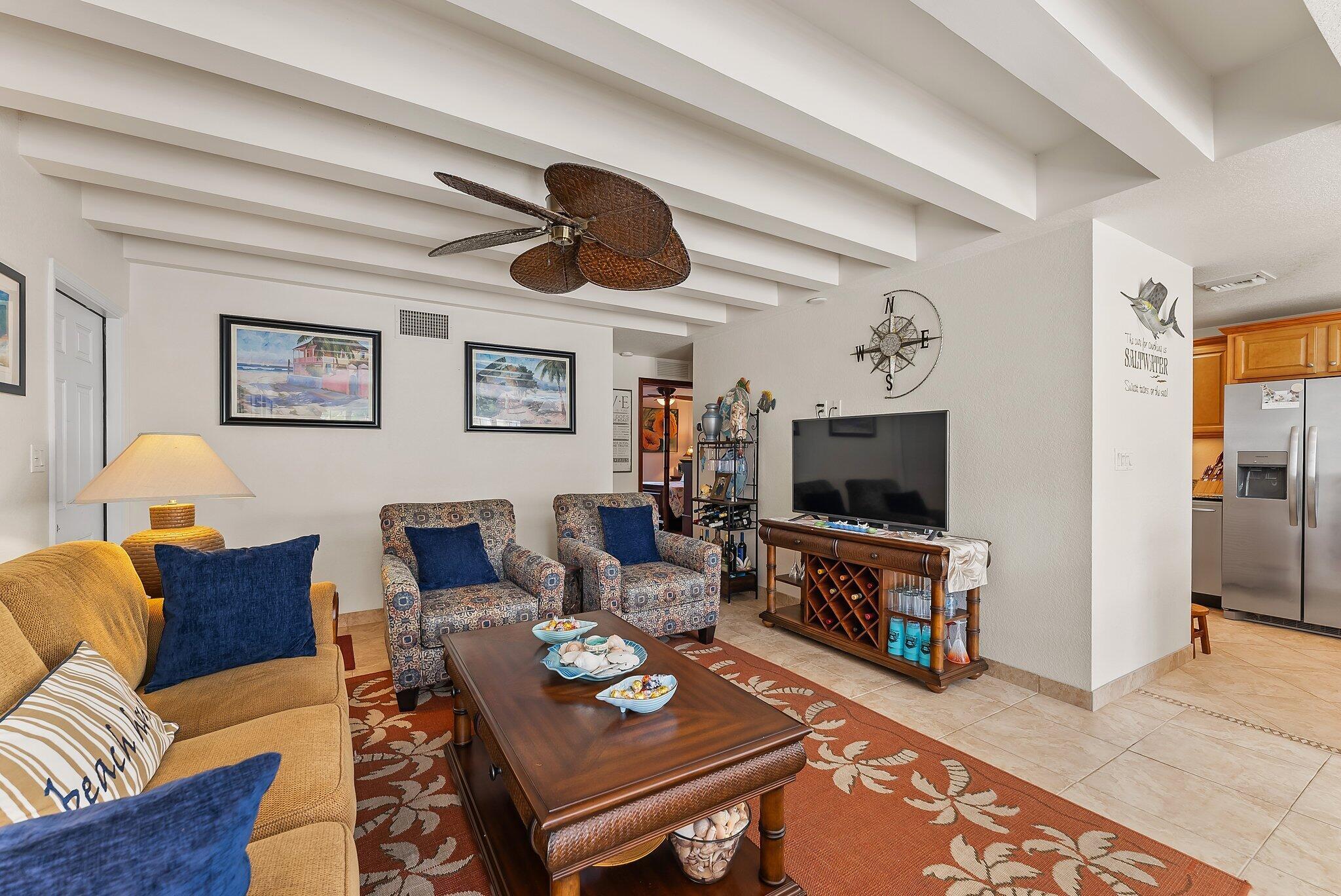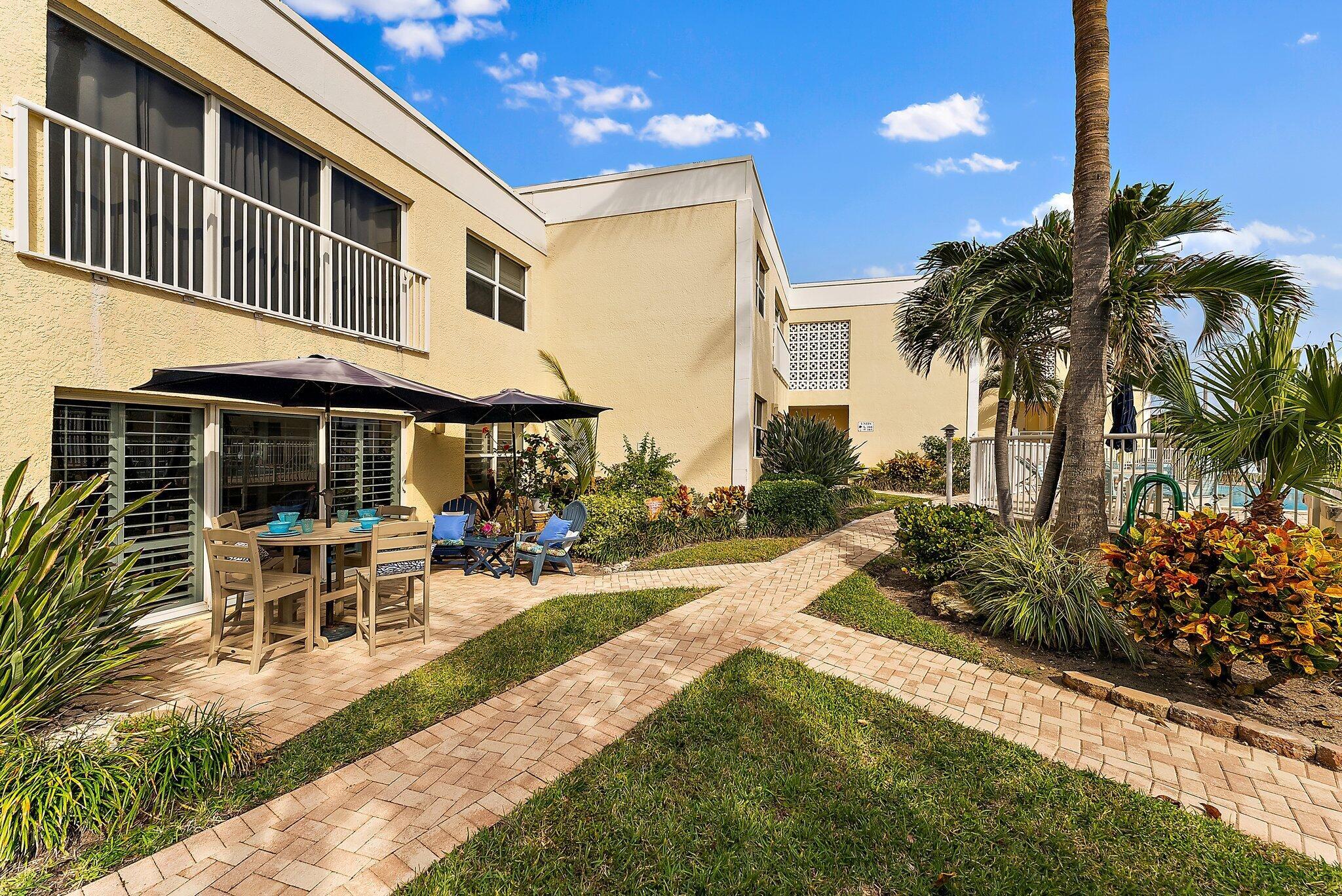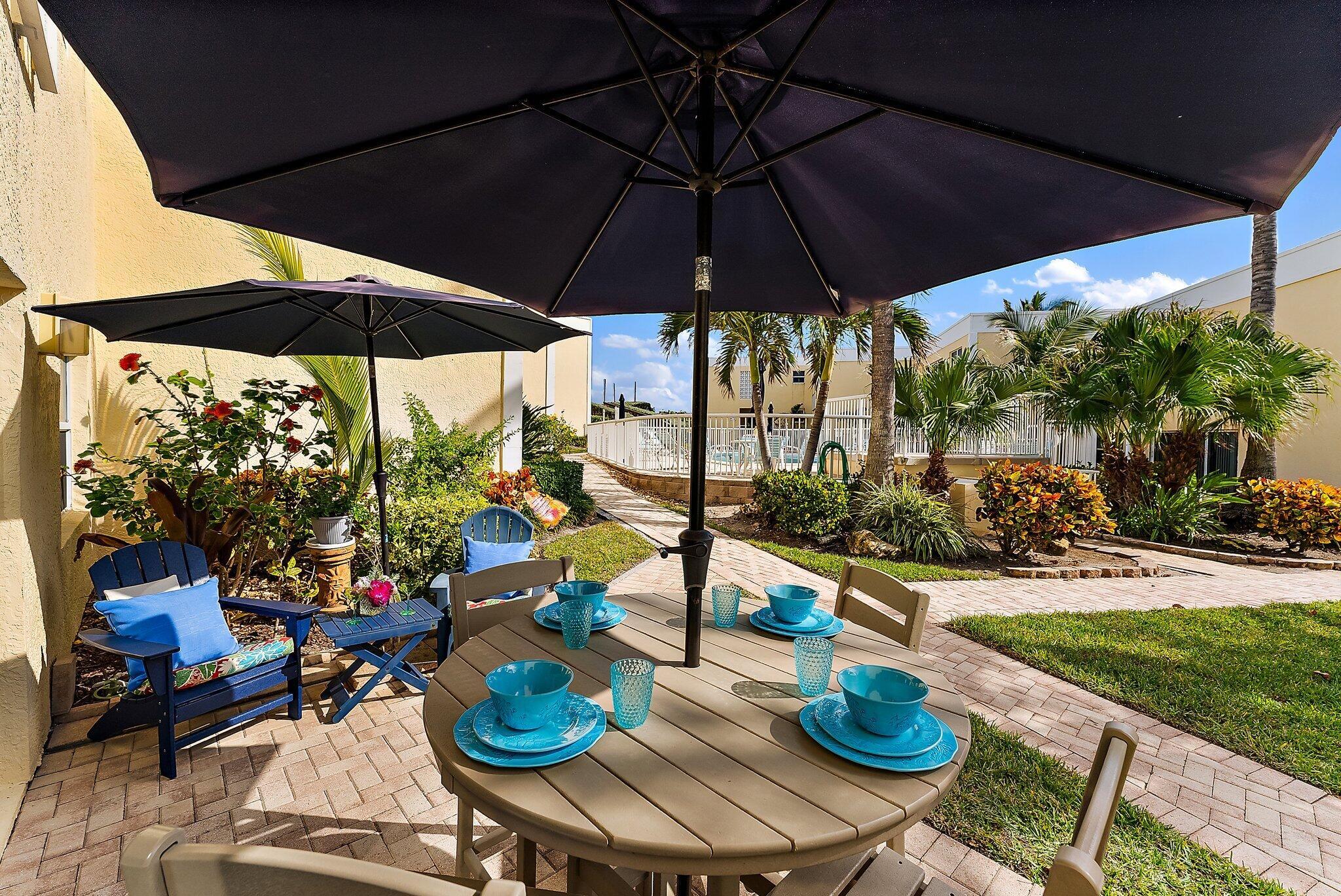 Stunning 2BR/2BA condo in the desirable oceanfront community of Seaside on Hutchinson Island! Enjoy private beach access, heated pool, and sundeck in a resort-style setting. Shows like a model home, it is impeccably updated with hurricane impact windows, plantation shutters, tile flooring, renovated baths, upgraded granite kitchen, new S/S appliances, custom lighting, stackable W/D, new water heater, and updated A/C. Spacious living and dining areas open to a sunny breakfast room and huge breakfast bar. Owner's suite offers a wall of closets and private bath; guest suite includes a full bath. Relax on the expansive brick paver patio overlooking the pool and garden. Concrete restoration completed 2022.