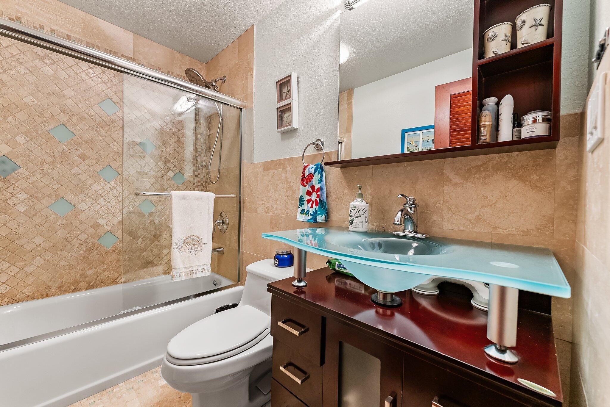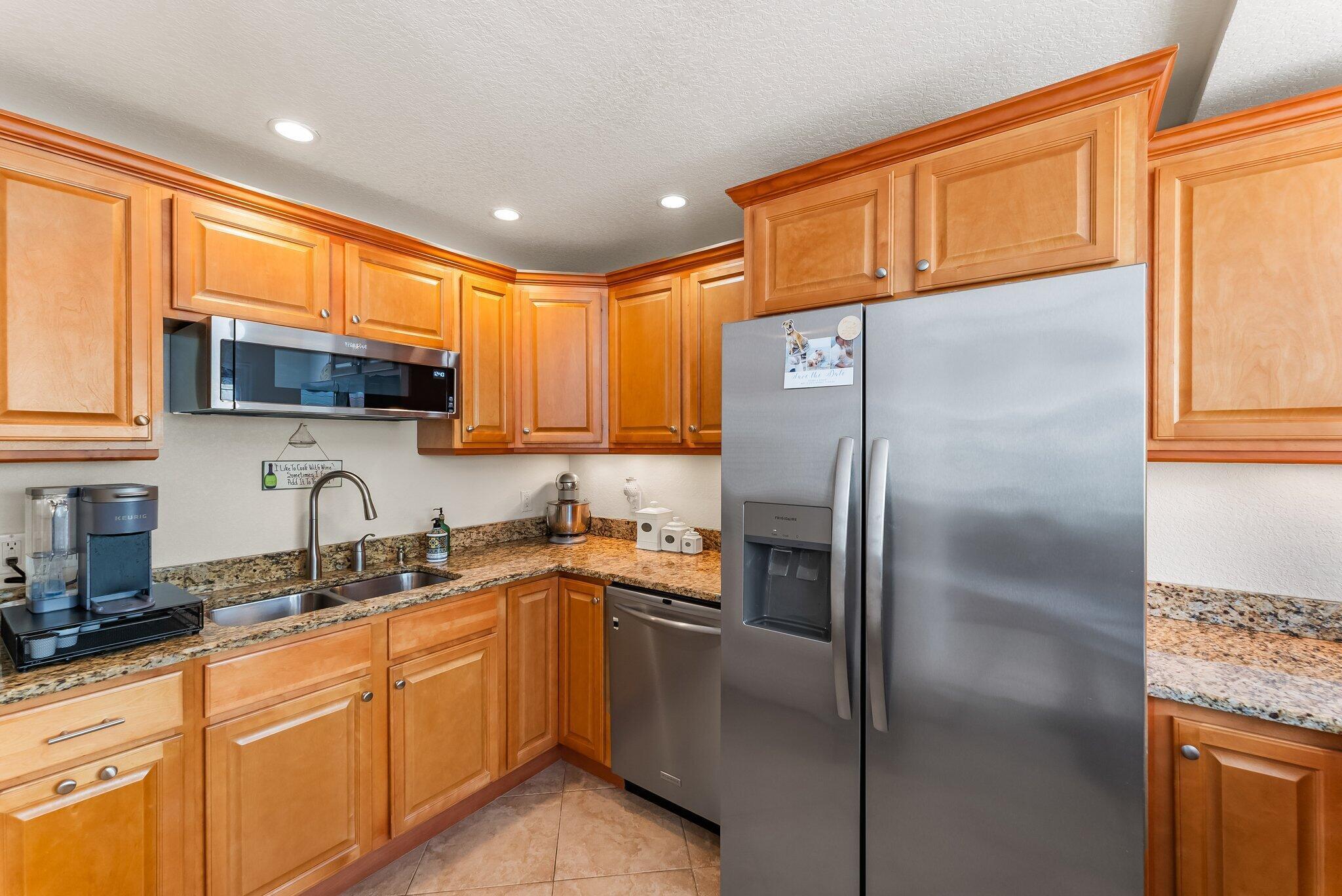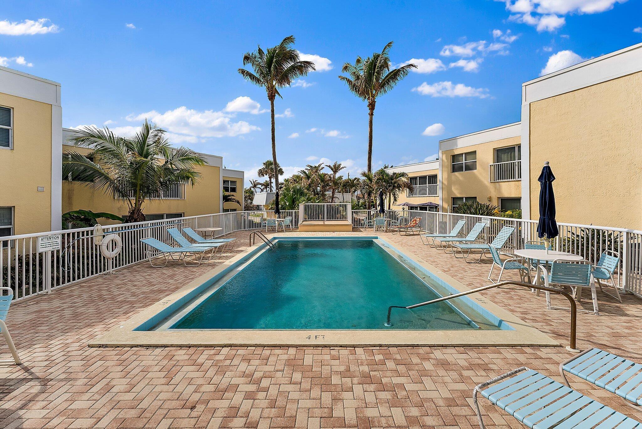 Stunning 2BR/2BA condo in the desirable oceanfront community of Seaside on Hutchinson Island! Enjoy private beach access, heated pool, and sundeck in a resort-style setting. Shows like a model home, it is impeccably updated with hurricane impact windows, plantation shutters, tile flooring, renovated baths, upgraded granite kitchen, new S/S appliances, custom lighting, stackable W/D, new water heater, and updated A/C. Spacious living and dining areas open to a sunny breakfast room and huge breakfast bar. Owner's suite offers a wall of closets and private bath; guest suite includes a full bath. Relax on the expansive brick paver patio overlooking the pool and garden. Concrete restoration completed 2022.