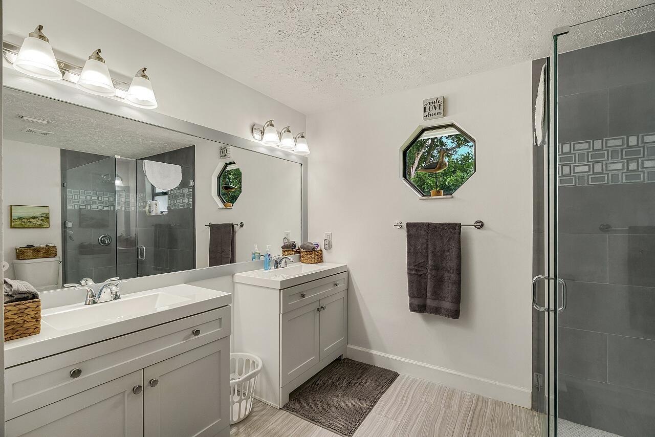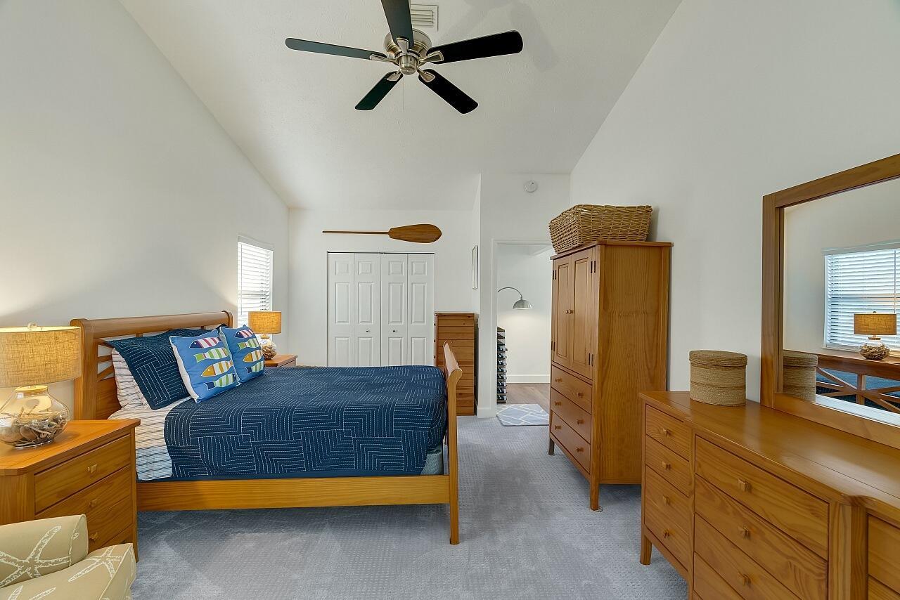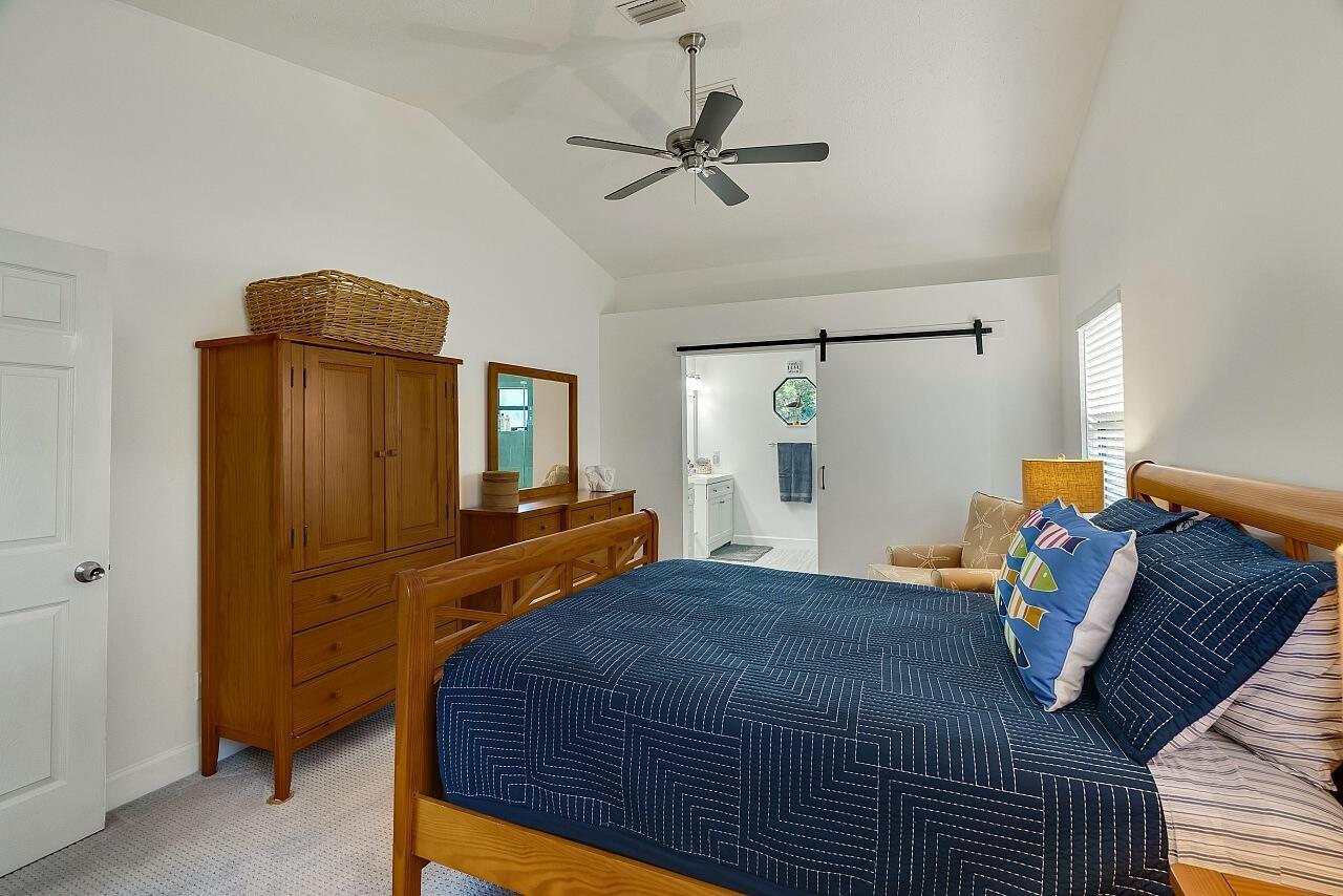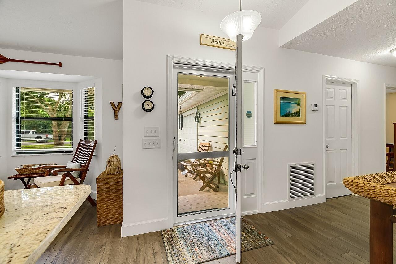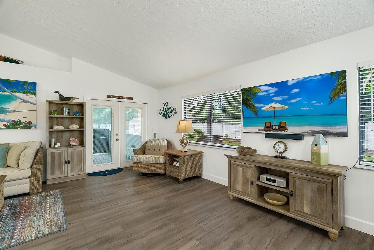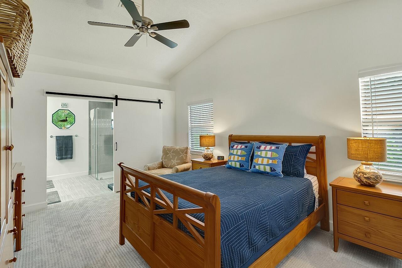 Experience Florida living at its finest in this 3-bed, 2-bath coastal dream home. Upgraded from top to bottom with a desirable split floor plan & vaulted ceilings. Open layout creates a bright, airy feel. The modern kitchen has crisp white cabinetry, granite counters, bar seating with massive island & stainless steel appliances. French doors open to a screened patio, perfect for relaxing or entertaining in the backyard. The primary suite features dual vanities, vaulted ceiling, a huge tiled full glass shower & built in closet shelving. 2020 standing seam metal roof, 2020 water heater & 2013 AC