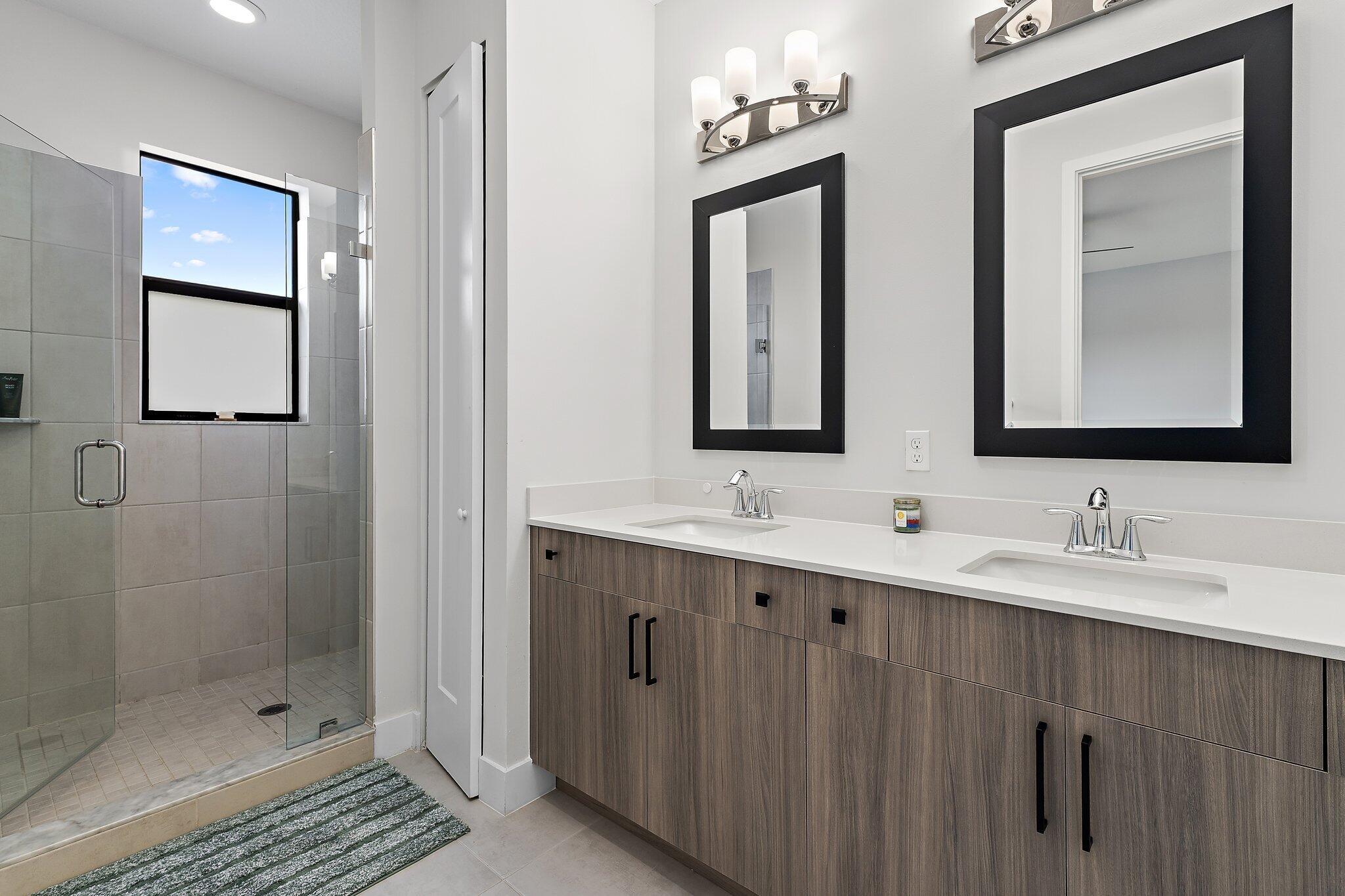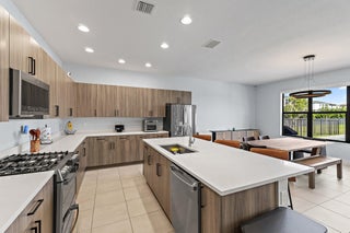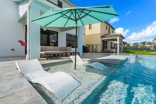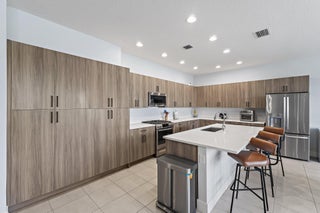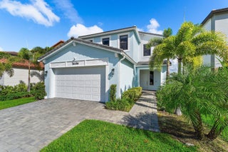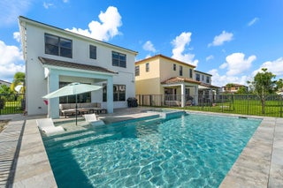 Newly constructed in 2023- this 4 bedroom, 3.5 bath, 2 car garage CBS home is designed for both style and comfort. Inside, the open-concept design features tile flooring throughout, a gourmet kitchen with upgraded cabinetry, farmhouse sink, quartz countertops, and a gas range. A private guest suite with full bath is conveniently located on the first floor, while the upstairs hosts the primary suite, two additional bedrooms, 2 full baths, oversized loft, custom bedroom closet built-ins, and laundry room with mud sink. Step outside to your own private oasis featuring a brand-new oversized saltwater pool with heated infinity spa, and splash pad, all overlooking serene lake views. The fully fenced yard and spacious covered patio create the perfect space for outdoor entertaining.Completed with full impact windows and doors for storm protection, along with a Ring camera system for added security. Situated in the heart of Westlake, Palm Beach County's newest and fastest-growing city, this home offers not just luxury but also an unmatched lifestyle. Residents enjoy resort style amenities, including lagoon style pool & splash pad, cabanas, outdoor concert pavilion, adults only pool, Sky Cove gym, Basketball courts, playground, dog park & BMX park.