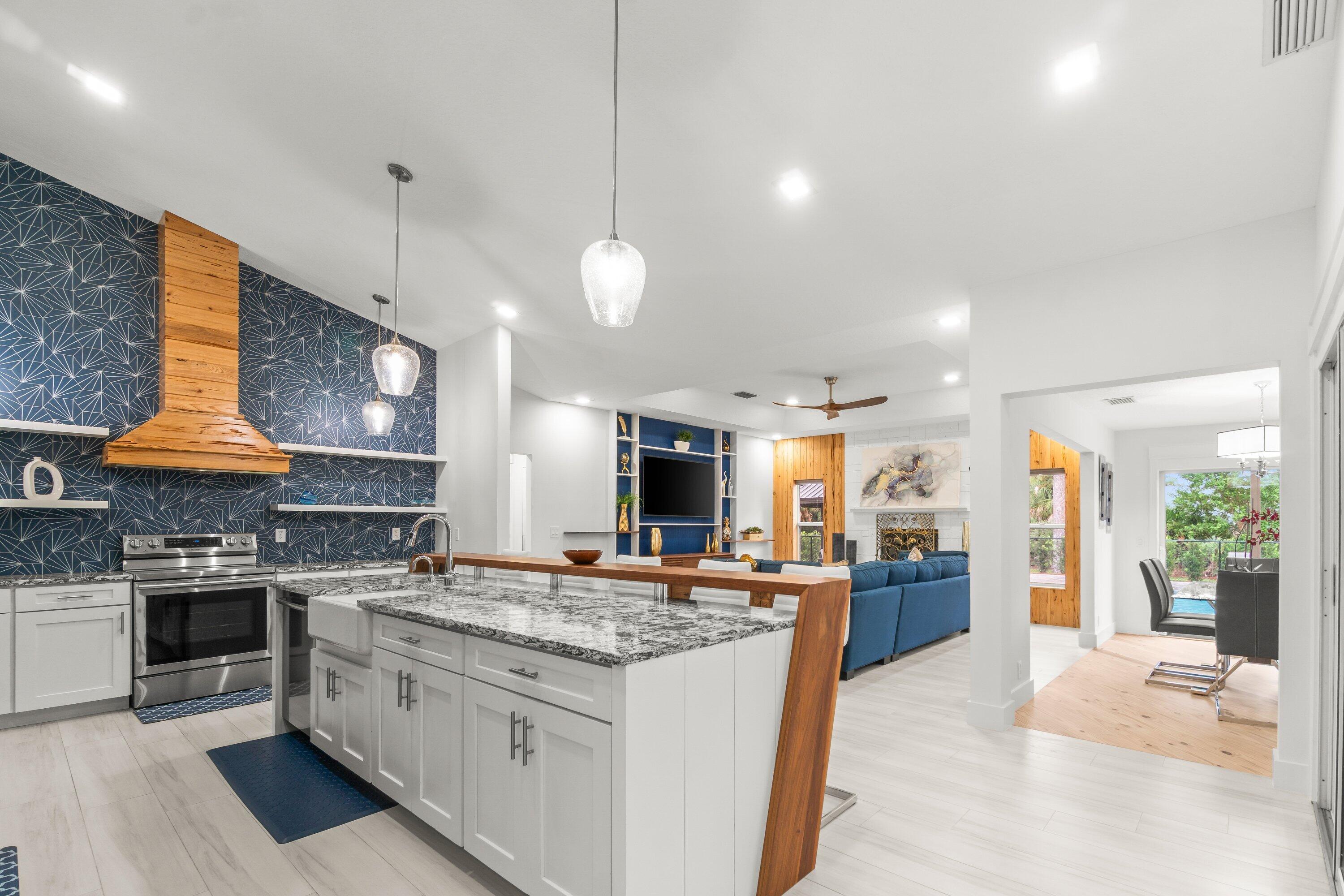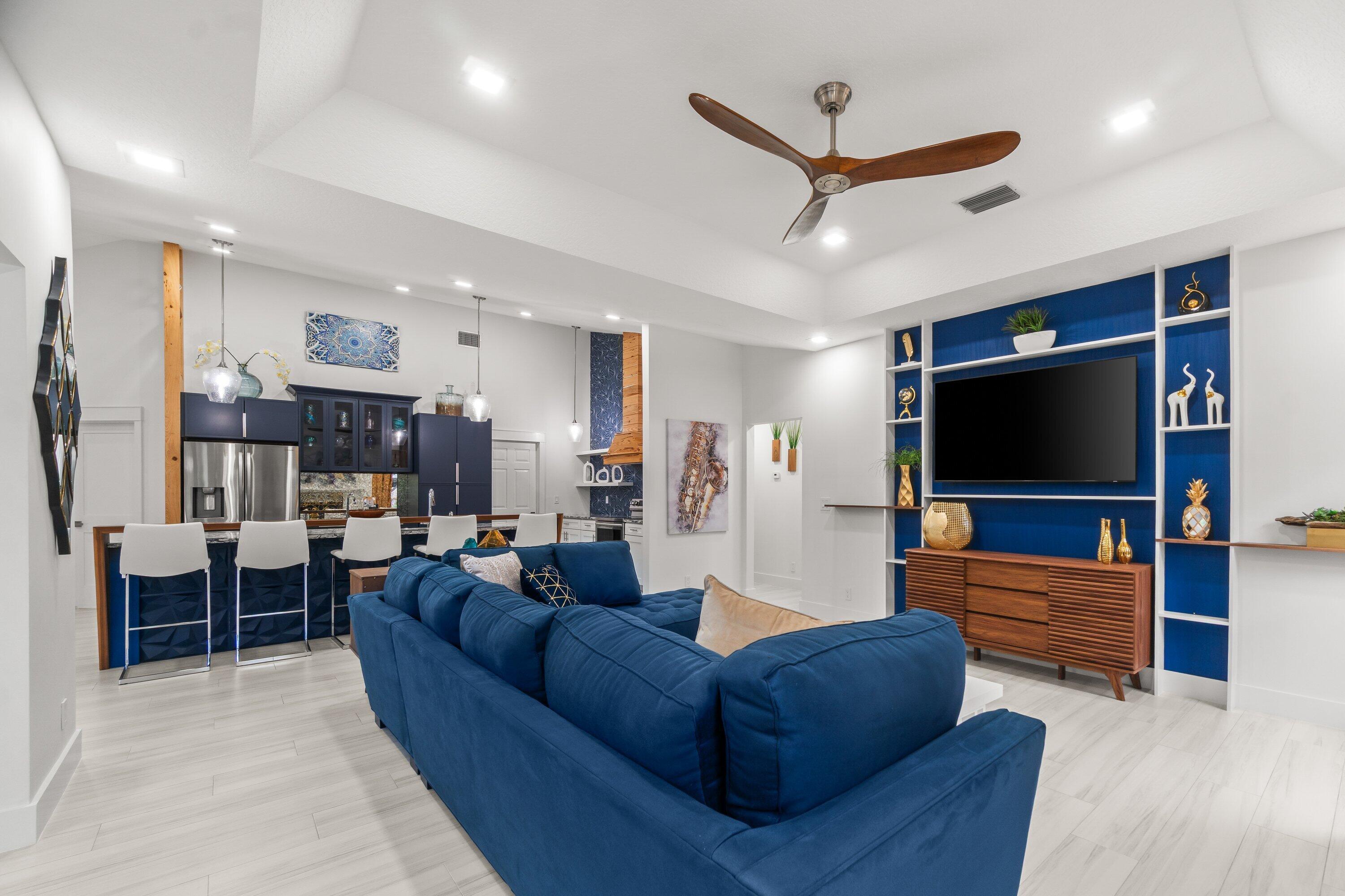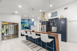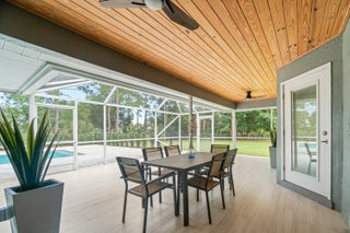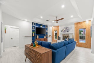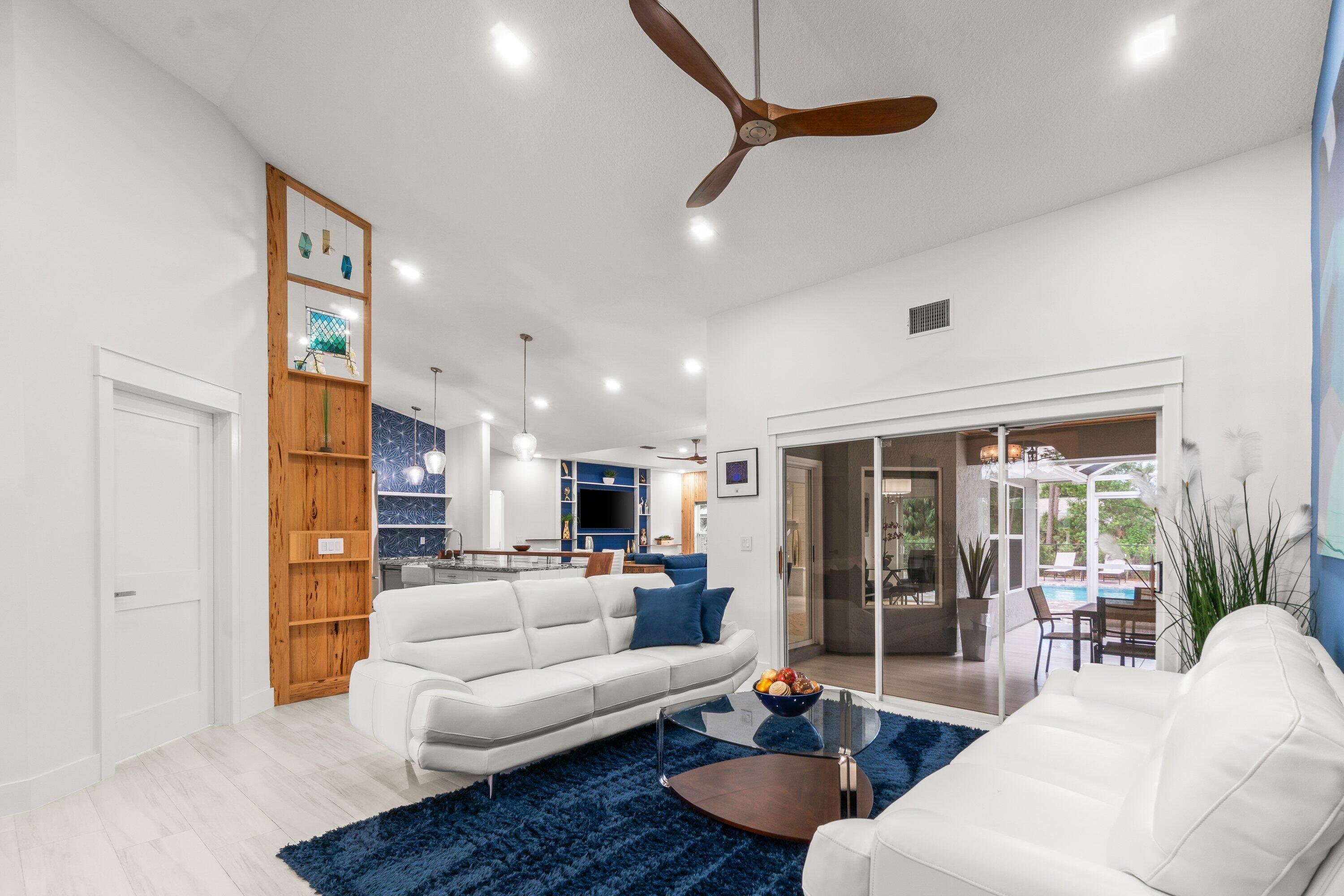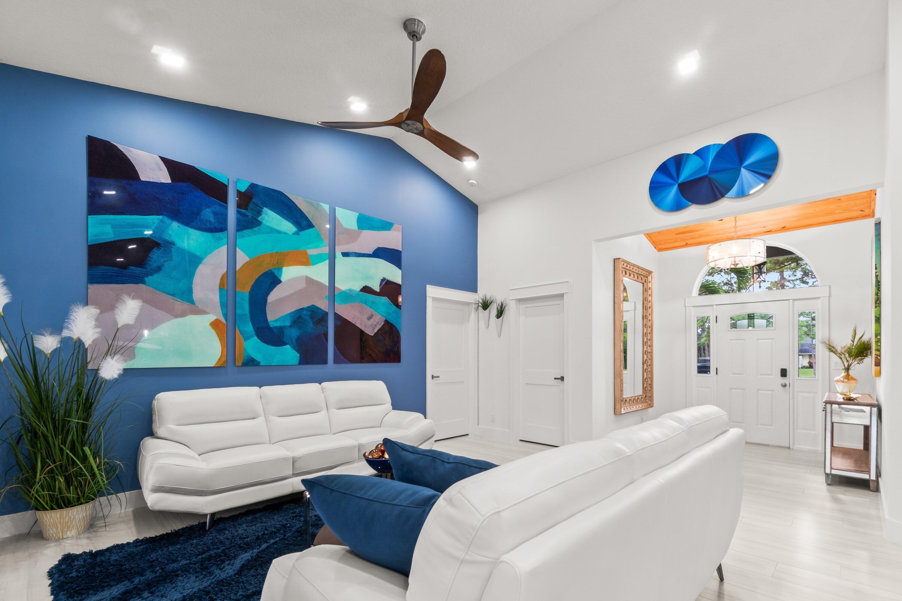 Palm Beach Country Estates Where Elegance Meets Coastal Living Positioned on a paved road in one of Northern Palm Beach County's coveted communities on a 1 acer lot , this completely remodeled estate blends refined design with flexible living. A sweeping 5,800-sq-ft driveway leads to both the main residence and a huge 1075sq ft CBS-built detached building--engineered to hold at least six cars. Perfect as a collector's garage, workshop, or future guest house, this space offers unmatched versatility. Inside, the residence shines with sunlit, open interiors. A formal living room welcomes guests, while the gourmet kitchen--quartz countertops, porcelain farmhouse sink, wood-accent island, and custom cabinetry--anchors the home. Just beyond, the family room with fireplace and the formal diningarea overlook the new resort-style saltwater pool. The master suite is a private retreat with custom blinds, dual quartz vanities, an oversized shower, and jacuzzi tub. Seamless indoor-outdoor living is at the forefront, with a covered, screened patio finished in faux-wood tile and a backyard oasis featuring pool, gazebo, and ample entertaining space. Additional highlights: new roof (2019), partial impact windows, new saltwater pool (2025), extended driveway (2023), and CBS outbuilding for cars, storage, or customization. All of this just minute from fine dining, shopping, golf, and Palm Beach Estate is just 6 miles away from Palm Beach's world-class beaches.