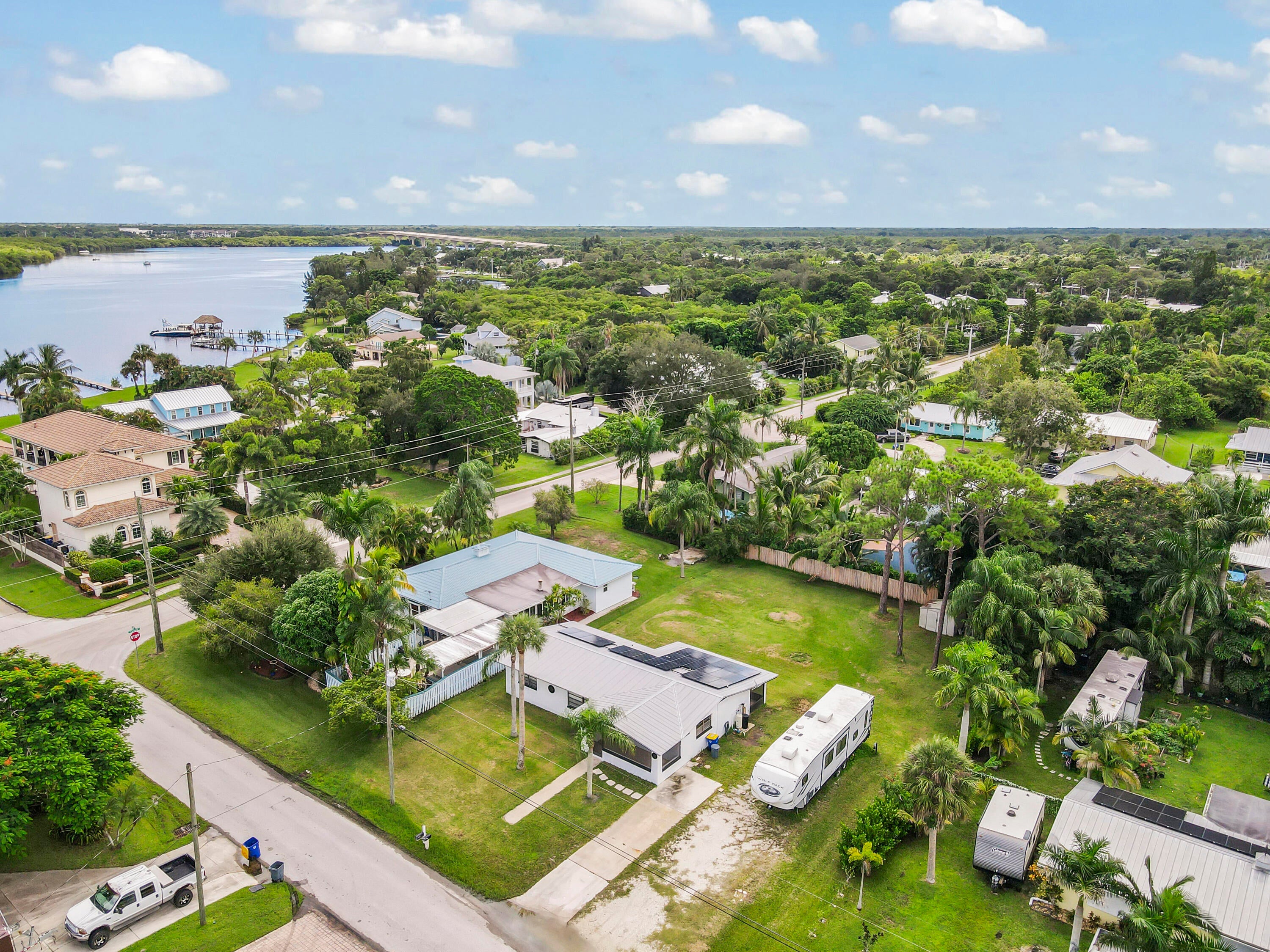 This charming residence combines comfort, convenience, and efficiency in a desirable location. You'll be close to Charlie Leighton Park, less than a mile away, with easy access to the St. Lucie River. The park has a boat launch. Set on a spacious .326-acre lot, this property offers plenty of room for all your toys. The large backyard provides possibilities for entertaining, gardening, or relaxing in your own private space. Inside, you'll find an open-concept layout enhanced with crown molding, a modern kitchen with stainless steel appliances, and comfortable living areas filled with natural light. The home features 3 bedrooms and 2 full baths.Best of all, the home is equipped with solar panels, keeping the seller's power bill below $25, a tremendous saving on energy costs! With no HOA restrictions, unbeatable energy efficiency, and a location close to recreation and the water, this home is a rare find that won't last long.