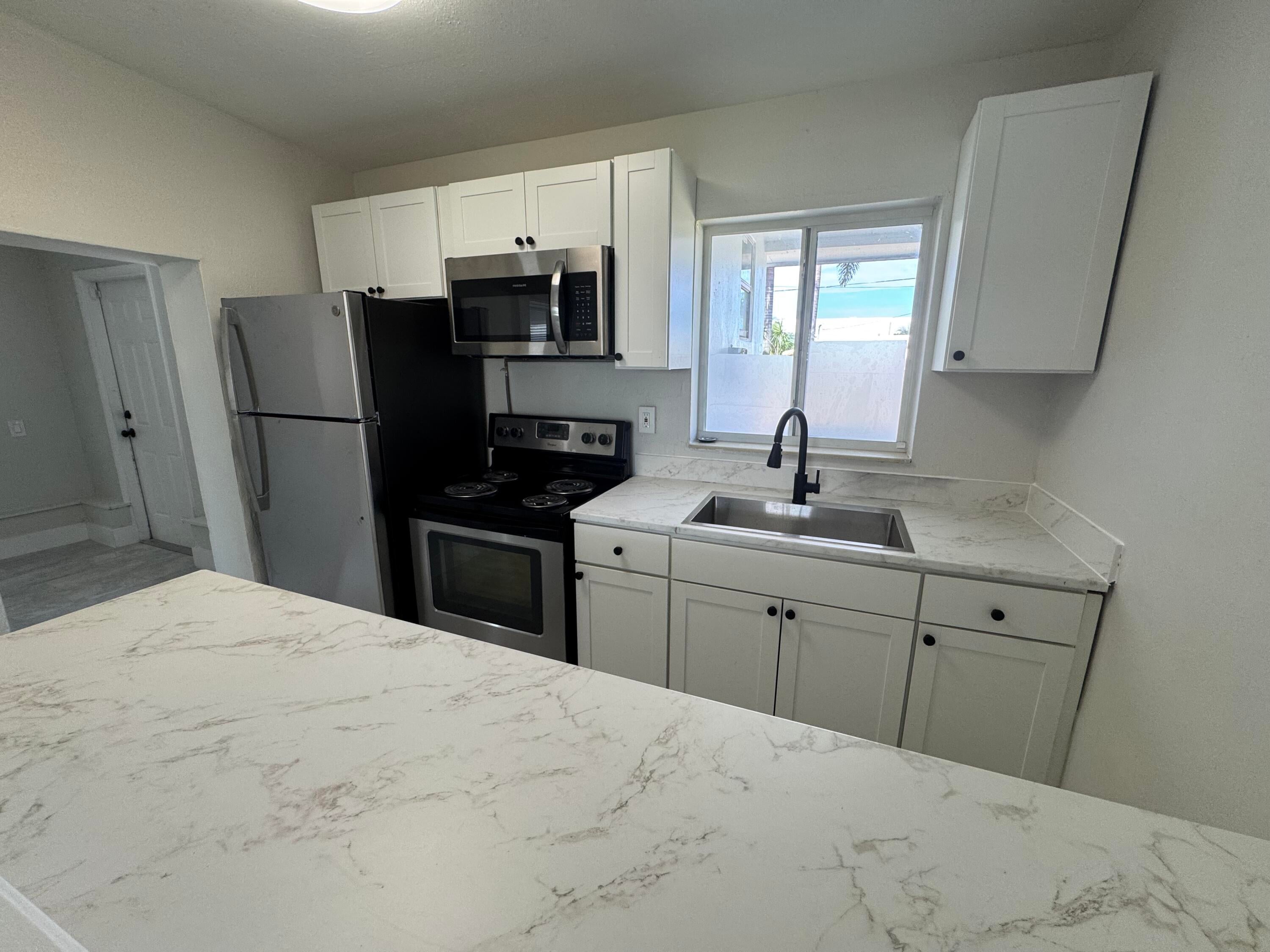 Cozy 3/Bedroom 1/Bathroom house in Lantana with a modern design. New appliances, all tile flooring. Ice cold central a/c. Pet friendly, Property will be delivered with fenced back yard and new grass in yard. Local landlord. Lawn care included in rent. All information provided is deemed reliable but is not guaranteed and should be independently verified.