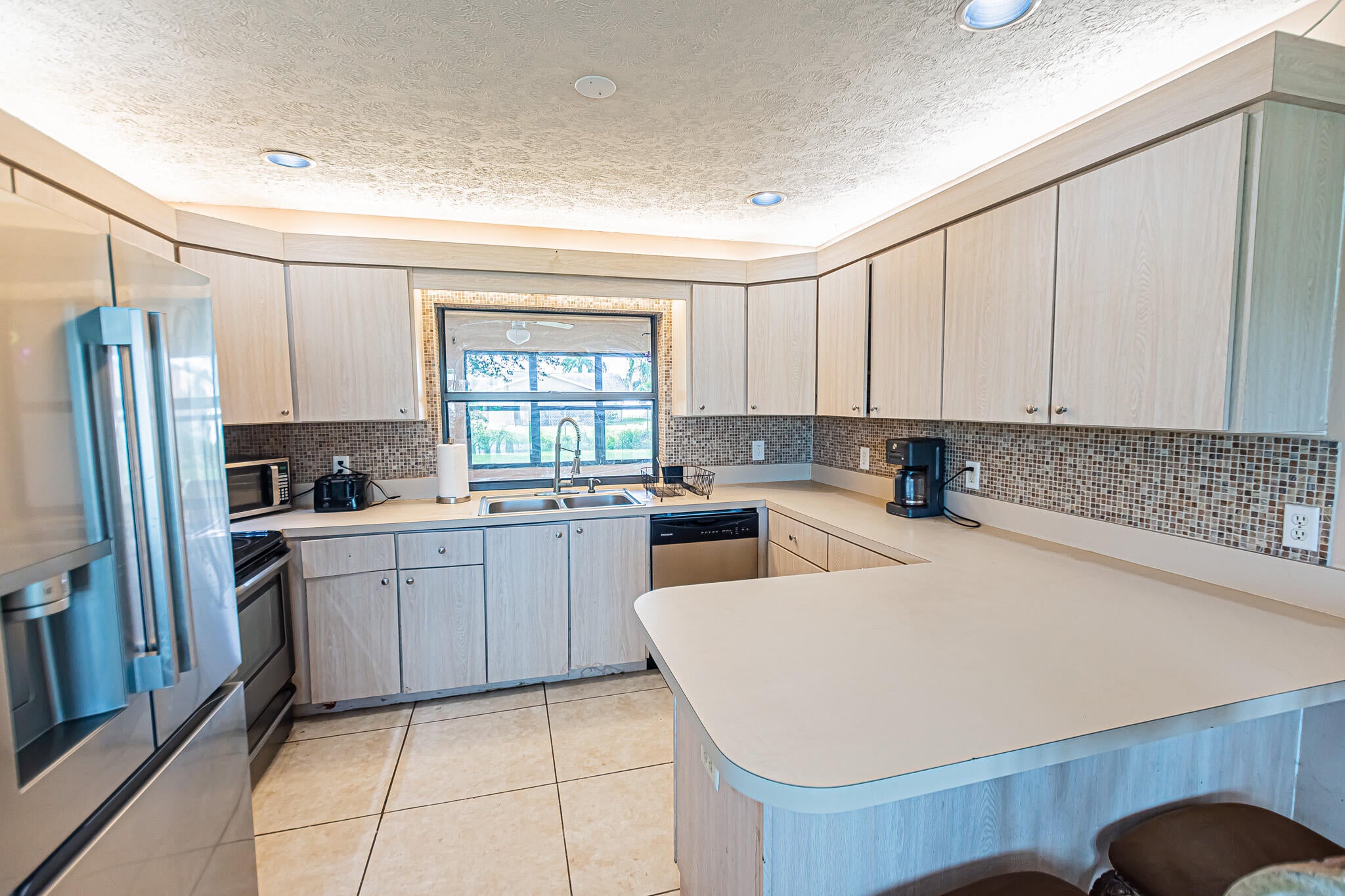Step into this bright 2/2/2 inviting home featuring a skylight that fills the space with natural light and a modern kitchen with stainless steel appliances. Relax in the enclosed lanai or entertain outdoors on the open patio, all within a fenced yard with shed perfect for pets or kids. Well fed irrigation system. Enjoy added security and peace of mind with impact glass windows and roll-down shutters, security camera system plus a new 2025 roof for worry-free living.