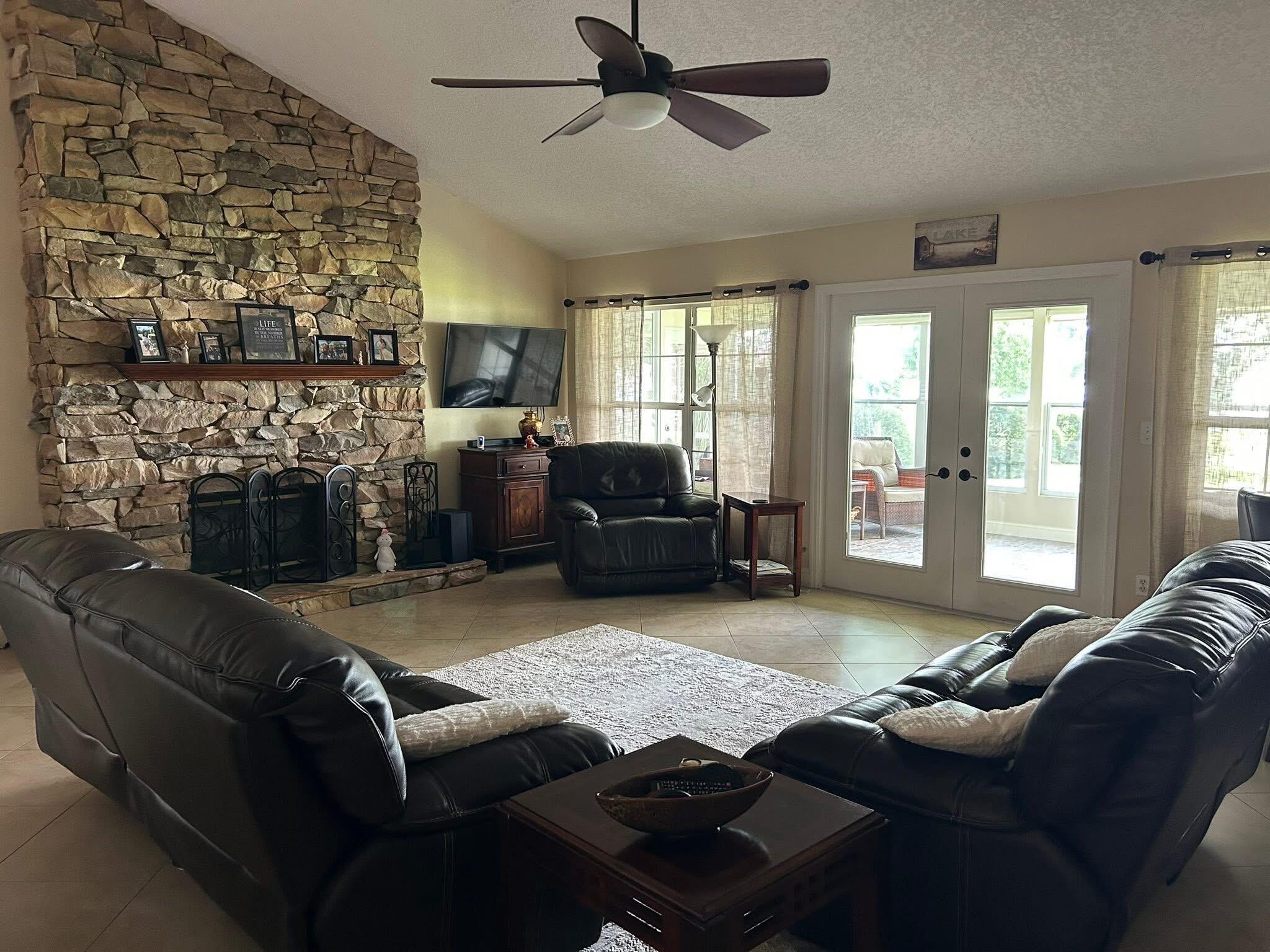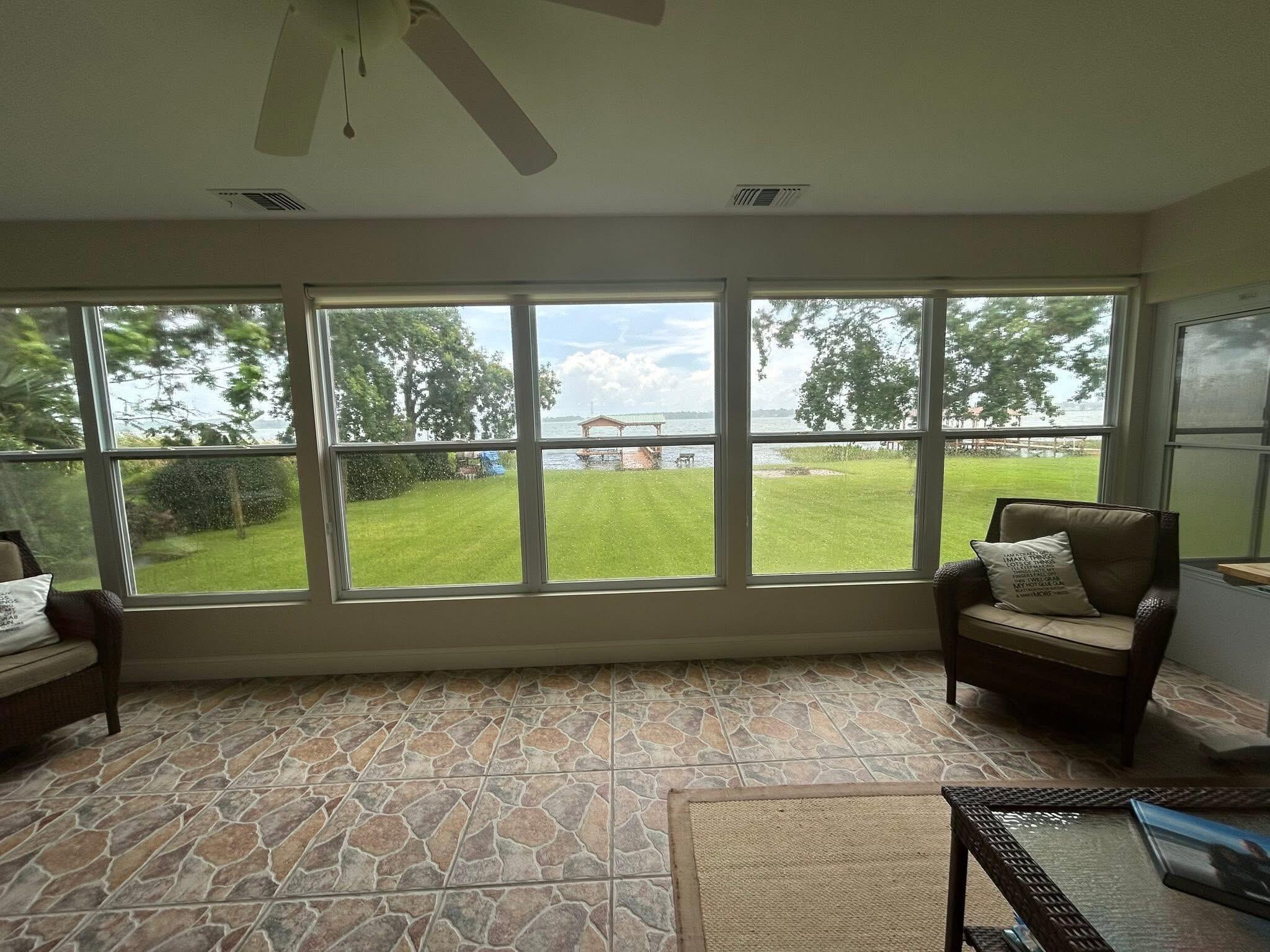 Lakefront living at its finest! This 3-bedroom, 2-bath home offers stunning water views on the highly sought after, Lake Griffin. Enjoy your private dock, perfect for a boat or 2 jet skis, and relax in the spa room featuring a hot tub. Air conditioned sun room for panoramic views and a spacious living room boasts a cozy wood-burning fireplace, creating the ideal gathering space. The home's open layout flows seamlessly, offering both comfort and functionality for everyday living or entertaining. Step outside to take in breathtaking sunsets over the lake, or spend the day boating, fishing, and soaking in Florida's beauty. Enjoy a custom made fire pit to roast marshmallows in the sunset! Located fairly close to the Villages, shopping, and dining!