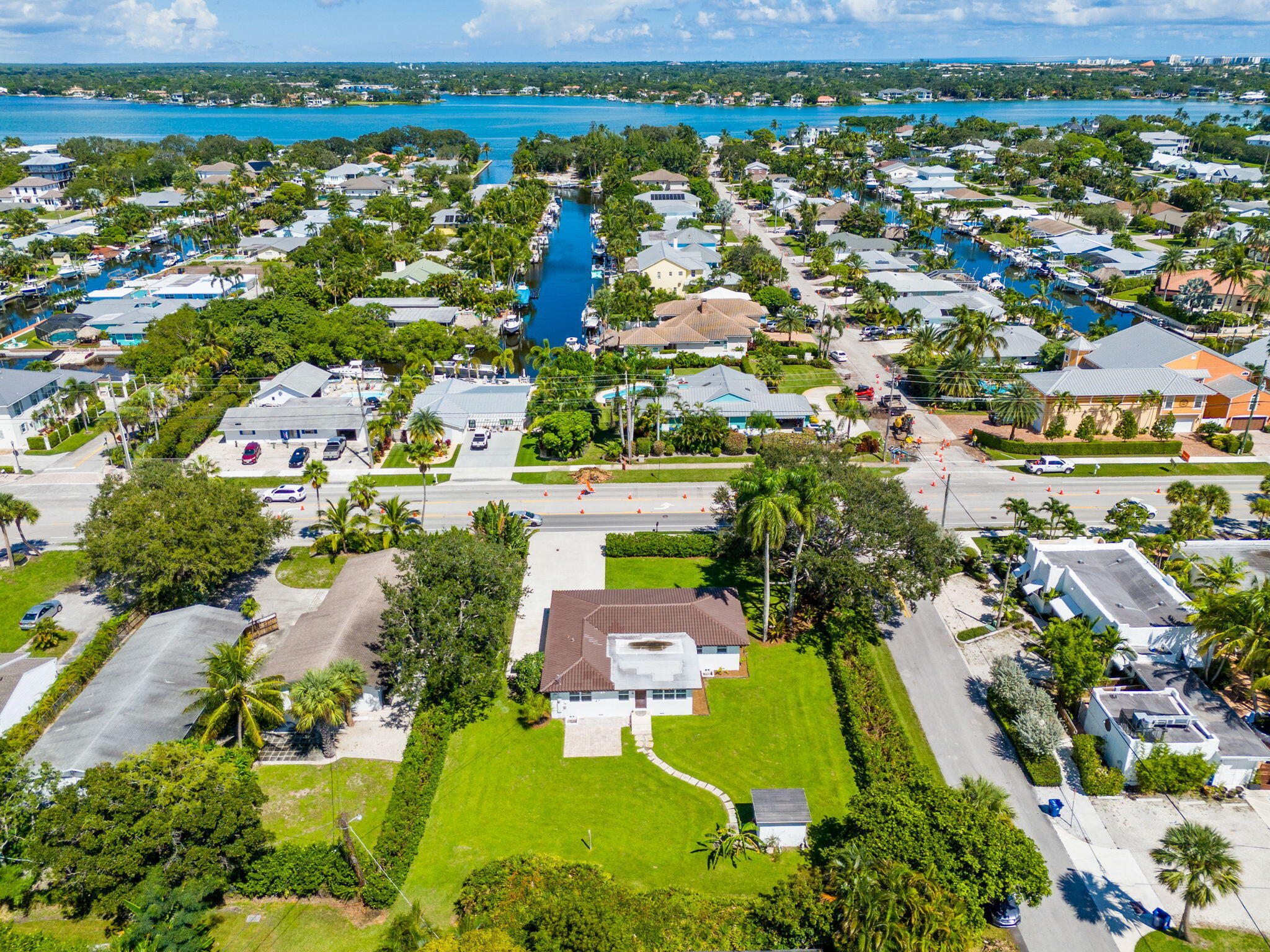 Corner DOUBLE lot in East Jupiter location. Approx 17,200 square feet-.3938 acreNext to Historic Sims Restaurant. Single family home sits on Lot 1 and also on Lot 2. Applications are acceptable can be made to Town of Jupiter Planning Zoning Building to permit one single family home per lot so that two homes can be constructed. Alternatively, loads of space for expansion of existing homePrice is for LAND VALUE .