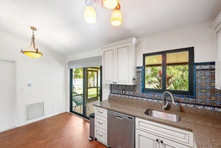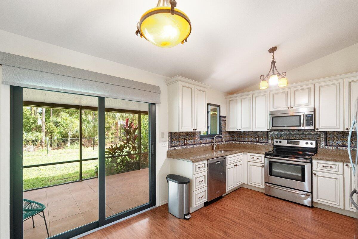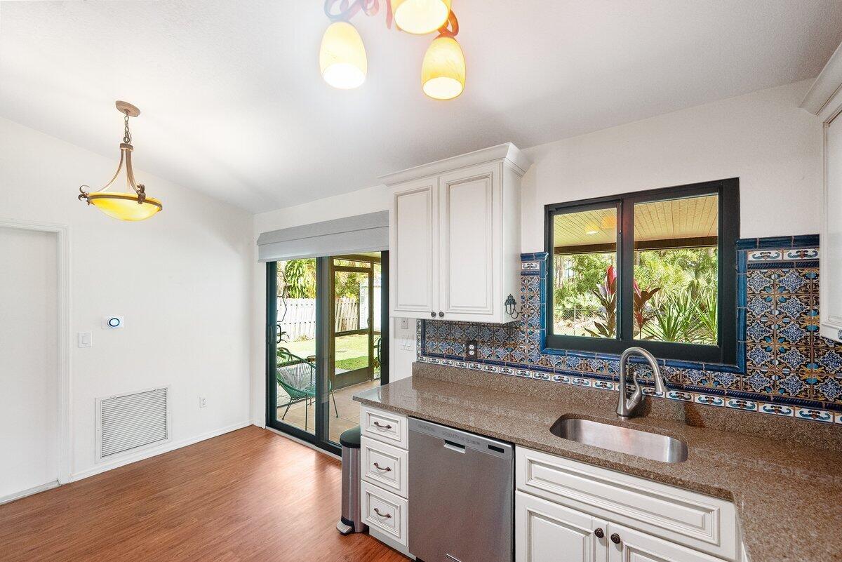 This move-in ready home has been well maintained and beautifully updated. Gorgeous granite countertops in the kitchen and in both bathrooms. Kitchen has been updated with a stunning backsplash, fine cabinetry and stainless steel appliances. Vinyl floors throughout the entire home. This home also comes with upgrades such as a 2017 tile roof, COMPLETE IMPACT GLASS WINDOWS AND DOORS, and a Generac generator installed in 2021. Plenty of room for entertaining with the large 20x14 living room and TWO screened porches. 2022 fenced yard is private as it backs up to the woods and has plenty of space to add a swimming pool. Quiet street with a neighborhood park just one block away with volleyball, basketball, playground and baseball. NO HOA FEE!!! Schedule your tour today before this one is sold!