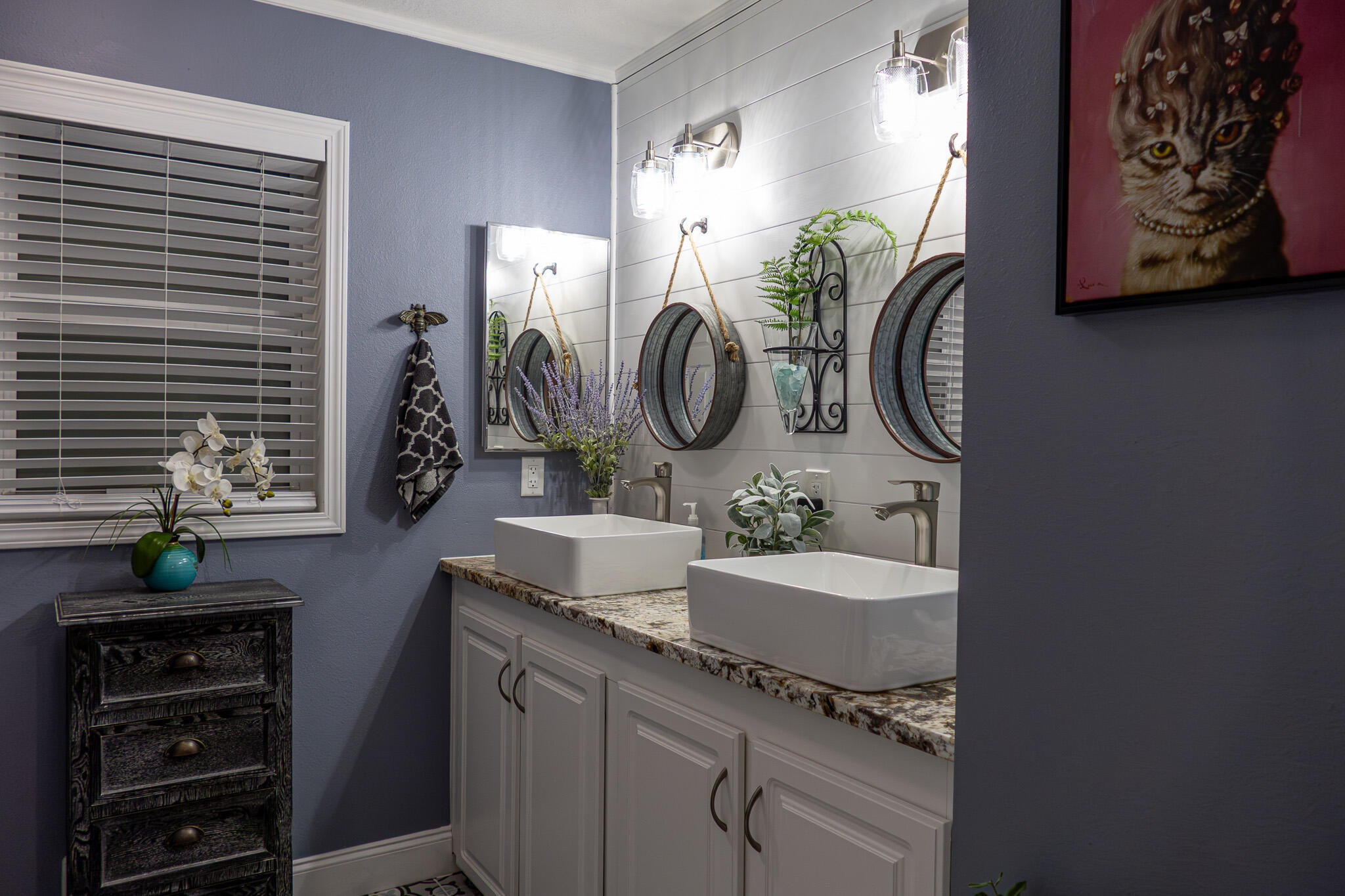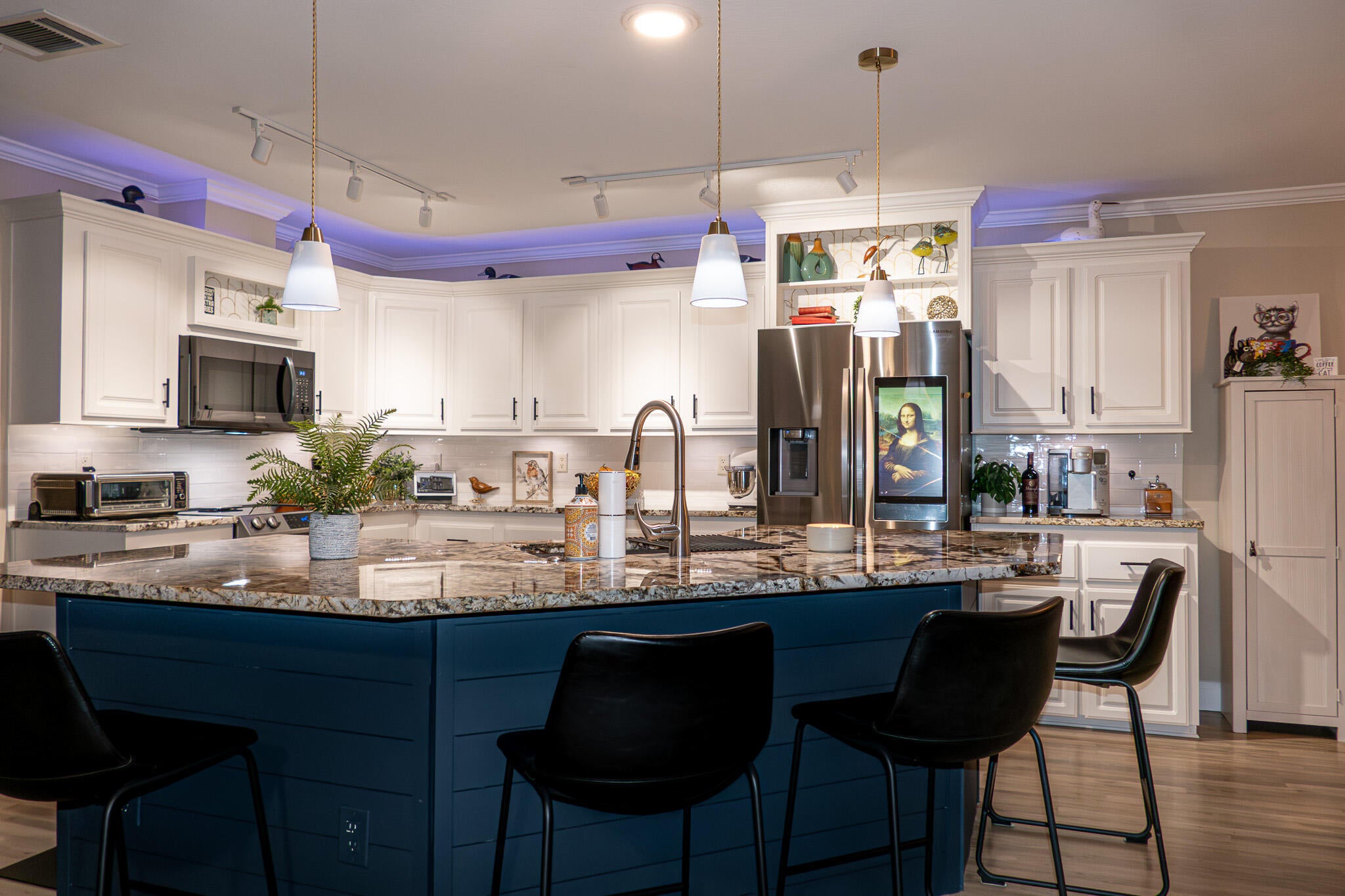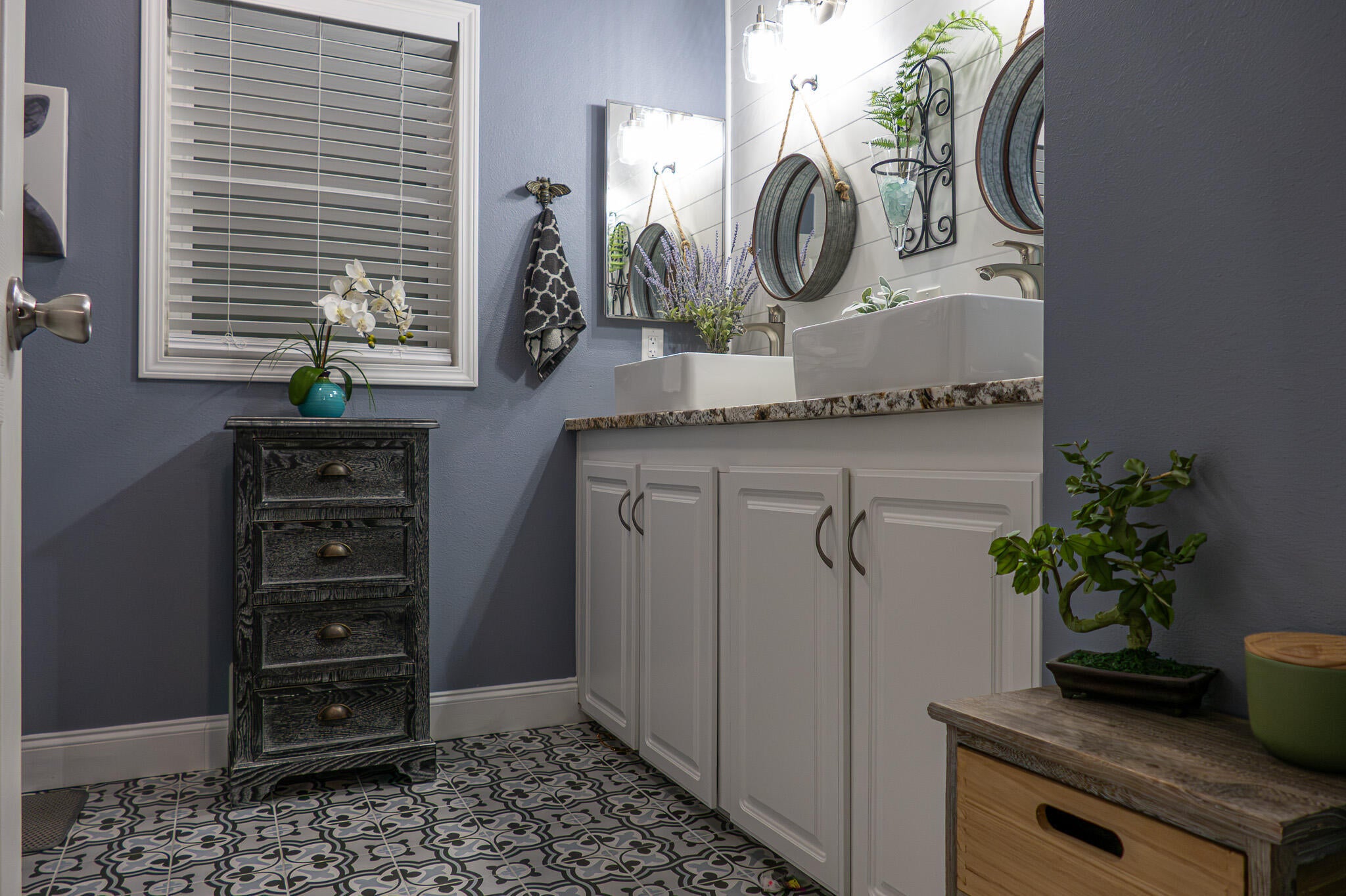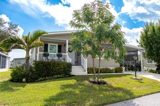 Updated 2-bd, 2-ba home, w/hurricane impact windows throughout. Updated in 2021, w/smart technology. Kitchen features stunning granite countertops, tile backsplash, SS smart appliances w/refrigerator & access to your phone to look inside. Kitchen flows into dining & living areas, for relaxing or hosting. Primary suite offers large walk-in closet & remodeled bathroom w/dual vessel sinks, granite counters, glass-enclosed shower & textured 3D tile for a spa-like feel. Second bathroom w/granite countertop & unique vessel sink. Lovely yard with colorful flowers & interesting trees, roomy 9.5' x 12' shed for extra storage. Excellent location minutes from downtown Jensen and beaches! Pinelake Village is a 55+ community w/large clubhouse, pool, spa, fitness center, billiard room & more!