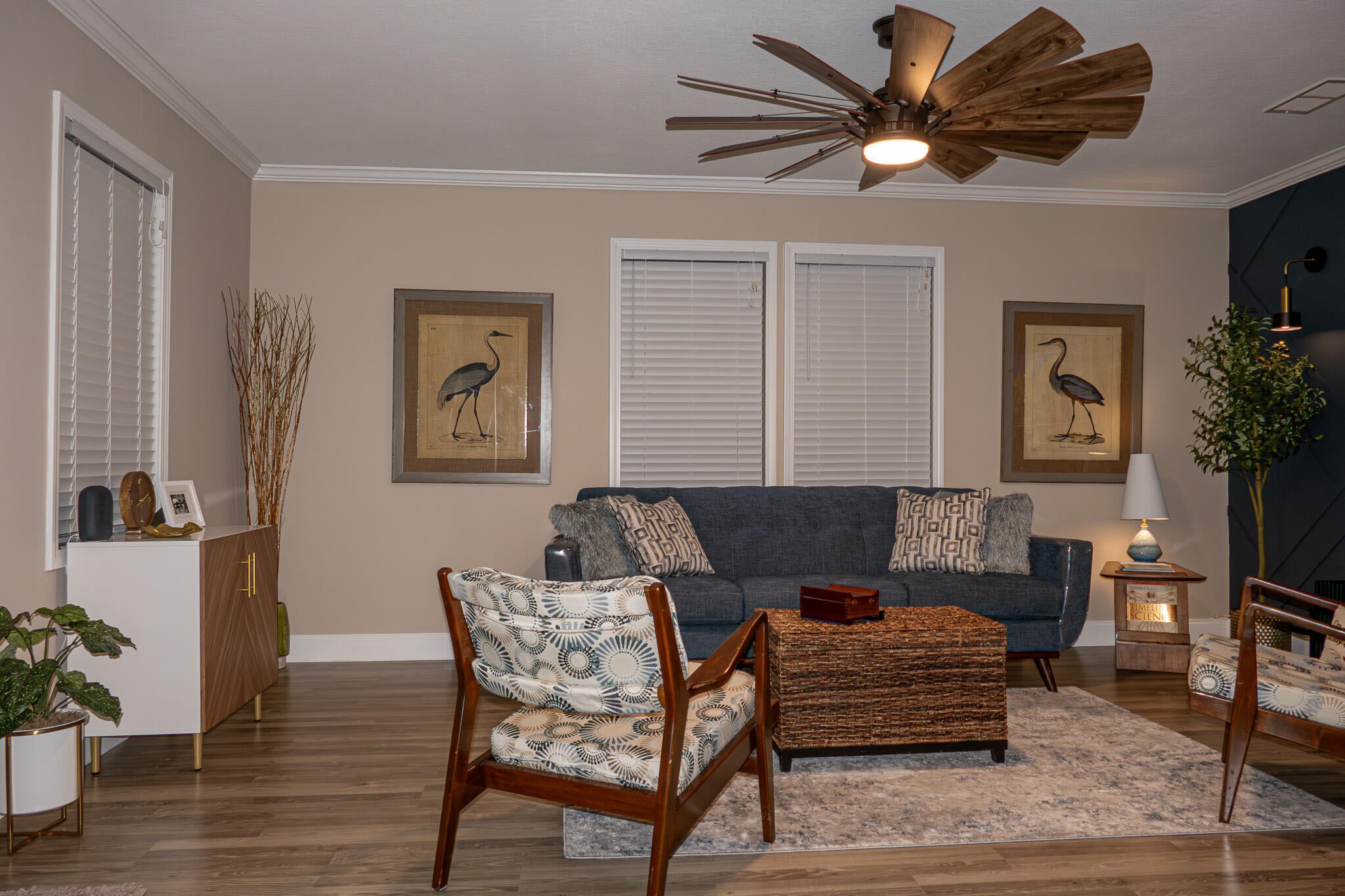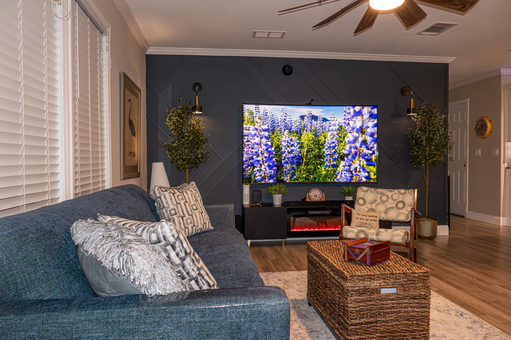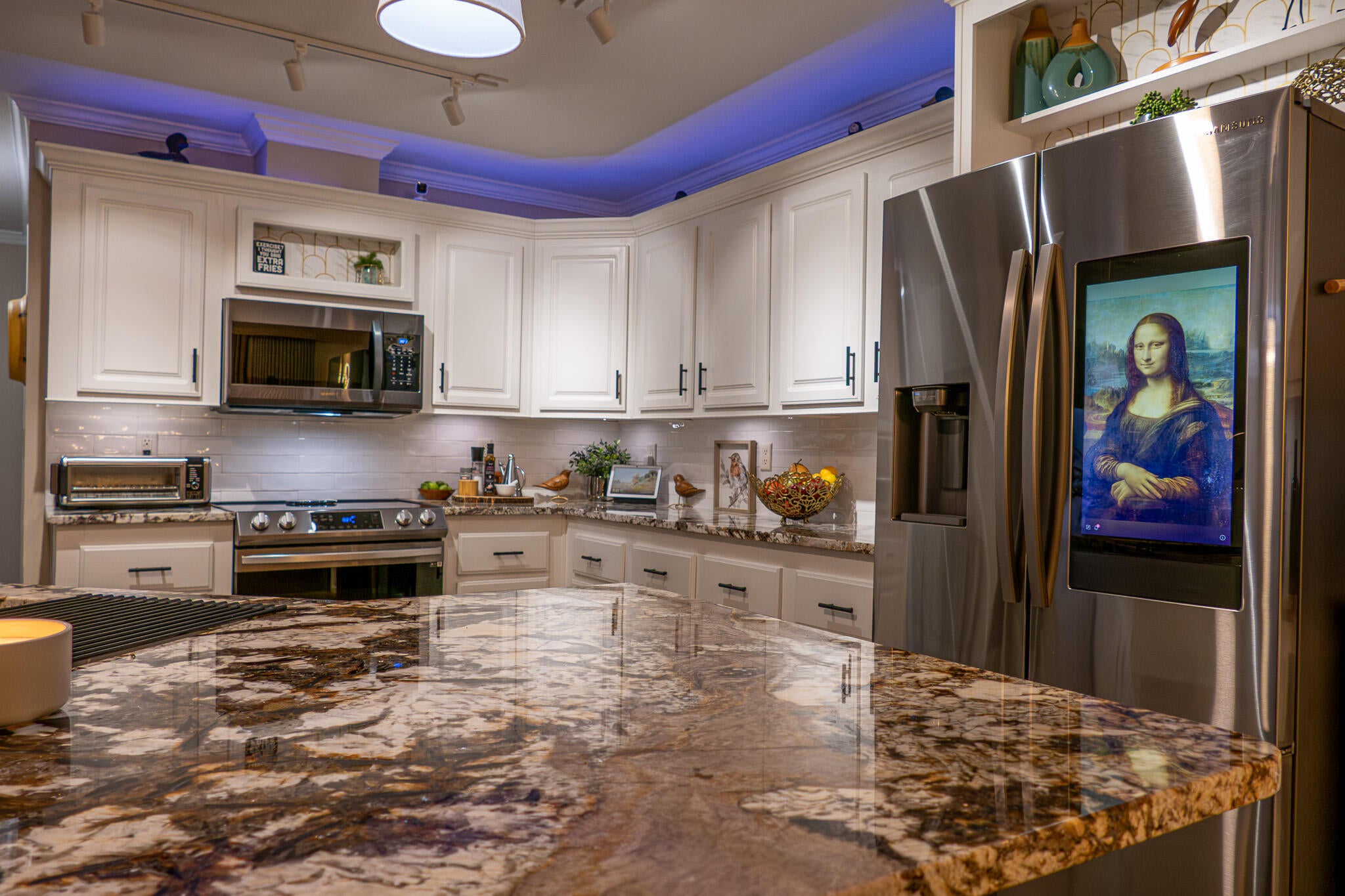 Updated 2-bd, 2-ba home, w/hurricane impact windows throughout. Updated in 2021, w/smart technology. Kitchen features stunning granite countertops, tile backsplash, SS smart appliances w/refrigerator & access to your phone to look inside. Kitchen flows into dining & living areas, for relaxing or hosting. Primary suite offers large walk-in closet & remodeled bathroom w/dual vessel sinks, granite counters, glass-enclosed shower & textured 3D tile for a spa-like feel. Second bathroom w/granite countertop & unique vessel sink. Lovely yard with colorful flowers & interesting trees, roomy 9.5' x 12' shed for extra storage. Excellent location minutes from downtown Jensen and beaches! Pinelake Village is a 55+ community w/large clubhouse, pool, spa, fitness center, billiard room & more!