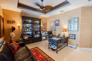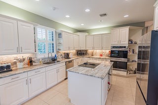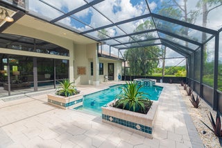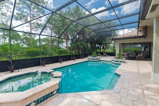 PGA Village - Pinehurst! Indulge in refined elegance with this 3BR/3BA/2.5CG estate pool home plus den/office, perfectly situated on the 2nd green of the iconic PGA Ryder Course. Showcasing soaring 18' coffered ceilings, rich wood & designer tile floors, crown molding & plantation shutters, this home exudes timeless luxury. The gourmet kitchen is a showpiece with granite counters, handcrafted cabinetry, a vented cooktop & spacious walk-in pantry. Lavishly updated baths provide spa-like serenity. Step outside to a private retreat with a heated pool, bubbling spa & sweeping golf views. Extras include Aqualink system, whole-house reverse osmosis & backup generator. A golfer's dream & entertainer's paradise! Lease Option Available !