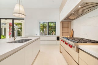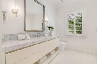 Situated on an oversized 13,425 sq. foot lot with a private back alley entrance to the properties three car garage, rests the stunning contemporary new construction home featuring 6 bedrooms, 7 full bathrooms and two 1/2 bathrooms. Architecture by Dailey Janssen, designed by Hive Palm Beach and built by the Cury Group, this luxurious designer made home is turnkey. Hosting the best of the best, the kitchen incorporates a 48'' Wolf 8-burner gas range, a Bosch dishwasher, a Subzero fridge/freezer, and fixtures by Waterworks. Adjacent to the magnificent kitchen and great room is a thoughtful butler's pantry with quartzite countertops, an additional Bosch dishwasher and Subzero fridge & freezer drawers. This home incorporates two staircases each leading you to 2 separate guest bedrooms.Above the primary bedroom hosts 2 of the en-suite bedrooms while the other two guest bedrooms are uber private with a designated staircase above the living room overlooking the pool. With views of the lush landscaping, swimming pool and cabana from just about every angle, this home and its grounds are ideal for entertaining guests while also being perfectly proportioned to feel cozy and comfortable alone at home with family/ friends on the sofa. Close to area beaches, Worth Avenue shopping, A-rated restaurants, and top tier schools.