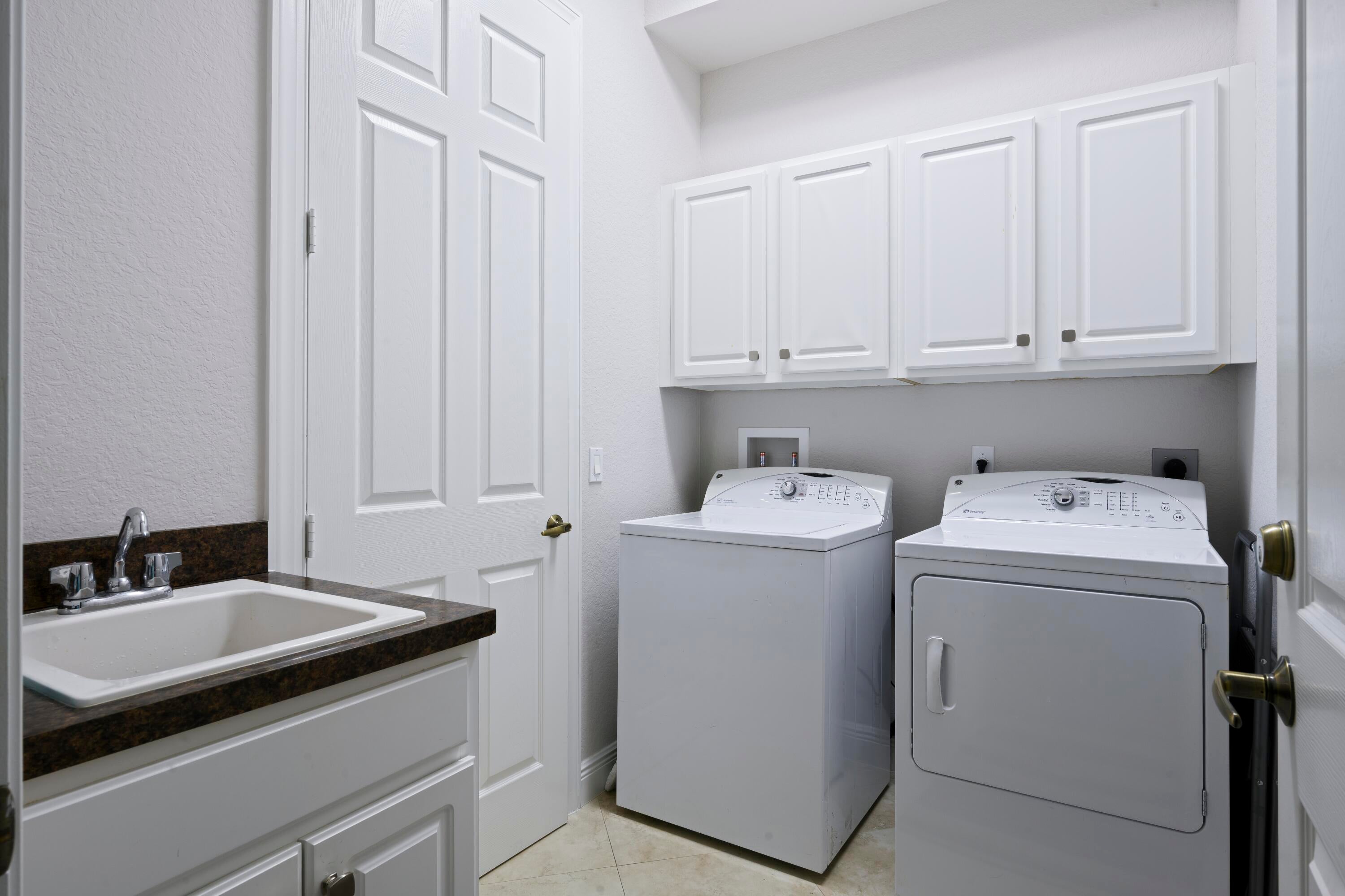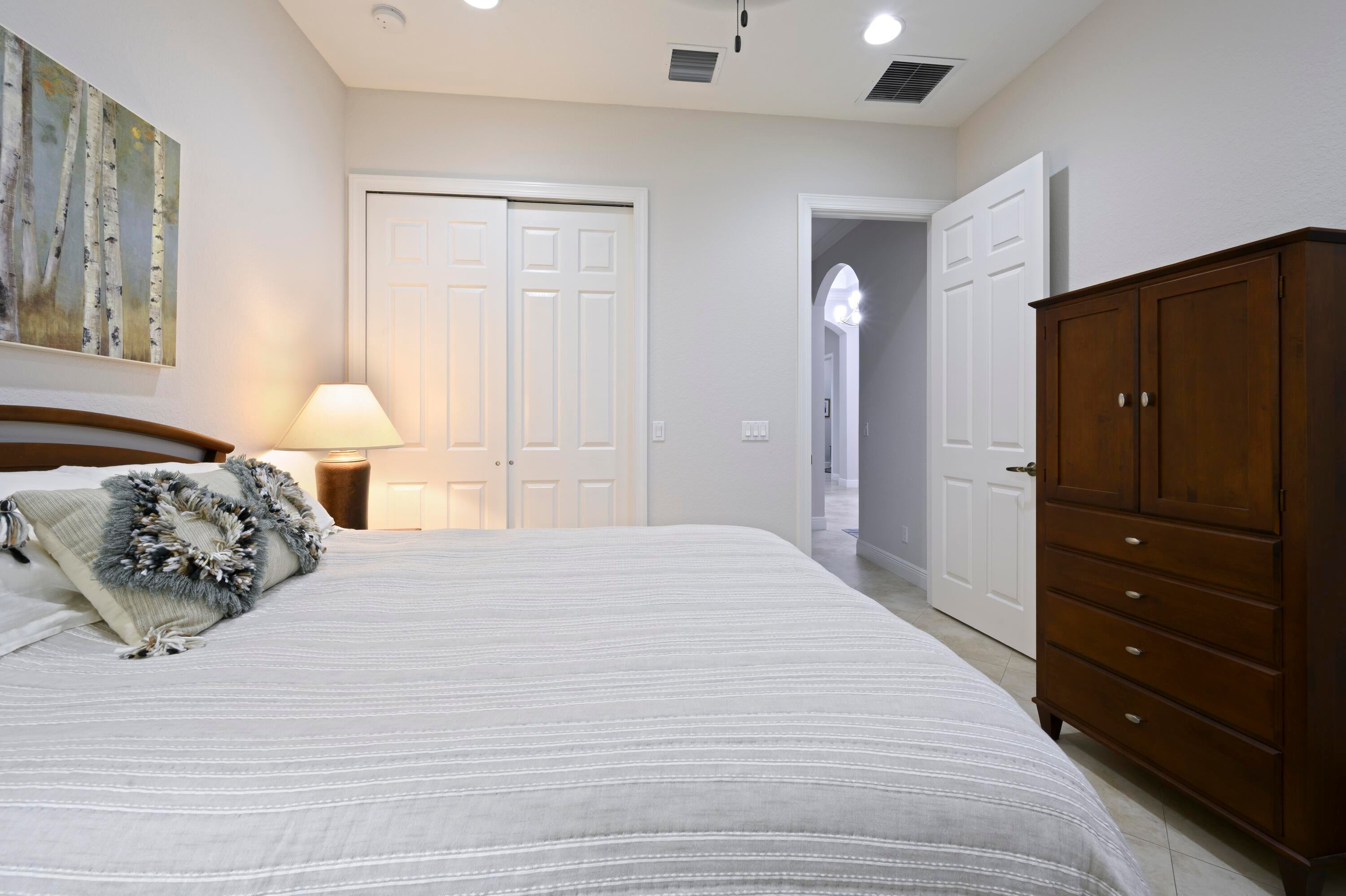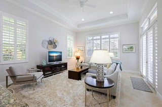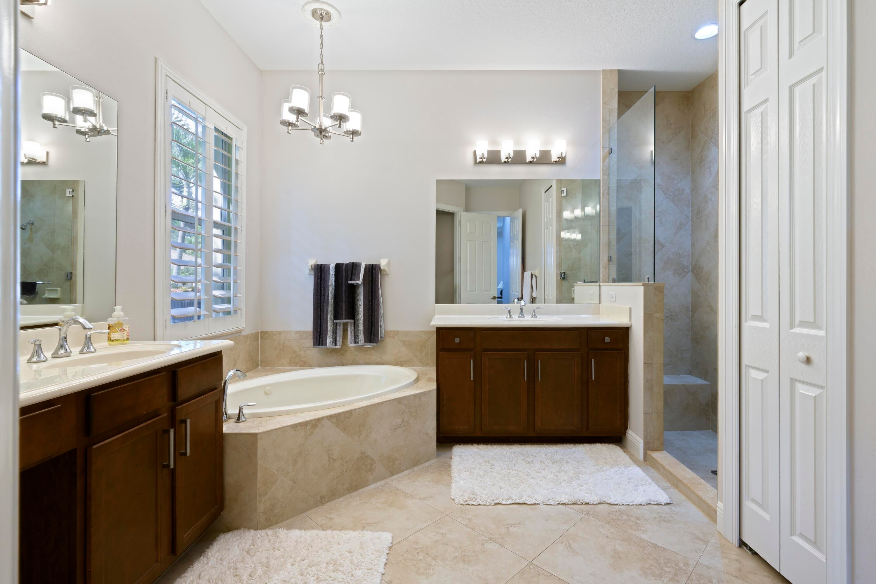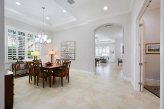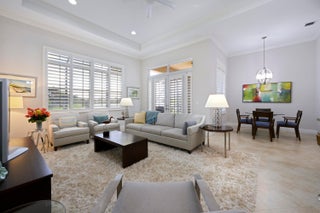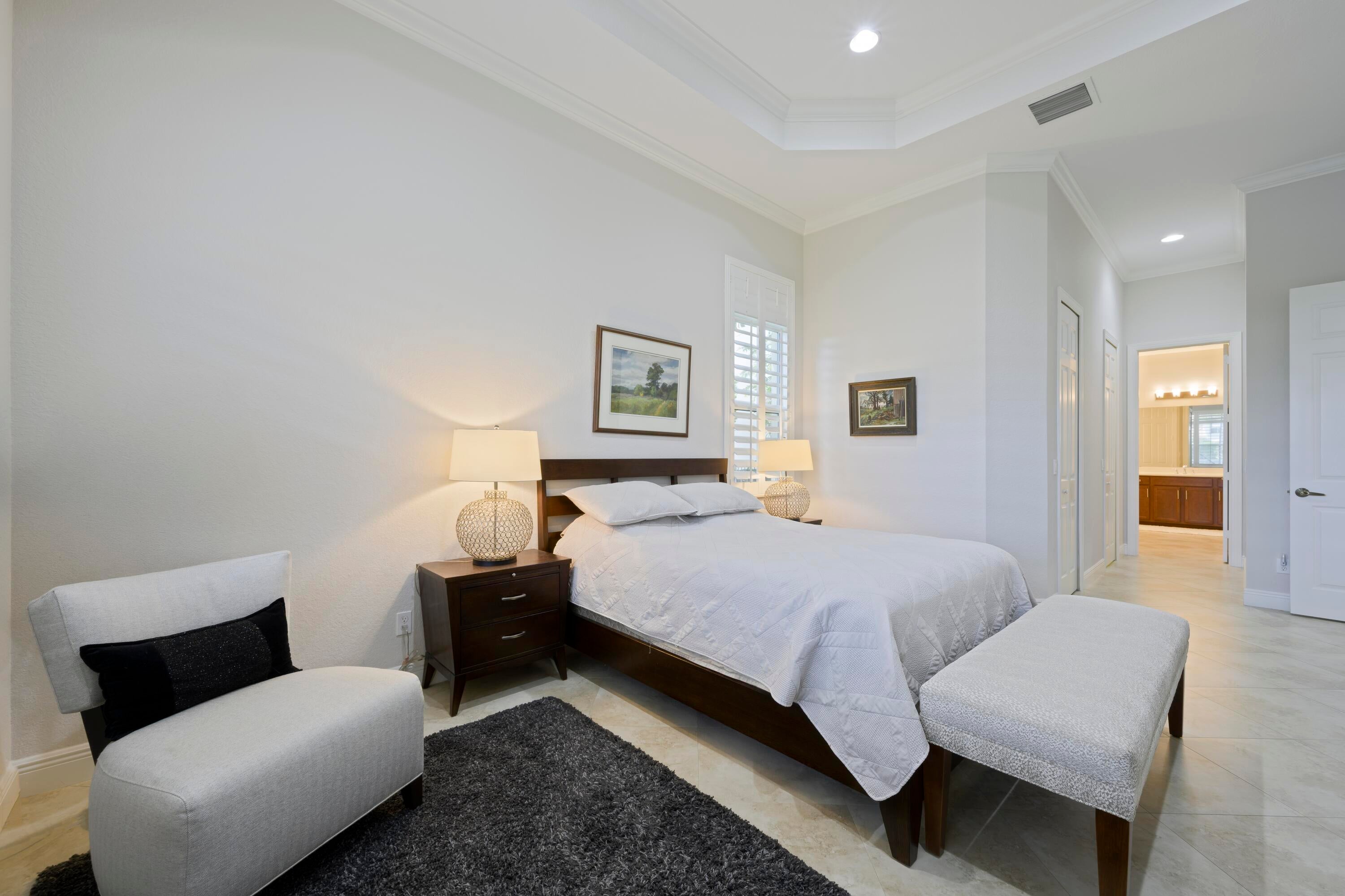 Welcome to Paloma, one of Palm Beach Gardens' most sought-after gated communities. This beautifully maintained single-family residence offers 3 bedrooms, 2.5 baths, a versatile den, and a 2-car garage, all thoughtfully designed with a split floor plan for comfort and privacy. Step inside the grand foyer, accented by chandelier lighting, crown molding, and custom baseboards, and you'll immediately notice the timeless details throughout -- including plantation shutters, recessed lighting, and tile flooring in every room. The formal dining room features elegant lighting and seamlessly connects to the double-door den, perfect for a home office or library.The kitchen is a chef's delight with maple cabinetry, granite countertops, stainless steel appliances, and a pantry, while the breakfast nook and adjoining family room showcase sweeping lake views through bright, open spaces. A powder room and well-appointed laundry room with GE washer/dryer, utility sink, and cabinetry add everyday convenience. The primary suite is a private retreat with a sitting area, dual walk-in closets with built-ins, and a spa-inspired bath featuring a jetted soaking tub, glass-enclosed shower, dual vanities, and a private water closet. Guest bedrooms include built-in closets and share a full bath with tub/shower combo. Outdoors, enjoy serene long-lake vistas from the covered lanai and expansive screened patio with paver brick flooring, ideal for both entertaining and relaxation. Even the garage is finished with tile flooring for a polished touch.Paloma residents enjoy a gated lifestyle with resort-style amenities, all just minutes from world-class dining, shopping, golf, and beaches.