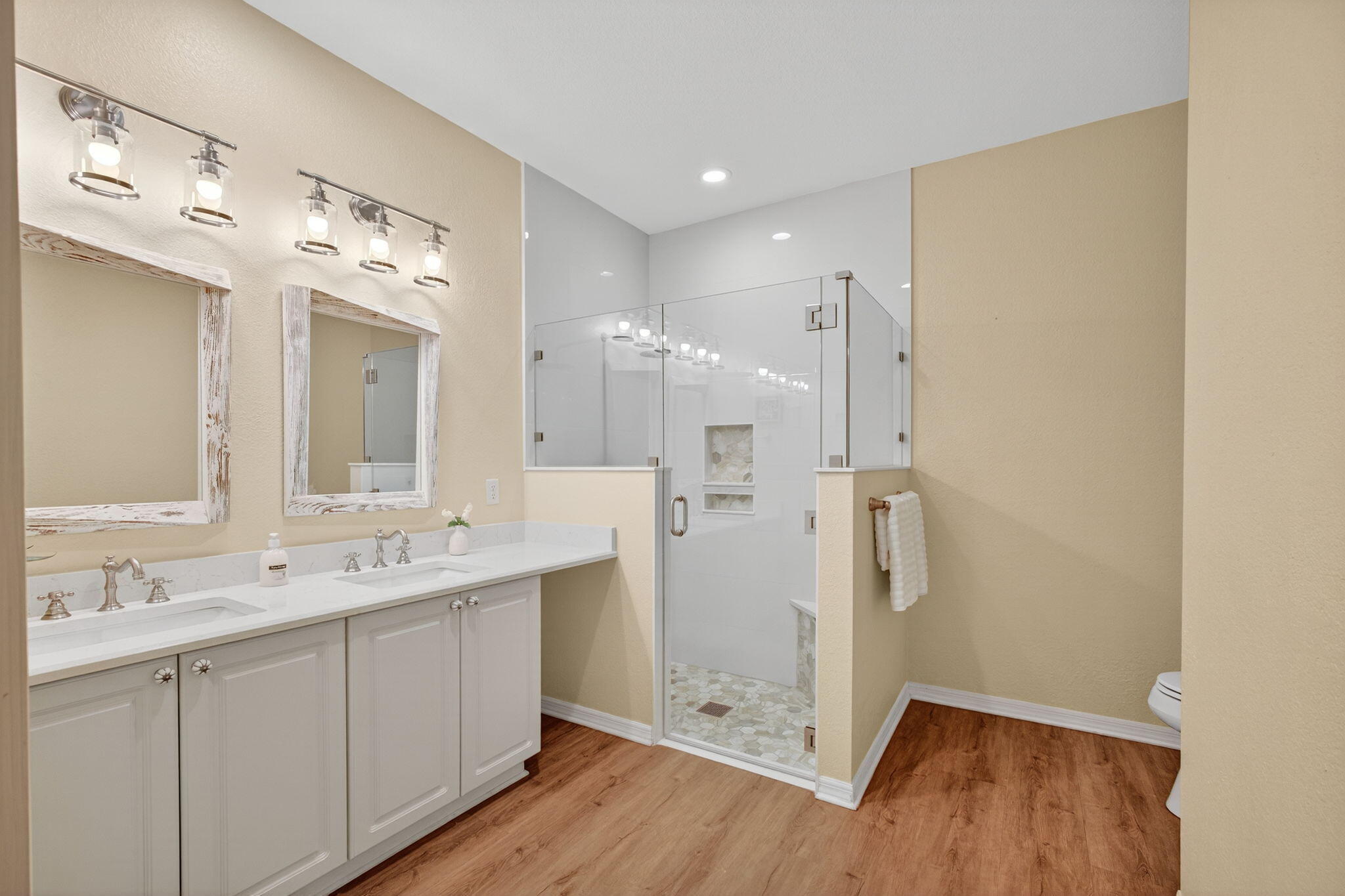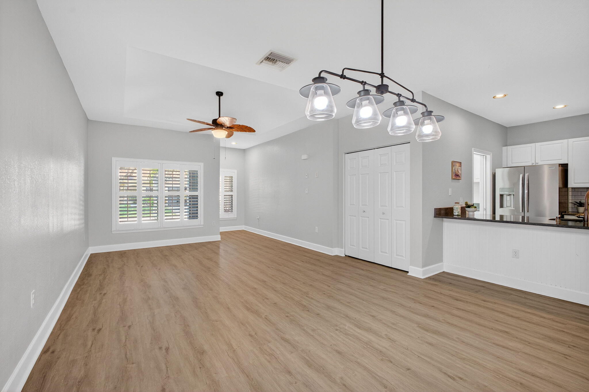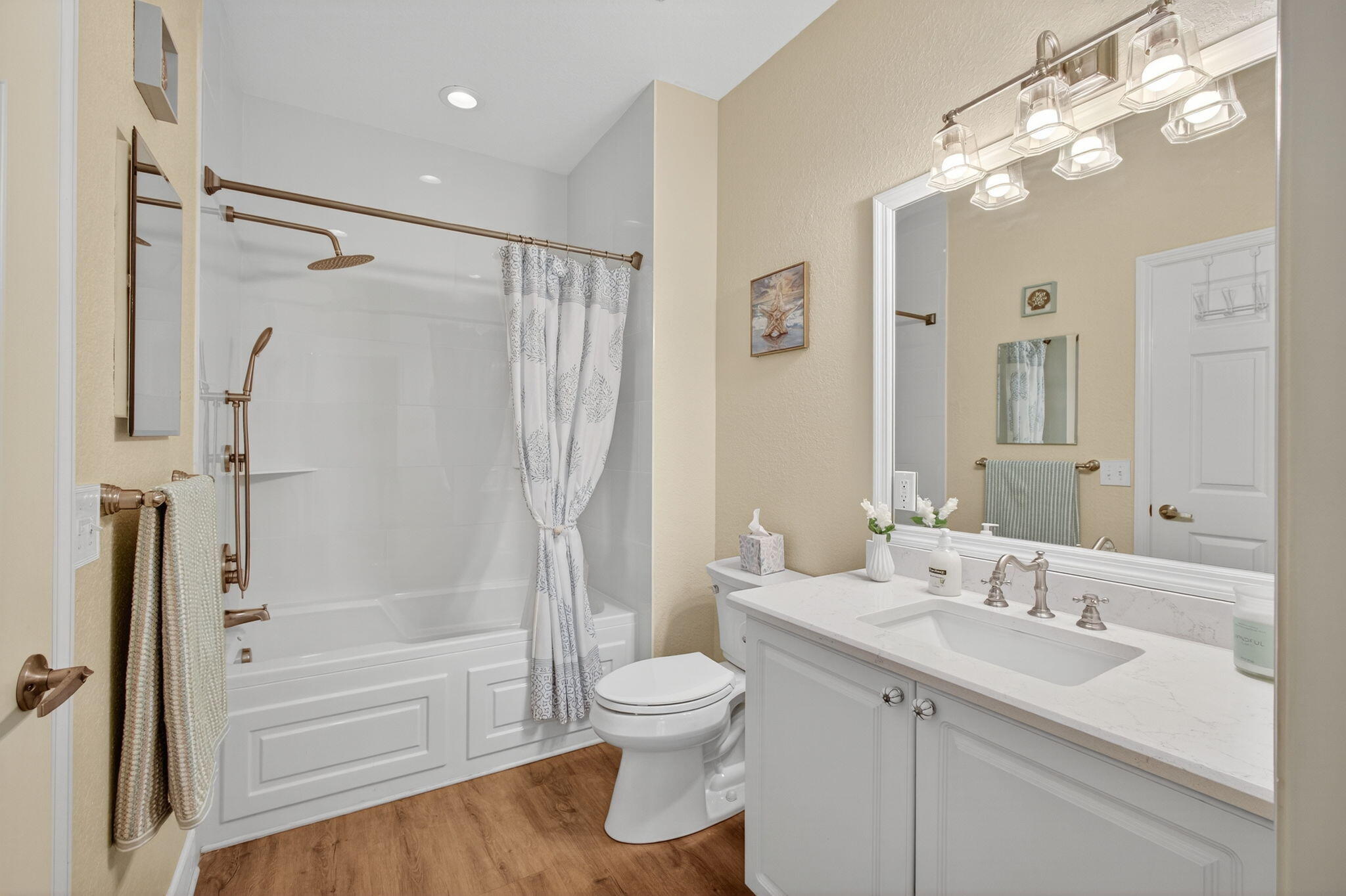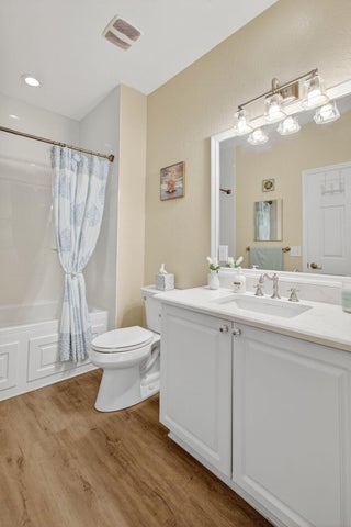 Beautifully Renovated Condo in The Lakes at The Savannahs! This 2-bedroom, 2-bath residence is tucked within a peaceful, amenity-filled community. The open layout showcases a modern kitchen with quartz countertops, stainless steel appliances, subway tile backsplash, and luxury vinyl flooring throughout. The primary suite features dual vanities with quartz counters and a spa-inspired shower with rainfall and full-body fixtures. Additional highlights include custom plantation shutters and a private patio perfect for relaxing outdoors. Exterior upgrades offer retractable screen doors and accordion hurricane shutters. Ideally located just steps from the clubhouse, pool, tennis courts, and fitness center. Shopping and dining are only minutes away! Rent includes water, cable, internet, lawn.