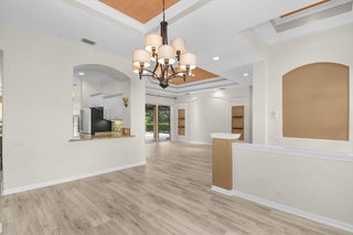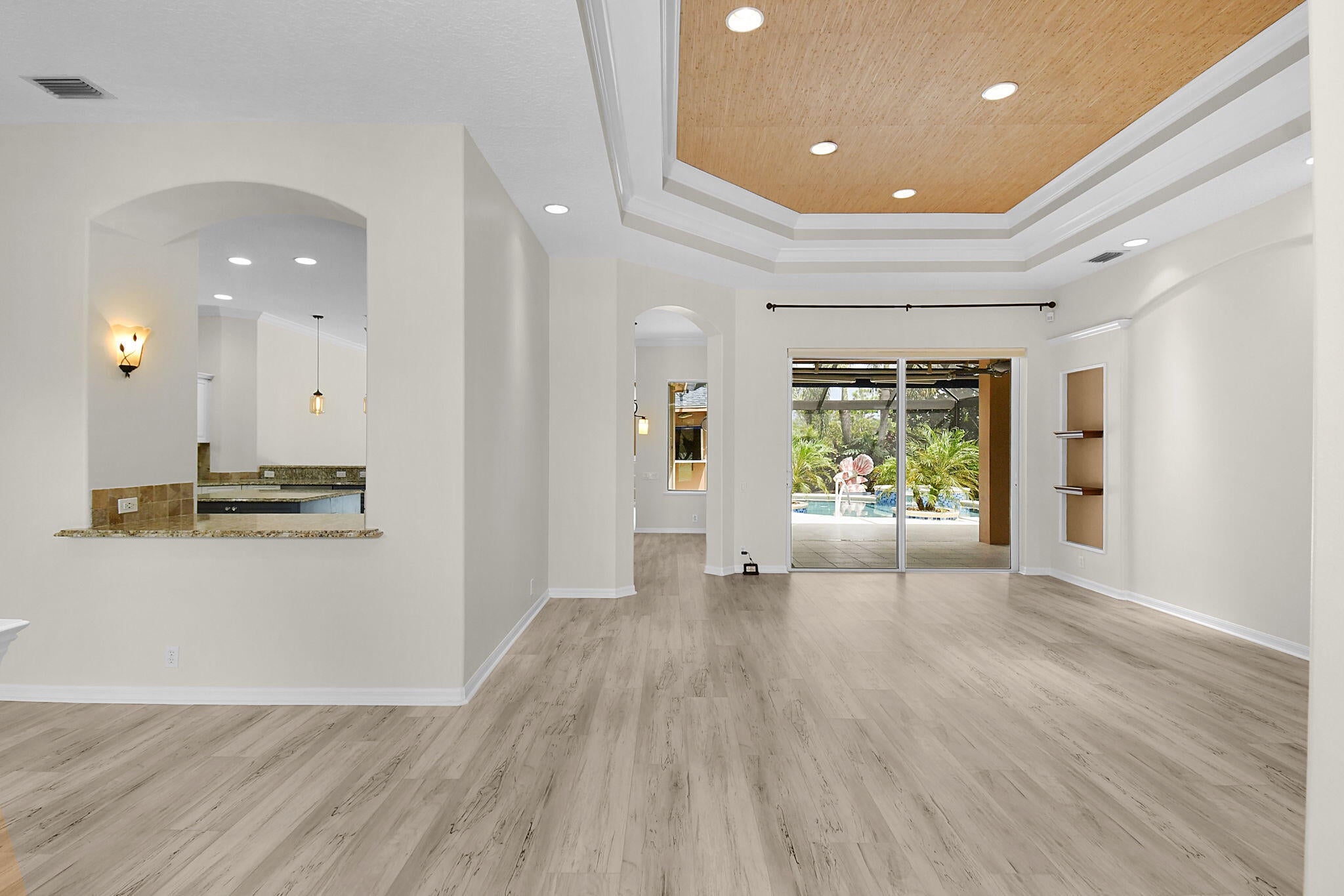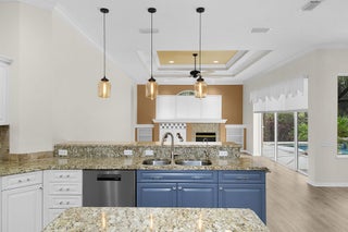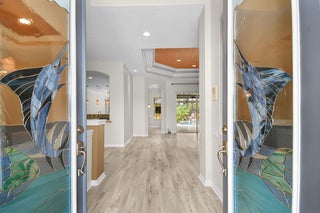 Amazing community where every home is custom-built on large, spacious lots. This 5BR, 3BA plus den Arthur Rutenberg home is surrounded by meticulously maintained landscape and is perfectly situated with beautiful preserve views, made more visible with the new pool enclosure and picture-frame screening. Newest upgrades include tile roof, stained-glass front doors, Ox-floor in garage and on pool deck, beautiful pool/spa surface, awning, outdoor bar with aged copper countertops, LVP flooring, remote shades, appliances, AC, and generator. Other features include coffered ceilings, built-in desk, granite countertops, complete hurricane protection, expanded paver driveway, and 2-car garage plus single garage bay enclosed with AC - perfect home gym or workshop. Great, quiet location.