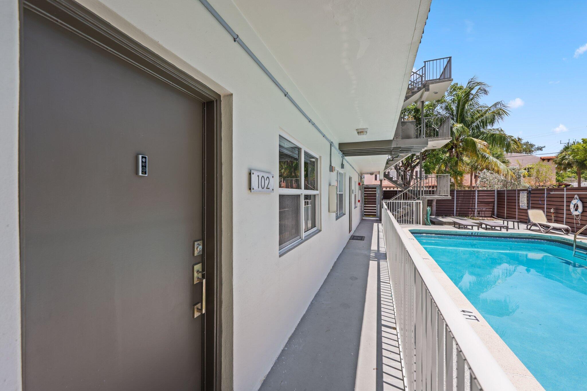 This beautifully maintained first-floor unit is located in the highly desirable Victoria Park neighborhood. The home features a bright white kitchen with stainless steel appliances, a spacious primary bedroom with a walk-in closet, and hurricane-impact windows, doors, and sliders throughout for added peace of mind. Recent updates include a new AC (2021) and water heater (2020).Step through the sliding doors into your own private backyard--perfect for relaxing or entertaining. Just steps from your front door, enjoy the community pool and other great amenities including a secure keypad-entry gate, community laundry facilities, and pet-friendly living.Don't miss this opportunity--schedule your showing today!