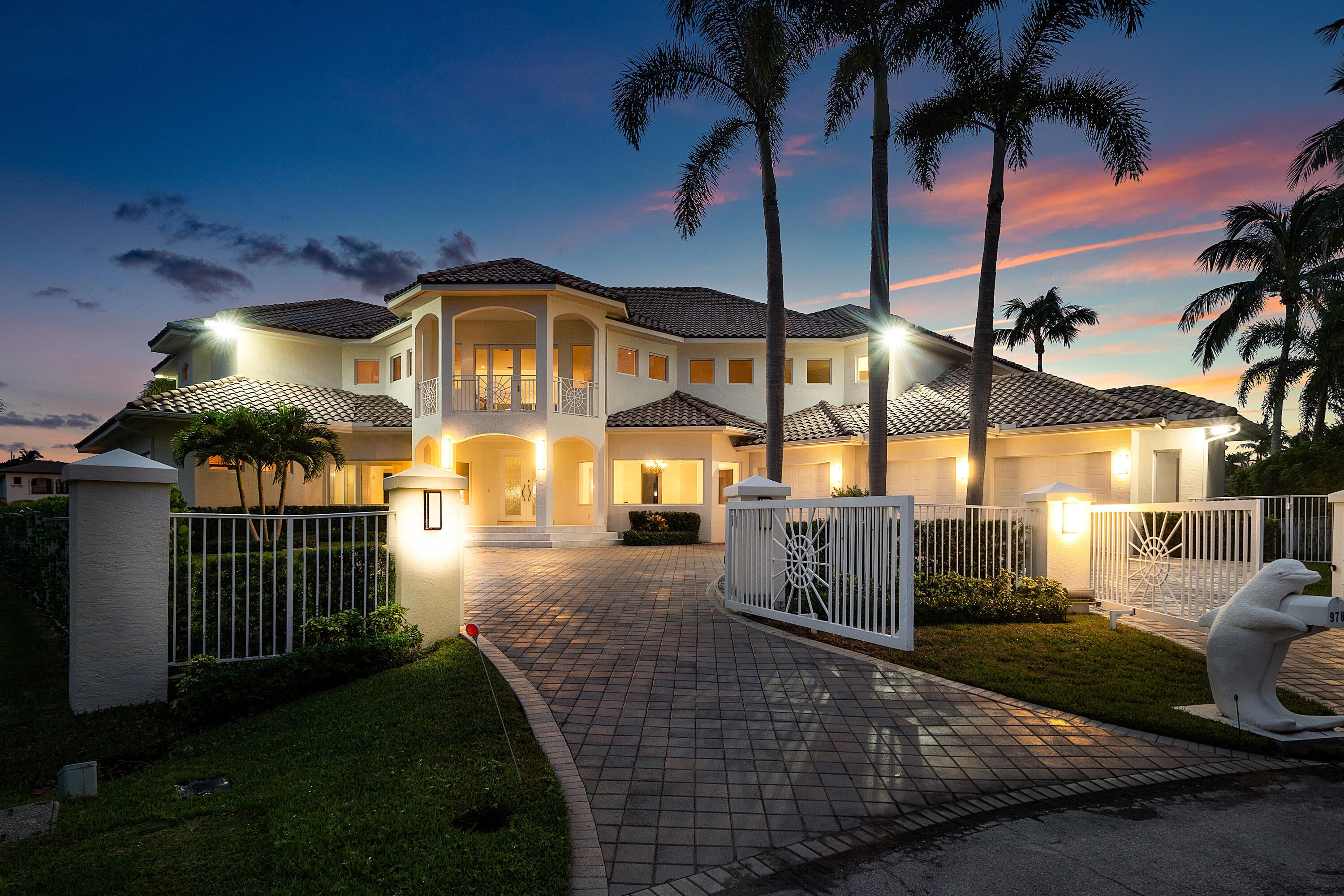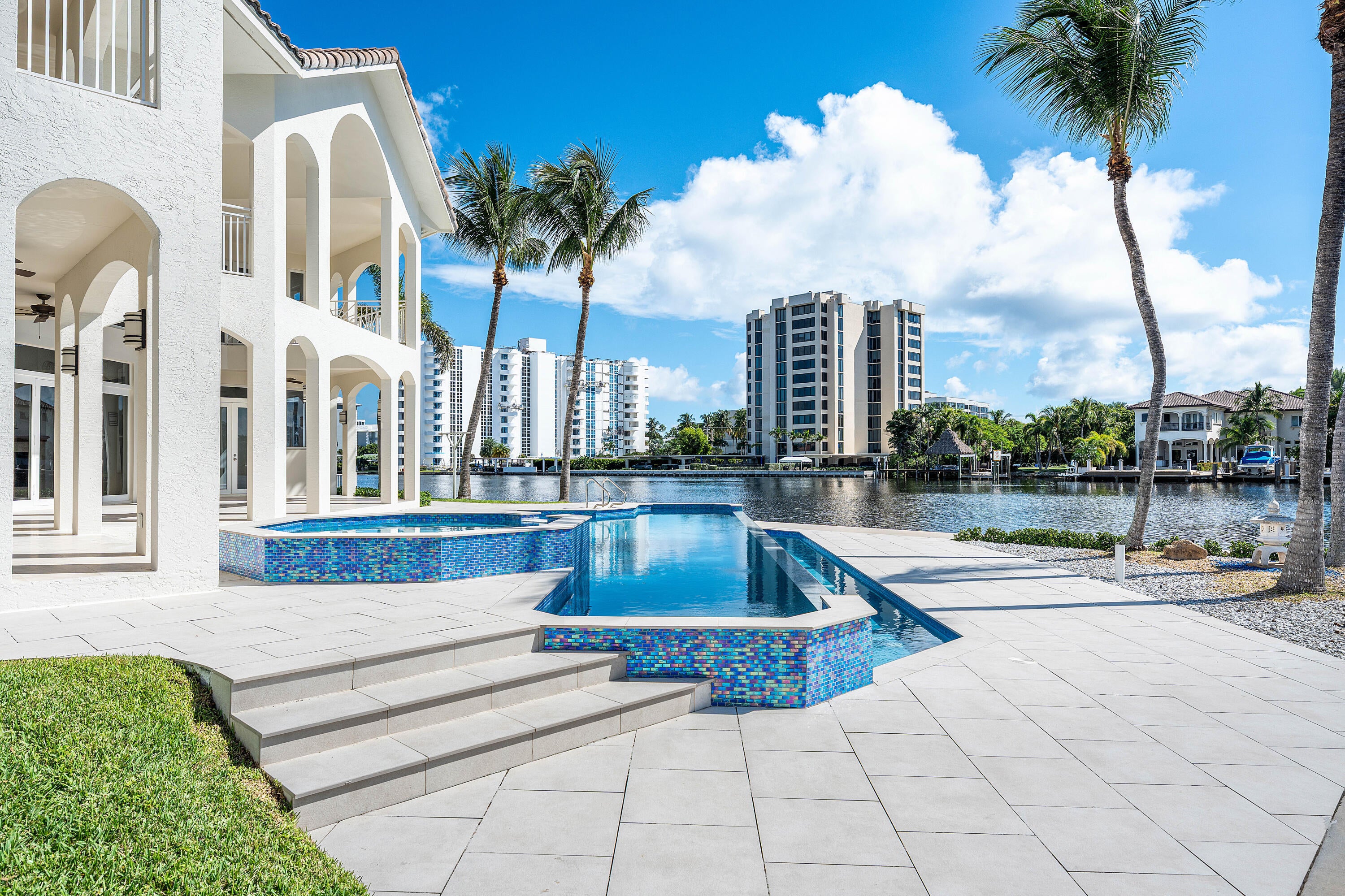 Exceptional Waterfront Estate | Intracoastal Point Lot. This extraordinary residence offers over 7,300 ft under air plus an additional 2,000 ft of covered outdoor living space and balconies, creating the perfect blend of indoor-outdoor living. Featuring 5 bedrooms and 9 baths, this estate is thoughtfully designed for both elegance and comfort, with two primary suites, one on each floor. Situated on a coveted point lot in Delray Beach Florida, the home enjoys 126 ft of direct Intracoastal frontage and 125 ft of canal frontage, with direct ocean access and no fixed bridges. A 50 ft dock with electric service with plenty of room to extend and a 100 ft canal width allow for effortless yacht maneuvering and docking. From the moment you enter, you're captivated by panoramic water views fromevery room. The home's construction is truly unmatched and built with metal studs and a concrete lay-in second floor, providing superior strength, durability, and soundproofing far beyond traditional block construction. Additional highlights include soaring high ceilings throughout, a full-house generator, a temperature-controlled walk-in wine cellar, a 5 zone AC system, and impact rated doors and glass. Pre-wired for smart-home audio, lights and sound system integration. Designed for the discerning buyer, this residence combines architectural integrity, exceptional quality, and one of the most desirable water exposures - southeast facing on the Intracoastal.