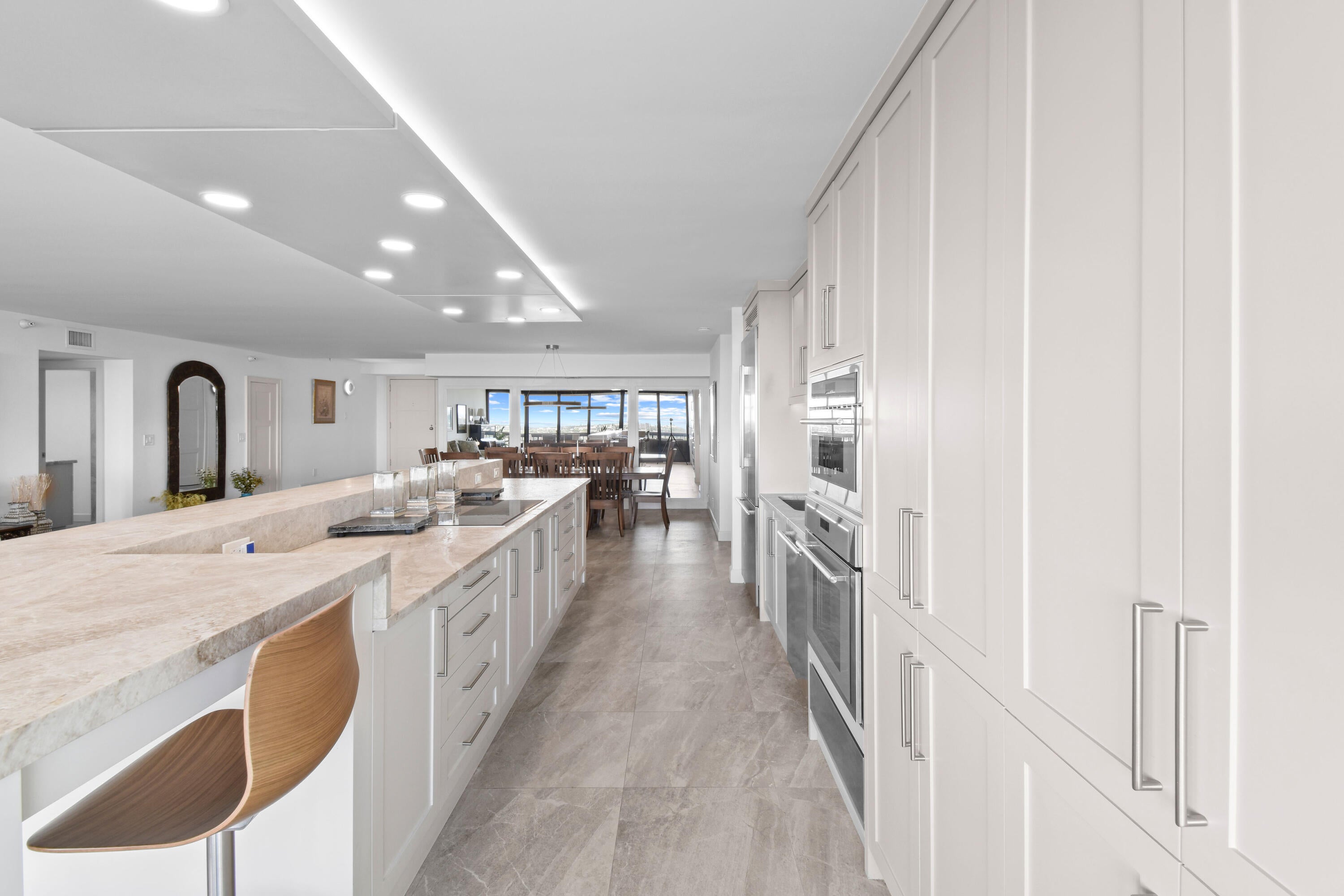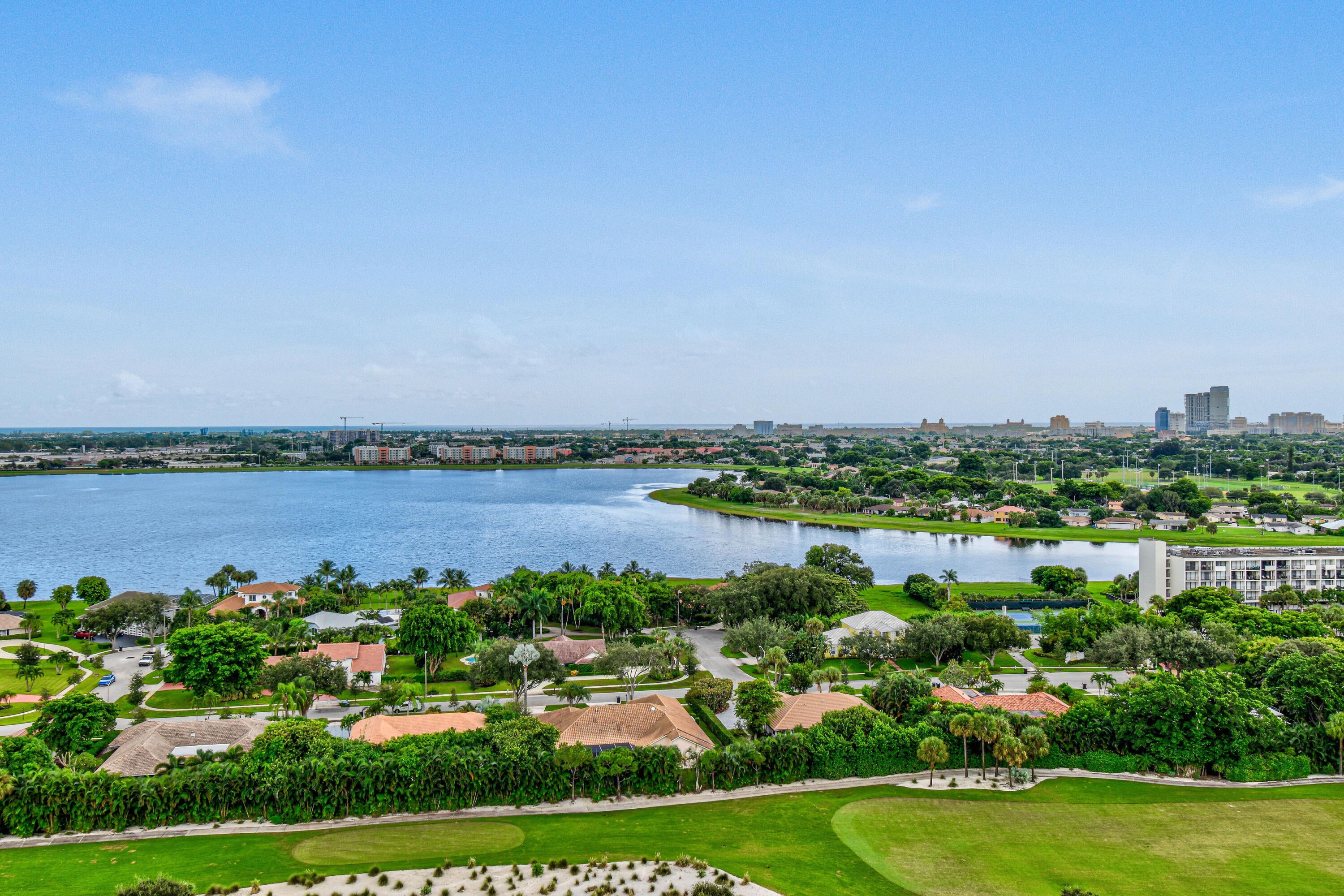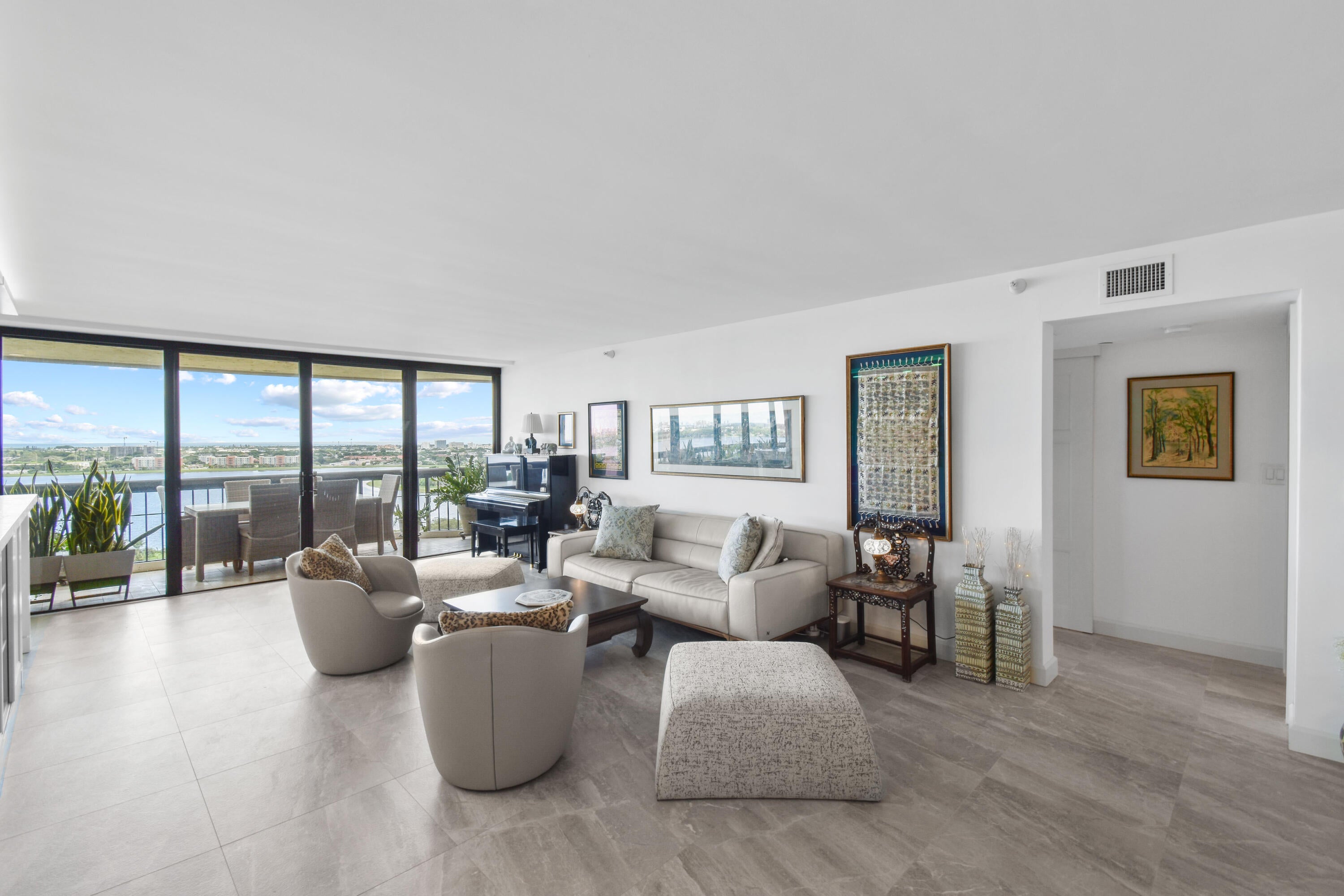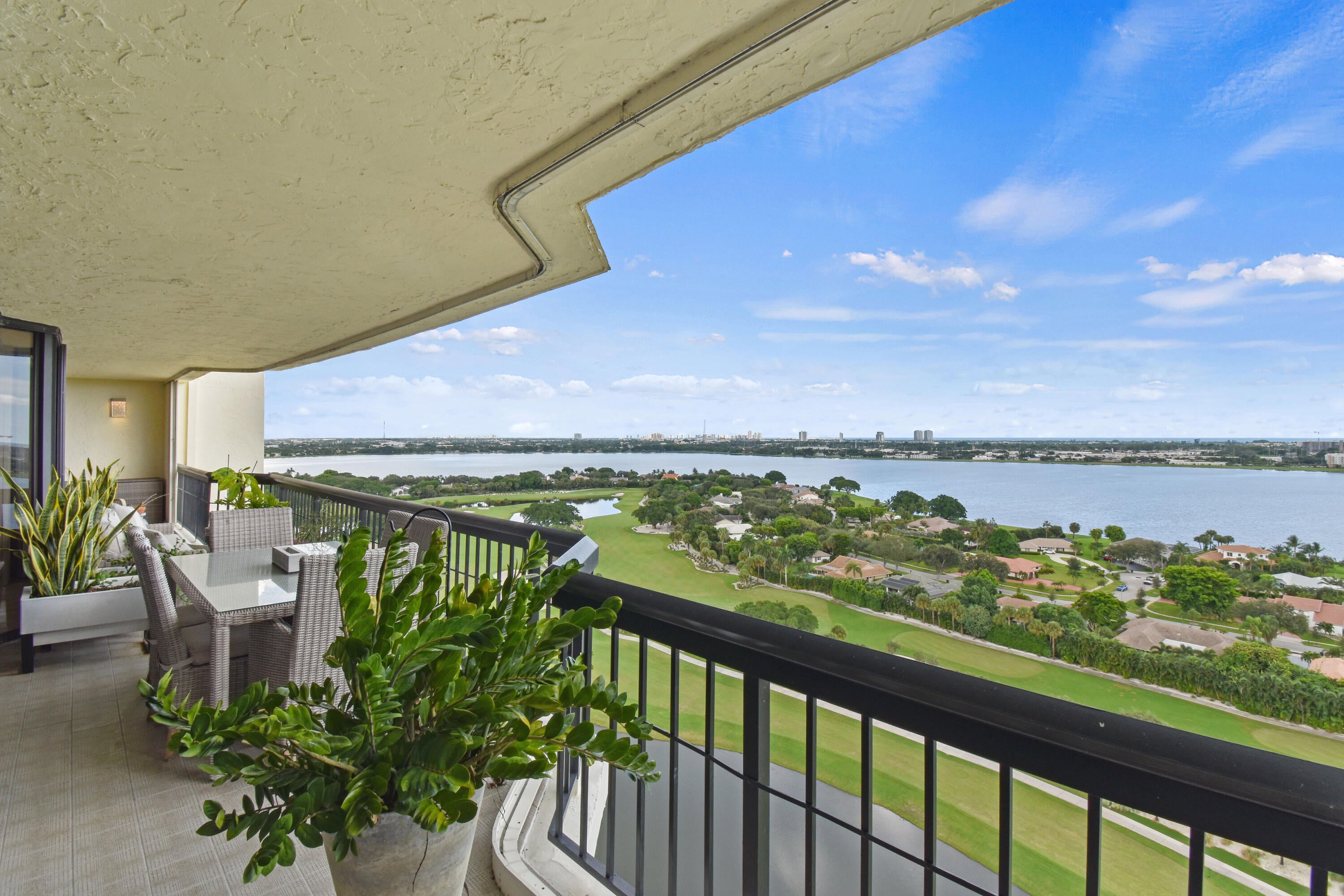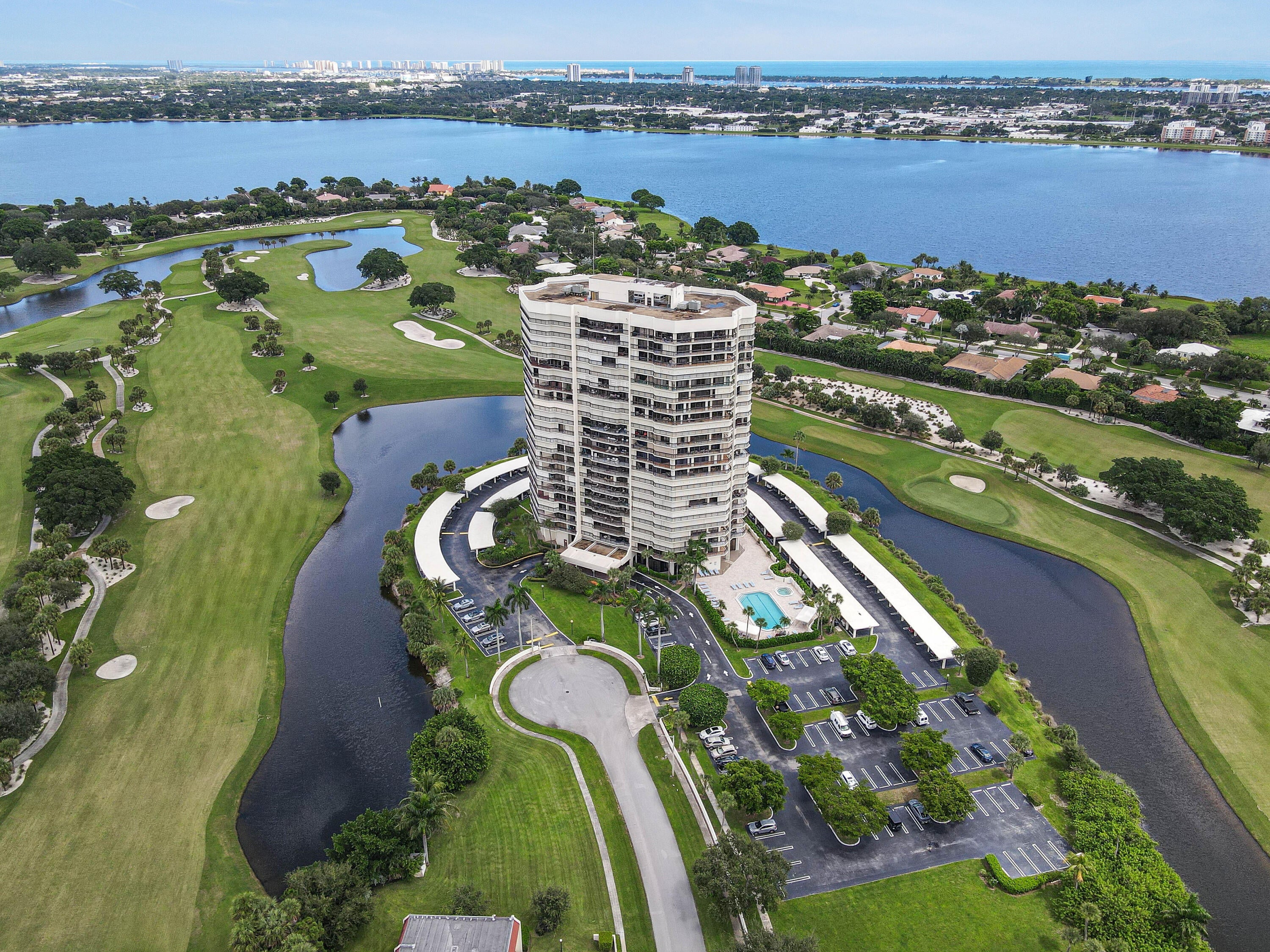 Experience luxury living in this beautifully renovated 2-bedroom, 2-bath condo in the heart of West Palm Beach, just minutes from the island of Palm Beach and downtown West Palm. ''Enjoy east-facing views stretching all the way to the Atlantic Ocean and from West Palm up to The Gardens, spectacular sunrises and sunsets and great views of the President golf course directly below.''The chef's kitchen features leathered Taj Mahal quartzite countertops, a five-burner induction cooktop, Thermador appliances, and sleek stainless steel finishes. Custom closet cabinetry and built-ins elevate every room, including primary bedroom bookshelves milled to perfection. Expansive sliders with phantom screens bring in refreshing breezes while framing the views.Natural light fills the residence, accentuated by custom frosted-glass doors and a glowing rain-glass display cabinet that add both style and openness. The kitchen island doubles as a focal point in the living area, where a discreetly built-in television is revealed only when needed. On either side, backlit shelving creates the perfect stage for books, art, or personal treasures, bringing warmth and character to the space. Set on 7 acres of lush grounds, the building offers resort-style amenities including a tennis court/pickleball court, a private pool, and the security of 24/7 concierge service. This is a rare opportunity to own a turnkey ocean-view retreat blending elegance, comfort, and convenience in one of South Florida's most desirable locations.