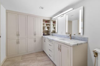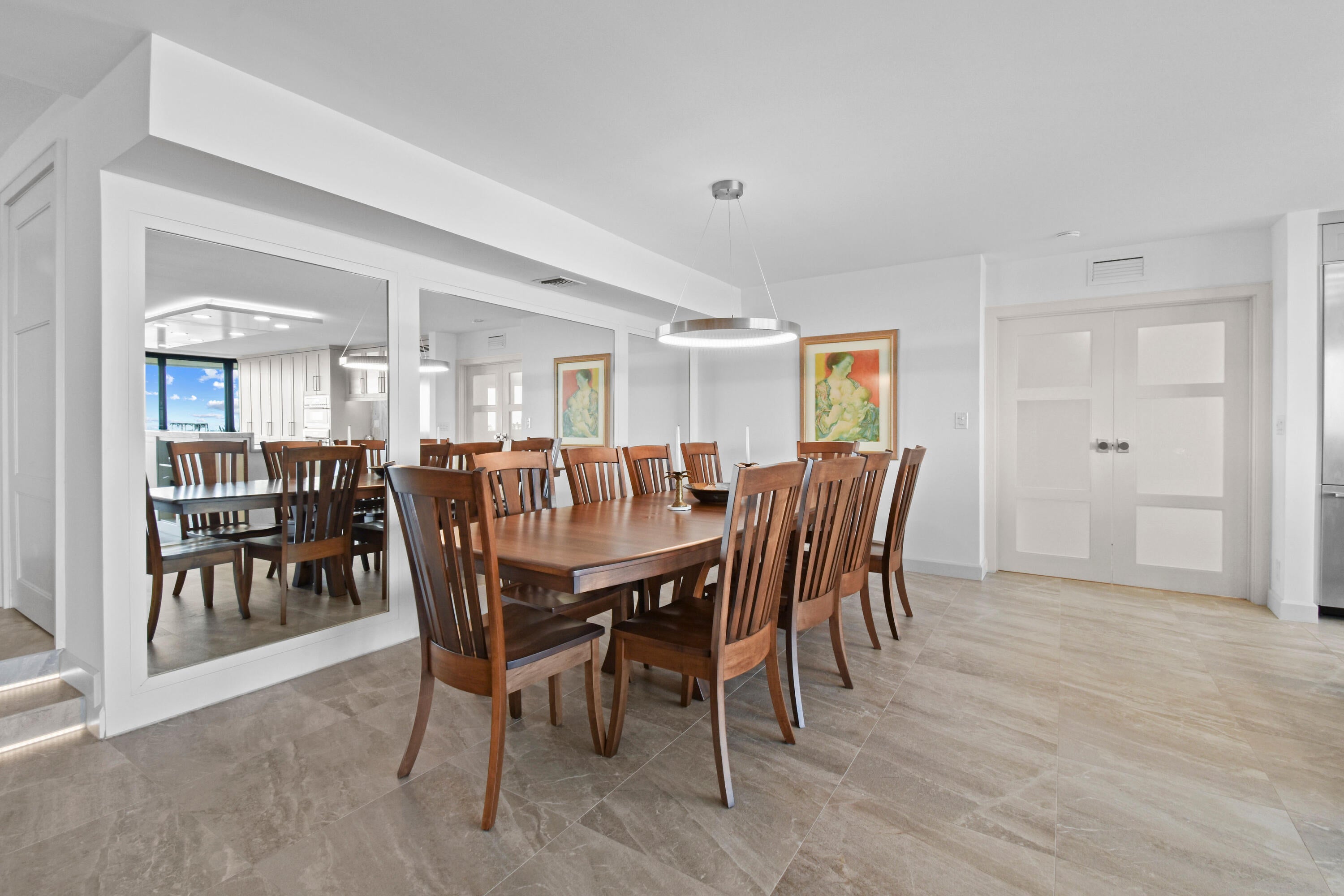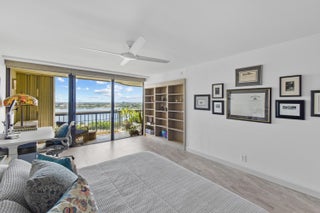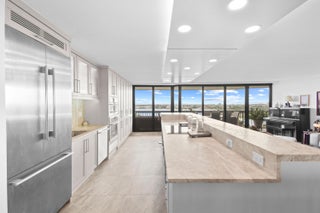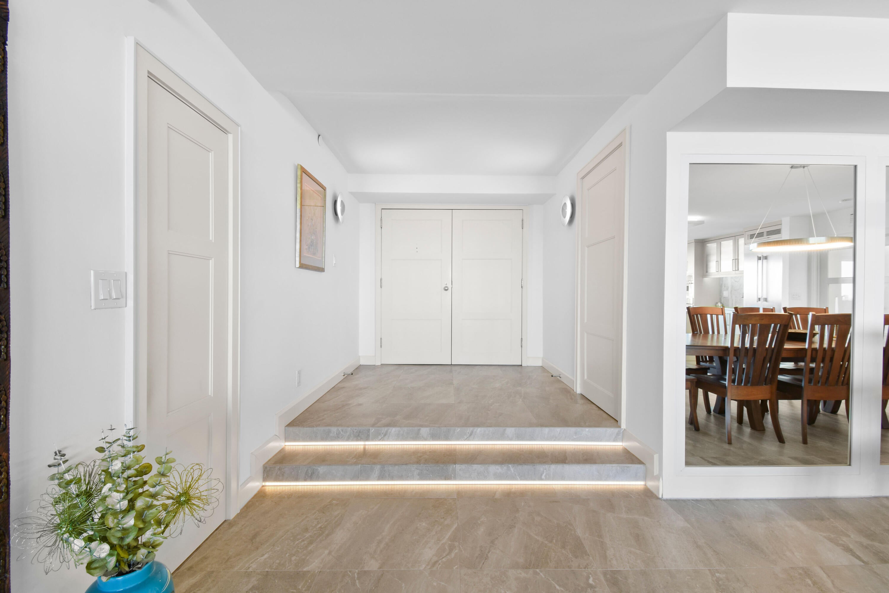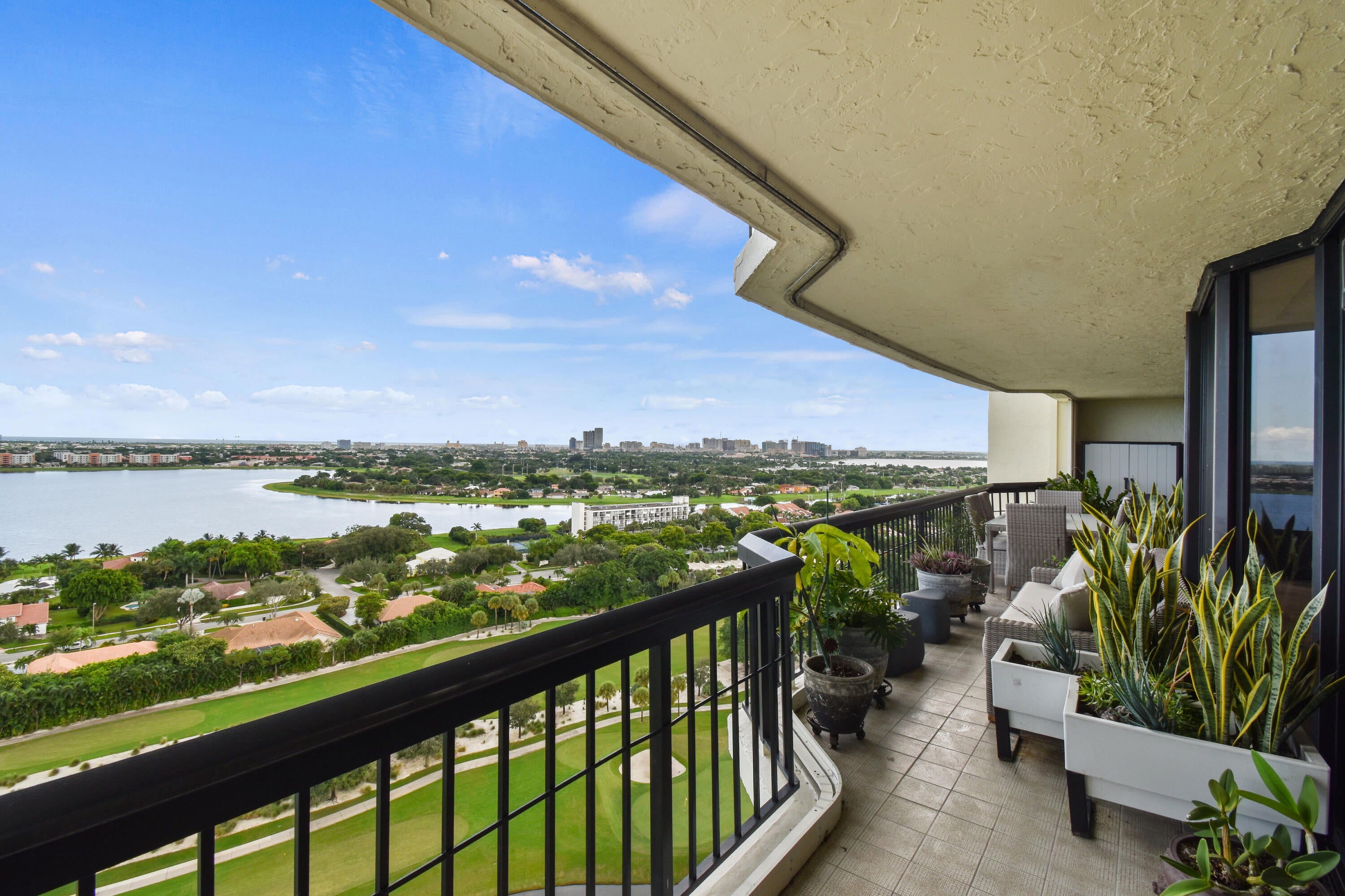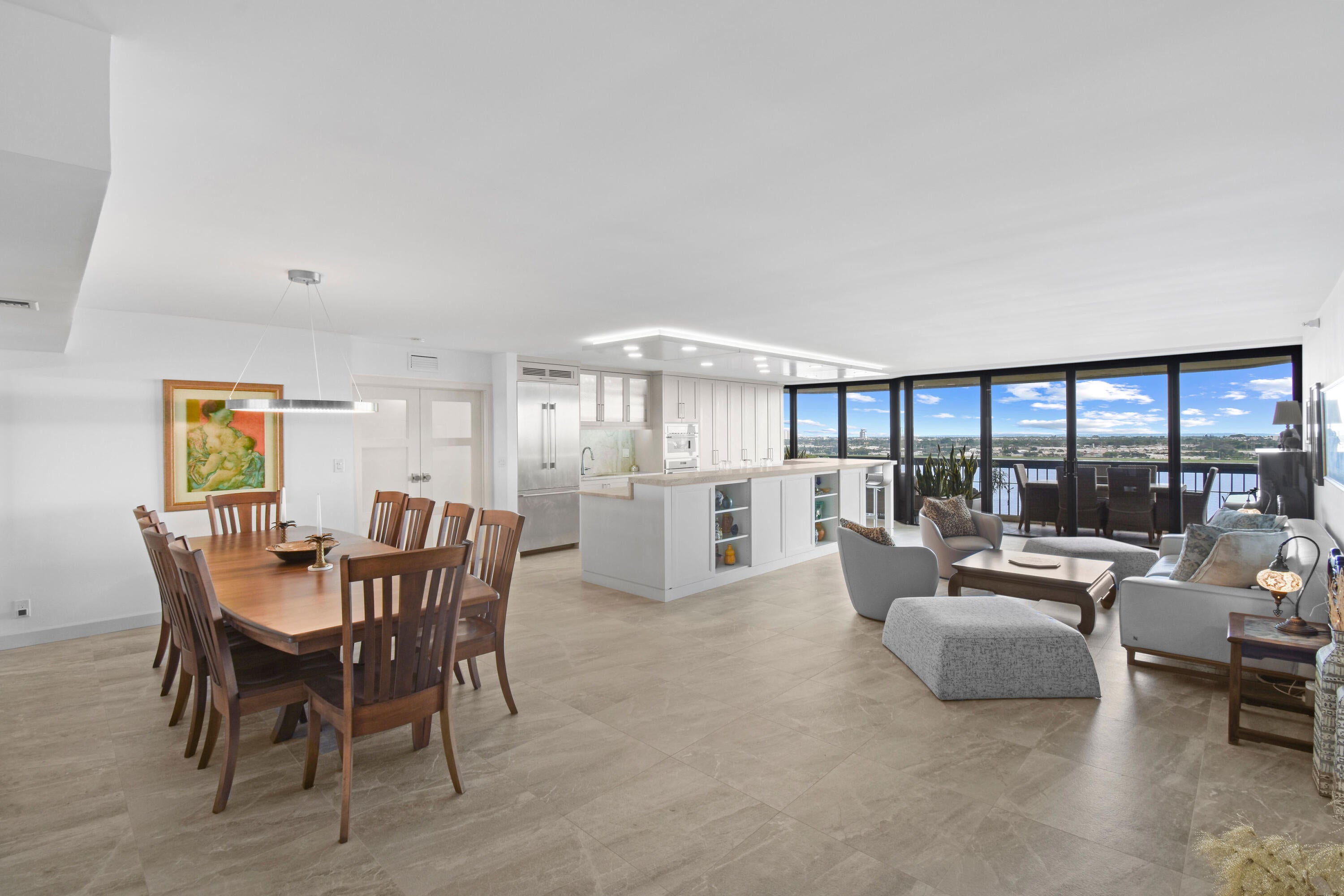 Experience luxury living in this beautifully renovated 2-bedroom, 2-bath condo in the heart of West Palm Beach, just minutes from the island of Palm Beach and downtown West Palm. ''Enjoy east-facing views stretching all the way to the Atlantic Ocean and from West Palm up to The Gardens, spectacular sunrises and sunsets and great views of the President golf course directly below.''The chef's kitchen features leathered Taj Mahal quartzite countertops, a five-burner induction cooktop, Thermador appliances, and sleek stainless steel finishes. Custom closet cabinetry and built-ins elevate every room, including primary bedroom bookshelves milled to perfection. Expansive sliders with phantom screens bring in refreshing breezes while framing the views.Natural light fills the residence, accentuated by custom frosted-glass doors and a glowing rain-glass display cabinet that add both style and openness. The kitchen island doubles as a focal point in the living area, where a discreetly built-in television is revealed only when needed. On either side, backlit shelving creates the perfect stage for books, art, or personal treasures, bringing warmth and character to the space. Set on 7 acres of lush grounds, the building offers resort-style amenities including a tennis court/pickleball court, a private pool, and the security of 24/7 concierge service. This is a rare opportunity to own a turnkey ocean-view retreat blending elegance, comfort, and convenience in one of South Florida's most desirable locations.