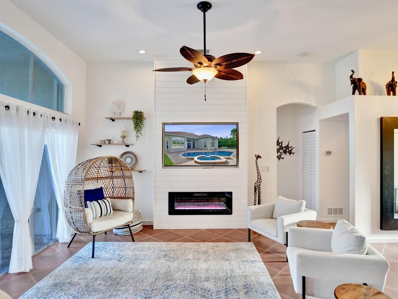 Welcome to your dream home in the highly sought-after Winston Trails! Located in the desirable Shadow Creek Village subdivision, this beautifully updated 4BR, 2.5BA pool home offers nearly 2,400 sq. ft. of living space on a .19-acre canal and golf view lot.Step inside to find a thoughtfully designed Venice floor plan with stylish updates throughout. The main living area features a cozy shiplap-style electric fireplace, high hat lighting, and tile flooring throughout the home. The stunning kitchen is a chef's delight with shaker-style cabinetry, pull-out drawers, quartz countertops, and stainless steel appliances.The primary suite impresses with vaulted ceilings and a completely renovated spa-like bathroom featuring sleek cabinetry, an oversized double shower, and a soaking tub.The secondary bedrooms are tucked away from the primary suite for added privacy, and all bathrooms have been beautifully remodeled. Step outside to your own private oasis: a covered paver patio overlooking serene canal and golf course views, a heated pool with hot tub, and a fully fenced backyard. Peace of mind comes with accordion shutters, partial impact windows, and impact glass front doors. The two car garage also is extended providing extra space for storage. Winston Trails offers resort-style amenities including manned guard gates, roving security, a large community pool & baby pool, tennis & pickleball courts, playgrounds, a golf course with no membership required, driving range, on-site restaurant, and a private fitness club with discounted resident rates. All of this plus A-rated schools (Manatee Elementary, Christa McAuliffe Middle, and Park Vista High) and a prime location close to shopping, dining, and hospitals. HOA includes high-speed Comcast cable & internet. This home combines comfort, style, and the perfect locationdon't miss your chance to make it yours! INFORMATION HEREIN NOT GUARANTEED AND SUBJECT TO ERRORS & OMISSIONS. ALL MEASUREMENTS APPROXIMATE.