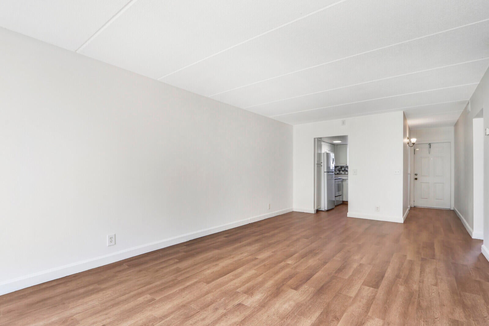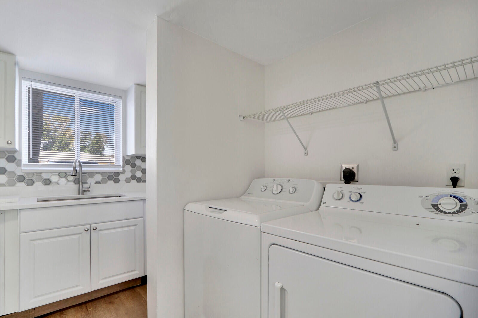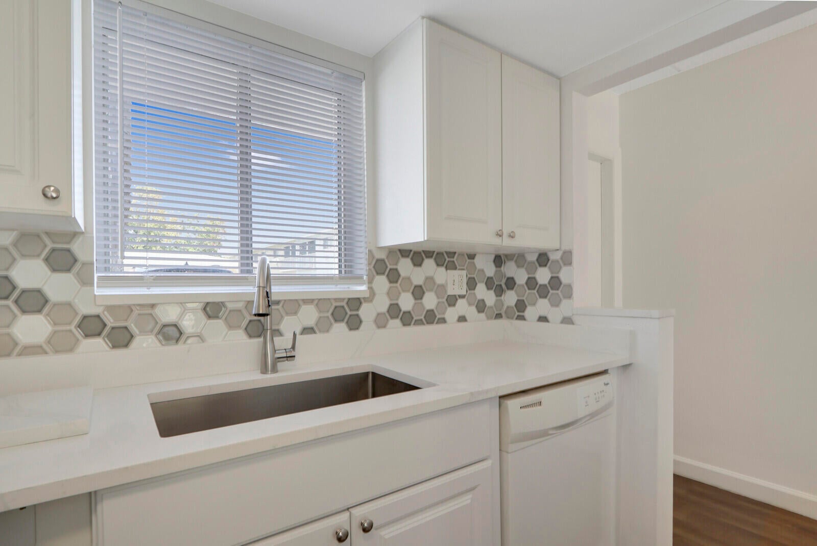 Renovated ground floor 2 br, 1 ba with BRAND NEW hurricane impact glass windows. And a full-size washer & dryer INSIDE the unit. Quartz kitchen countertops, tile backsplash, refrigerator and garbage disposal new in 2024. Stove was replaced in 2022. New luxury vinyl plank flooring throughout in 2024, no carpet. Updated bathroom in 2024. The patio space was enclosed to create an oversized living room. Sliding door to the grass yard. 2 generously sized bedrooms, the primary bedroom with a walk-in closet. 1 assigned parking space in front of the unit and plenty of extra parking available on the street. Community pool. On-site management office. Dogs are welcome, no aggressive breeds. Close to stores & restaurants, some a short walk away. Perfect for both investors and owner-occupants.